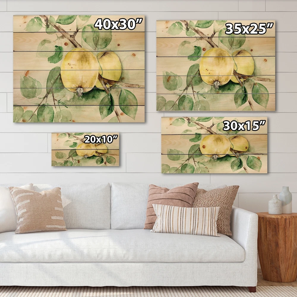 Alas, a modern take on wood wall art. Once typically a wall art piece found only in rustic or farmhouse style decor settings, this Food & Beverage wood wall art will easily fit into even the most contemporary of designs.Using the highest quality 6 Color Canon UV Ink, this Farmhouse wood wall art incorporates several aspects of fine design into one stunning piece. With its slightly visible wood grain appearing through the colors and sleekly finished edges, it is a wonderful choice for any room in your home or office, being it a traditional or modern space. As each piece of wood has natural grain differences from the next, each of these wood wall arts is a truly unique addition to your space.Each Wood wall art is 100% handmade in Canada on Natural pine wood, using the highest quality ink Free Shipping Over $49.99* Details Designart 'Vintage Green Appels' Farmhouse Print on Natural Pine Wood Product Description: Alas, a modern take on wood wall art. Once typically a wall art piece found only in rustic or farmhouse style decor settings, this Food & Beverage wood wall art will easily fit into even the most contemporary of designs. Using the highest quality 6 Color Canon UV Ink, this Farmhouse wood wall art incorporates several aspects of fine design into one stunning piece. With its slightly visible wood grain appearing through the colors and sleekly finished edges, it is a wonderful choice for any room in your home or office, being it a traditional or modern space. As each piece of wood has natural grain differences from the next, each of these wood wall arts is a truly unique addition to your space. Each Wood wall art is 100% handmade in Canada on Natural pine wood, using the highest quality ink which will not fade over time. Available in Differents sizes - OrientationHorizontal - SubjectFood & Beverage TypeWood Wall Art, Fine Art, Wood Fine Art, Print on Plaque - Arrives ready to hang on the wall with hanging kit included - MaterialMade with 100% natural pine wood - StyleFarmhouse - Number of Pieces1 - ColorGreen