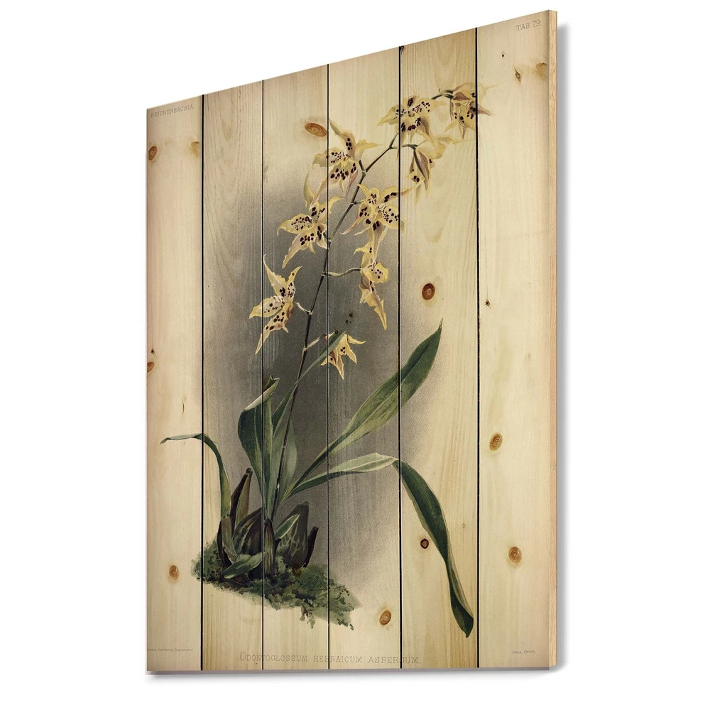 Alas, a modern take on wood wall art. Once typically a wall art piece found only in rustic or farmhouse style decor settings, this Floral wood wall art will easily fit into even the most contemporary of designs.Using the highest quality 6 Color Canon UV Ink, this Traditional wood wall art incorporates several aspects of fine design into one stunning piece. With its slightly visible wood grain appearing through the colors and sleekly finished edges, it is a wonderful choice for any room in your home or office, being it a traditional or modern space. As each piece of wood has natural grain differences from the next, each of these wood wall arts is a truly unique addition to your space.Each Wood wall art is 100% handmade in Canada on Natural pine wood, using the highest quality ink which will Free Shipping Over $49.99* Details Designart 'Vintage Orchid Flower' Traditional Print on Natural Pine Wood Product Description: Alas, a modern take on wood wall art. Once typically a wall art piece found only in rustic or farmhouse style decor settings, this Floral wood wall art will easily fit into even the most contemporary of designs. Using the highest quality 6 Color Canon UV Ink, this Traditional wood wall art incorporates several aspects of fine design into one stunning piece. With its slightly visible wood grain appearing through the colors and sleekly finished edges, it is a wonderful choice for any room in your home or office, being it a traditional or modern space. As each piece of wood has natural grain differences from the next, each of these wood wall arts is a truly unique addition to your space. Each Wood wall art is 100% handmade in Canada on Natural pine wood, using the highest quality ink which will not fade over time. Available in Differents sizes - OrientationVertical - SubjectFloral TypeWood Wall Art, Fine Art, Wood Fine Art, Print on Plaque - Arrives ready to hang on the wall with hanging kit included - MaterialMade with 100% natural pine wood - StyleTraditional - Number of Pieces1 - ColorGreen