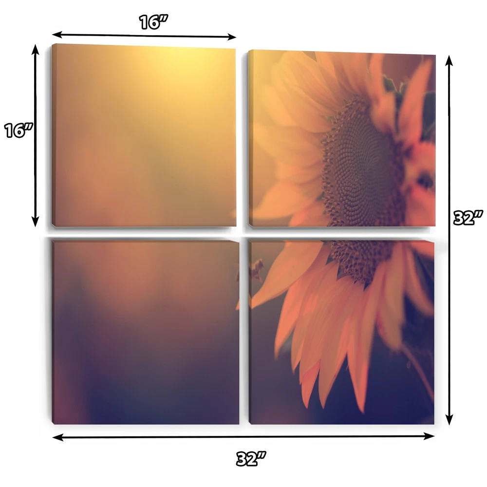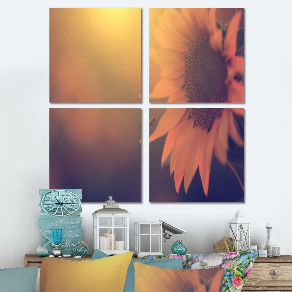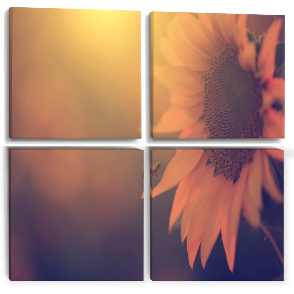 This beautiful Vintage Photo Of Sunflower Close up Multipanels canvas art is printed using the highest quality fade-resistant ink on canvas. Every one of our fine art giclee canvas prints is printed on premium quality cotton canvas, using the finest quality inks which will not fade over time. Each giclee print is stretched tightly over a 1-inch wood subframe ensuring the canvas is taught and does not buckle. This canvas art print is gallery-wrapped (the design continues on the sides), giving it a real art gallery feel. All of our canvas prints are carefully packaged with plastic protection, fragile labeling, and sturdy boxes to ensure safe delivery. Every canvas print arrives ready to hang on the wall, with the hanging kits included.- Style : Nautical & Coastal- Subject : Floral- Color : Free Shipping Over $49.99* Details Designart "Vintage Photo Of Sunflower Close up" Floral Canvas Wall Art Print Product Description: This beautiful Vintage Photo Of Sunflower Close up Multipanels canvas art is printed using the highest quality fade-resistant ink on canvas. Every one of our fine art giclee canvas prints is printed on premium quality cotton canvas, using the finest quality inks which will not fade over time. Each giclee print is stretched tightly over a 1-inch wood subframe ensuring the canvas is taught and does not buckle. This canvas art print is gallery-wrapped (the design continues on the sides), giving it a real art gallery feel. All of our canvas prints are carefully packaged with plastic protection, fragile labeling, and sturdy boxes to ensure safe delivery. Every canvas print arrives ready to hang on the wall, with the hanging kits included. - Style Nautical & Coastal - Subject Floral - Color Pink - This canvas giclee print is gallery-wrapped (the design continues on the sides) , giving it a real art gallery feel. - Premium quality cotton canvas. - Arrives ready to hang on the wall - Easy to Hang
