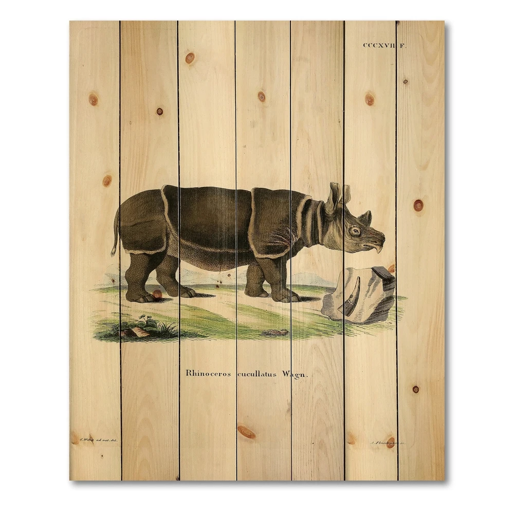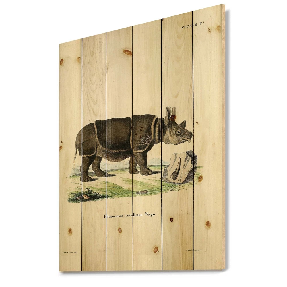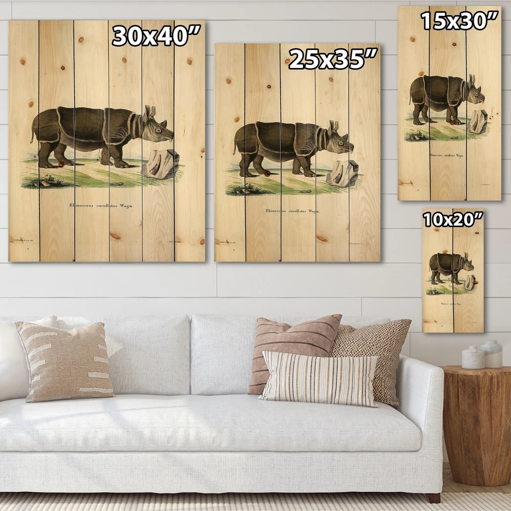 Alas, a modern take on wood wall art. Once typically a wall art piece found only in rustic or farmhouse style decor settings, this Animals wood wall art will easily fit into even the most contemporary of designs.Using the highest quality 6 Color Canon UV Ink, this Farmhouse wood wall art incorporates several aspects of fine design into one stunning piece. With its slightly visible wood grain appearing through the colors and sleekly finished edges, it is a wonderful choice for any room in your home or office, being it a traditional or modern space. As each piece of wood has natural grain differences from the next, each of these wood wall arts is a truly unique addition to your space.Each Wood wall art is 100% handmade in Canada on Natural pine wood, using the highest quality ink which will Free Shipping Over $49.99* Details Designart 'Vintage Rhinoceros' Farmhouse Print on Natural Pine Wood Product Description: Alas, a modern take on wood wall art. Once typically a wall art piece found only in rustic or farmhouse style decor settings, this Animals wood wall art will easily fit into even the most contemporary of designs. Using the highest quality 6 Color Canon UV Ink, this Farmhouse wood wall art incorporates several aspects of fine design into one stunning piece. With its slightly visible wood grain appearing through the colors and sleekly finished edges, it is a wonderful choice for any room in your home or office, being it a traditional or modern space. As each piece of wood has natural grain differences from the next, each of these wood wall arts is a truly unique addition to your space. Each Wood wall art is 100% handmade in Canada on Natural pine wood, using the highest quality ink which will not fade over time. Available in Differents sizes - OrientationVertical - SubjectAnimals TypeWood Wall Art, Fine Art, Wood Fine Art, Print on Plaque - Arrives ready to hang on the wall with hanging kit included - MaterialMade with 100% natural pine wood - StyleFarmhouse - Number of Pieces1 - ColorBrown