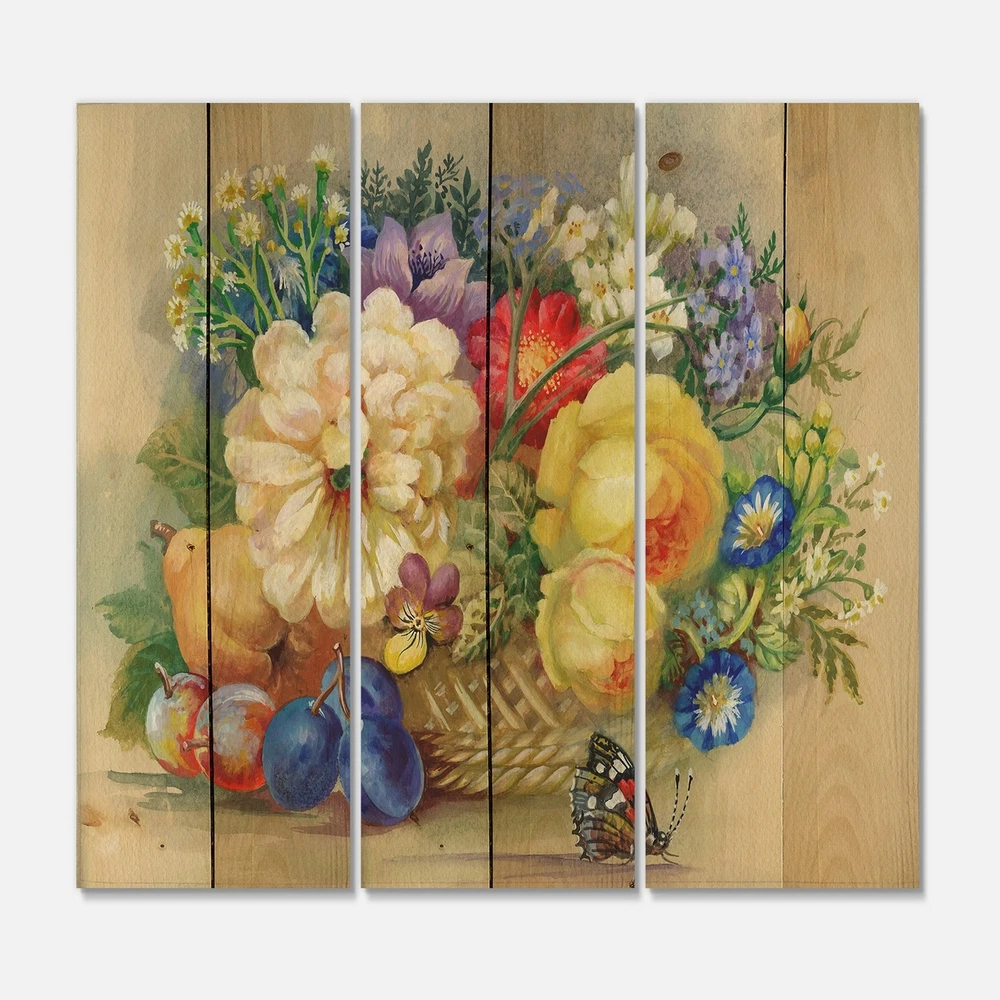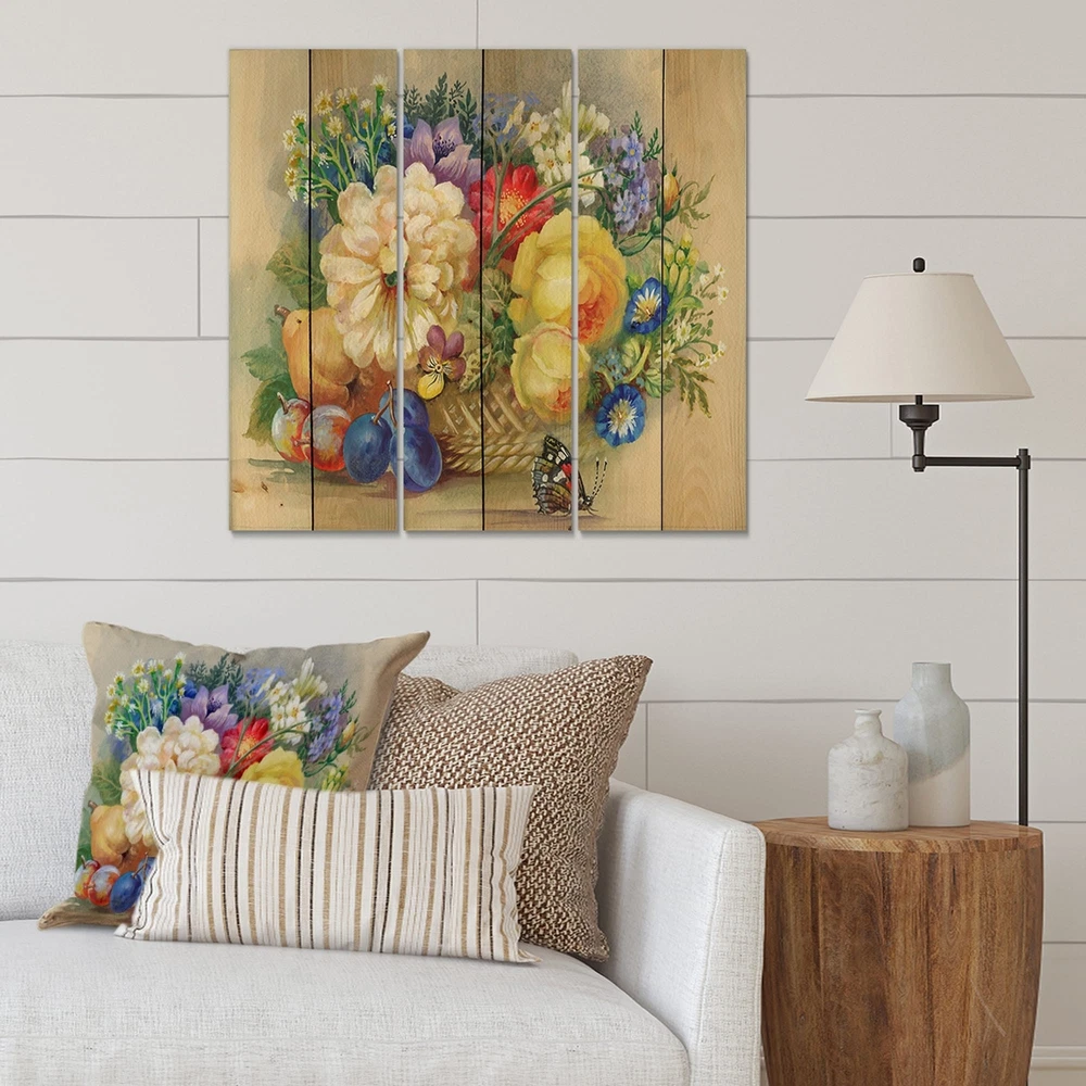 Alas, a modern take on wood wall art. Once typically a wall art piece found only in rustic or farmhouse style decor settings, this Floral wood wall art will easily fit into even the most contemporary of designs.Using the highest quality 6 Color Canon UV Ink, this Traditional wood wall art incorporates several aspects of fine design into one stunning piece. With its slightly visible wood grain appearing through the colors and sleekly finished edges, it is a wonderful choice for any room in your home or office, being it a traditional or modern space. As each piece of wood has natural grain differences from the next, each of these wood wall arts is a truly unique addition to your space.Each Wood wall art is 100% handmade in Canada on Natural pine wood, using the highest quality ink which will Free Shipping Over $49.99* Details Designart 'Vintage Still Life Of Yellow and White Flowers' Traditional Print on Product Description: Alas, a modern take on wood wall art. Once typically a wall art piece found only in rustic or farmhouse style decor settings, this Floral wood wall art will easily fit into even the most contemporary of designs. Using the highest quality 6 Color Canon UV Ink, this Traditional wood wall art incorporates several aspects of fine design into one stunning piece. With its slightly visible wood grain appearing through the colors and sleekly finished edges, it is a wonderful choice for any room in your home or office, being it a traditional or modern space. As each piece of wood has natural grain differences from the next, each of these wood wall arts is a truly unique addition to your space. Each Wood wall art is 100% handmade in Canada on Natural pine wood, using the highest quality ink which will not fade over time. - OrientationHorizontal - SubjectFloral TypeWood Wall Art, Fine Art, Wood Fine Art, Print on Plaque - Arrives ready to hang on the wall with hanging kit included - MaterialMade with 100% natural pine wood - StyleTraditional - Number of Pieces3 - ColorMulti-Color