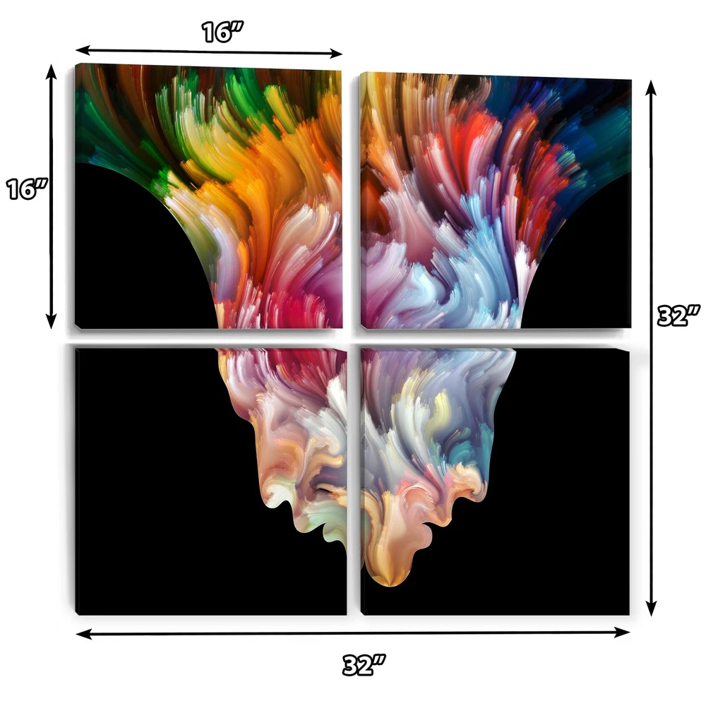 This beautiful Virtualization of Paint Face Multipanels canvas art is printed using the highest quality fade-resistant ink on canvas. Every one of our fine art giclee canvas prints is printed on premium quality cotton canvas, using the finest quality inks which will not fade over time. Each giclee print is stretched tightly over a 1-inch wood subframe ensuring the canvas is taught and does not buckle. This canvas art print is gallery-wrapped (the design continues on the sides), giving it a real art gallery feel. All of our canvas prints are carefully packaged with plastic protection, fragile labeling, and sturdy boxes to ensure safe delivery. Every canvas print arrives ready to hang on the wall, with the hanging kits included.- Style : Modern & Contemporary- Subject : Abstract- Color : Free Shipping Over $49.99* Details Designart "Virtualization of Paint Face" Abstract Canvas Wall Art Print Product Description: This beautiful Virtualization of Paint Face Multipanels canvas art is printed using the highest quality fade-resistant ink on canvas. Every one of our fine art giclee canvas prints is printed on premium quality cotton canvas, using the finest quality inks which will not fade over time. Each giclee print is stretched tightly over a 1-inch wood subframe ensuring the canvas is taught and does not buckle. This canvas art print is gallery-wrapped (the design continues on the sides), giving it a real art gallery feel. All of our canvas prints are carefully packaged with plastic protection, fragile labeling, and sturdy boxes to ensure safe delivery. Every canvas print arrives ready to hang on the wall, with the hanging kits included. - Style Modern & Contemporary - Subject Abstract - Color Black - This canvas giclee print is gallery-wrapped (the design continues on the sides) , giving it a real art gallery feel. - Premium quality cotton canvas. - Arrives ready to hang on the wall - Easy to Hang