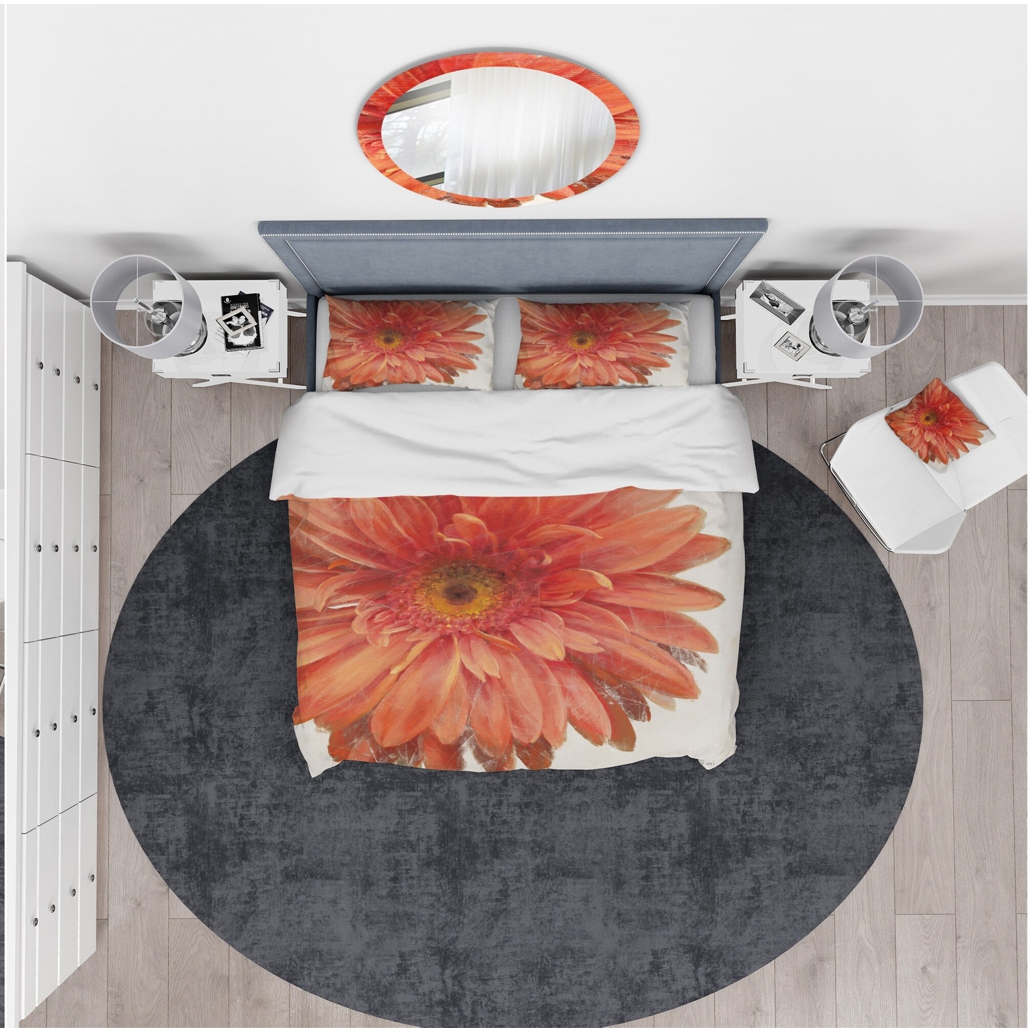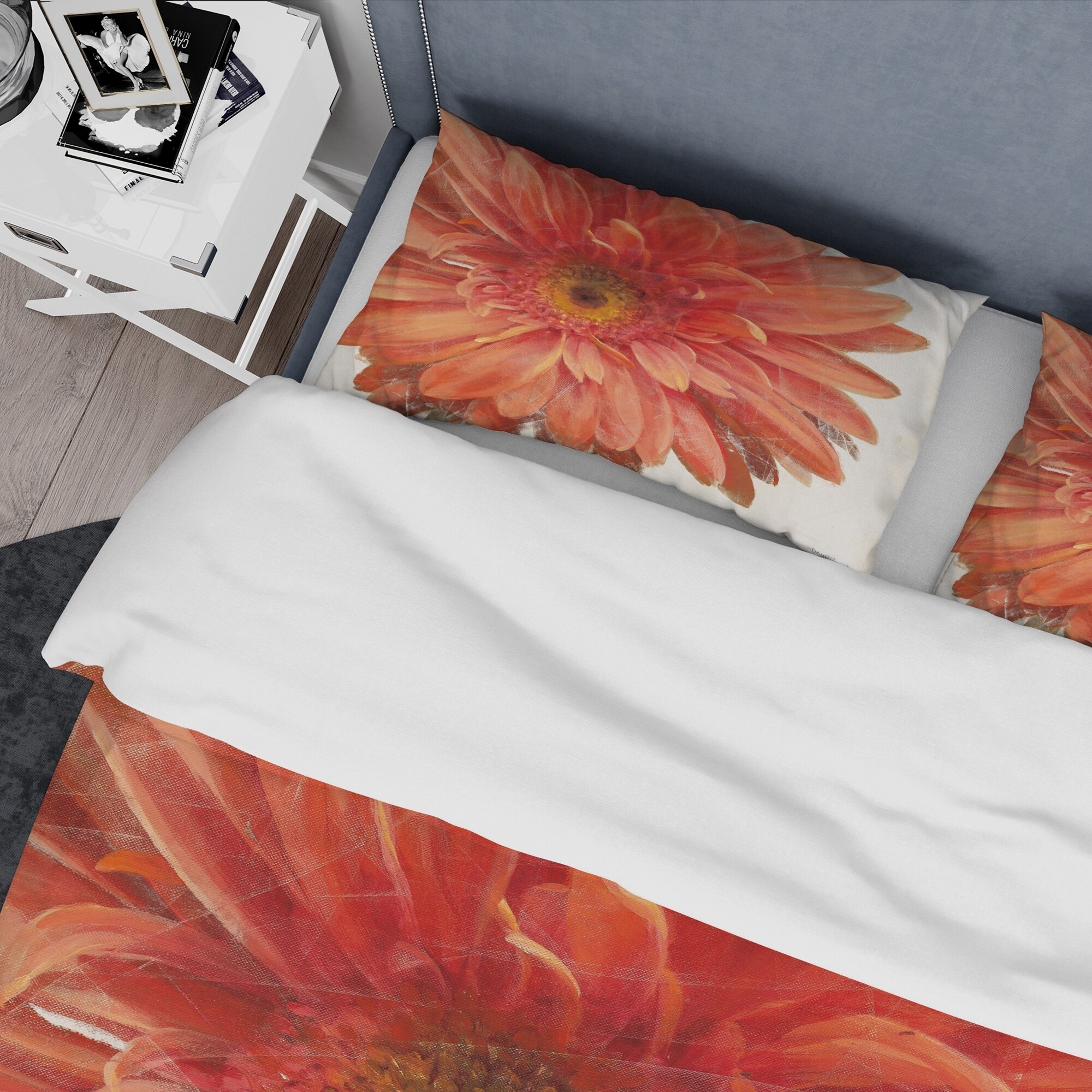 Transform your bedroom into a cozy and stylish retreat with this luxurious Traditional bedding set. Featuring a vibrant and eye-catching floral design, this set is created using high density Italian ink and ultra-soft, lightweight 100% microfiber polyester for ultimate comfort. The set includes one duvet cover and two pillow shams, available in twin, queen, and king sizes. Made in Canada, this set is both wrinkle-resistant and odorless, ensuring a peaceful night's sleep. Complete the look with matching decorative wall art and throw pillows (sold separately).Features: Vibrant and eye-catching floral design printed with high density Italian ink Made from ultra-soft, lightweight 100% microfiber polyester for ultimate comfort Set includes one duvet cover and two pillow shams, available in Free Shipping Over $49.99* Details Designart 'Vivid Red Daisy' Traditional Bedding Set - Duvet Cover & Shams Product Description: Transform your bedroom into a cozy and stylish retreat with this luxurious Traditional bedding set. Featuring a vibrant and eye-catching floral design, this set is created using high density Italian ink and ultra-soft, lightweight 100% microfiber polyester for ultimate comfort. The set includes one duvet cover and two pillow shams, available in twin, queen, and king sizes. Made in Canada, this set is both wrinkle-resistant and odorless, ensuring a peaceful night's sleep. Complete the look with matching decorative wall art and throw pillows (sold separately). Features: Vibrant and eye-catching floral design printed with high density Italian ink Made from ultra-soft, lightweight 100% microfiber polyester for ultimate comfort Set includes one duvet cover and two pillow shams, available in twin, queen, and king sizes Trendy and stylish floral & botanical design Made in Canada with wrinkle-resistant and odorless fabric for ultimate convenience Actual comforter inserts and pillow inserts are not included. This set includes the two pillow shams and comforter cover only. Machine washable on cold gentle cycle. Wash separately on first wash. Use only non-chlorine bleach when needed. Tumble dry low. Remove promptly. King: 1 Duvet Cover104 inches wide x 88 inches long 2 King Shams20 inches wide x 36 inches long Queen: 1 Duvet Cover88 inches wide x 88 inches long 2 Standard Shams16 inches wide x 26 inches long Twin: 1 Duvet Cover68 inches wide x 88 inches long 1 Standard Sham16 inches wide x 26 inches long