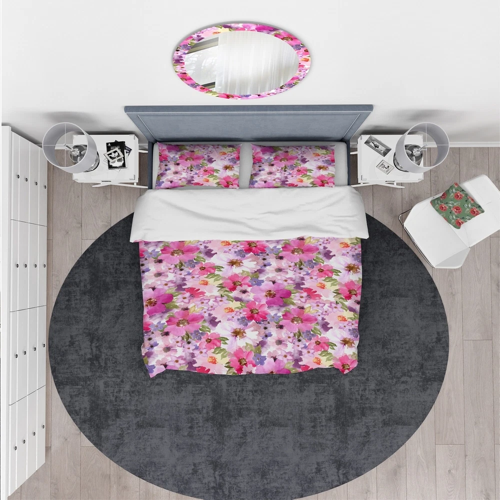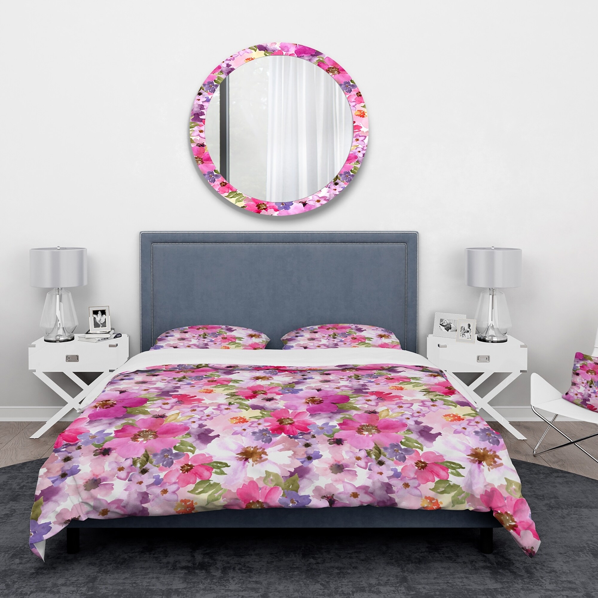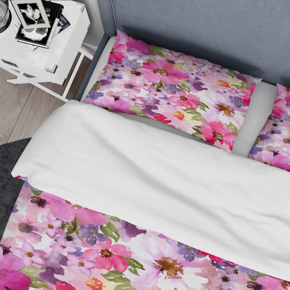 Brighten up your bedroom with this floral bedding set, featuring a vibrant watercolor design in pink and purple. Consisting of a duvet cover and shams, this set is made of durable microfiber polyester that's conveniently wrinkle-resistant, lightweight, and machine washable for low-maintenance use. Free Shipping Over $49.99* Details Designart 'Watercolor Pianted Pink and Purple Flowers' Floral Bedding Set - Product Description: Brighten up your bedroom with this floral bedding set, featuring a vibrant watercolor design in pink and purple. Consisting of a duvet cover and shams, this set is made of durable microfiber polyester that's conveniently wrinkle-resistant, lightweight, and machine washable for low-maintenance use.