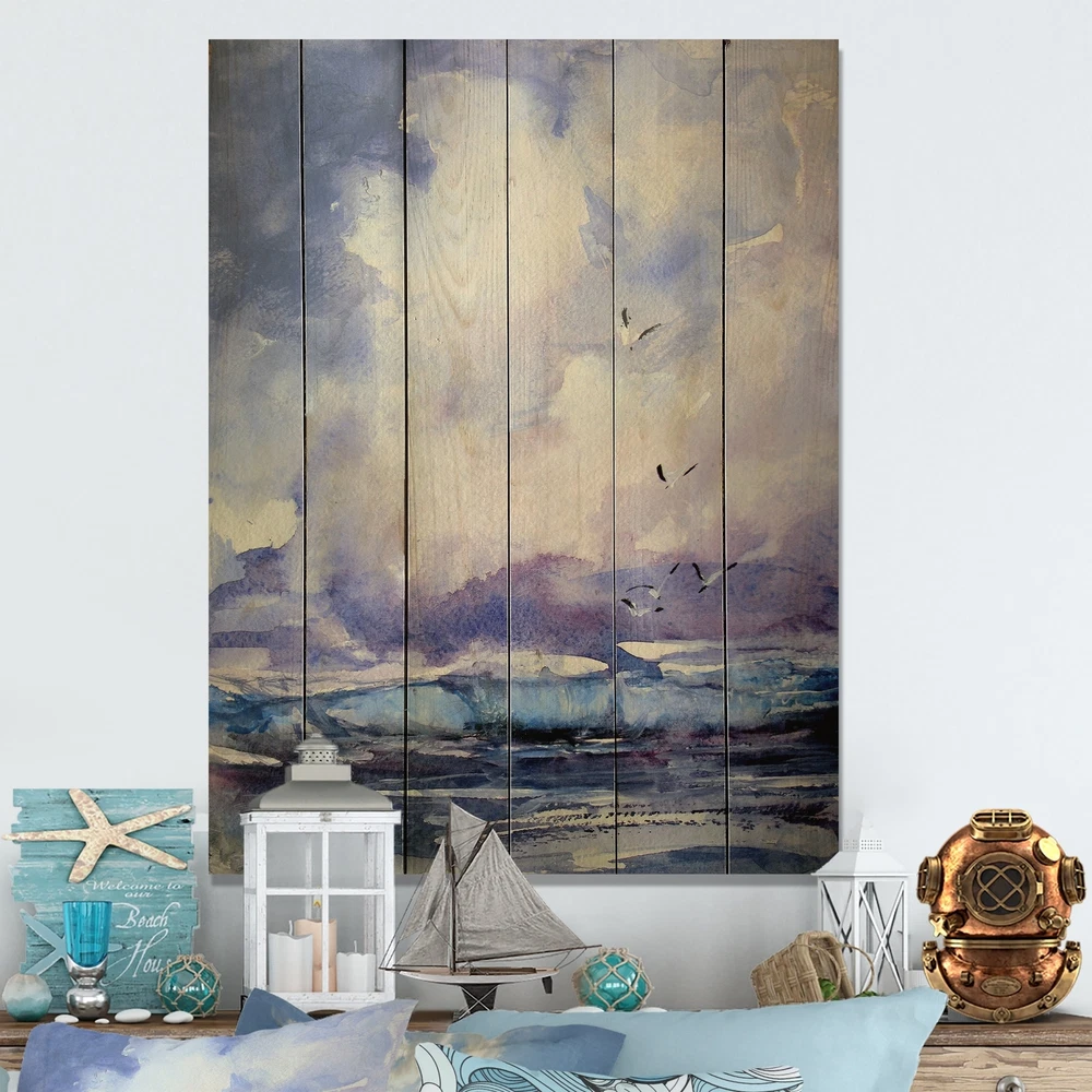 Alas, a modern take on wood wall art. Once typically a wall art piece found only in rustic or farmhouse style decor settings, this sea & Shore wood wall art will easily fit into even the most contemporary of designs.Using the highest quality 6 Color Canon UV Ink, this Nautical & Coastal wood wall art incorporates several aspects of fine design into one stunning piece. With its slightly visible wood grain appearing through the colors and sleekly finished edges, it is a wonderful choice for any room in your home or office, being it a traditional or modern space. As each piece of wood has natural grain differences from the next, each of these wood wall arts is a truly unique addition to your space.Each Wood wall art is 100% handmade in Canada on Natural pine wood, using the highest quality Free Shipping Over $49.99* Details Designart 'Wave And Sea Gulls V' Nautical & Coastal Wood Wall Art Décor - Product Description: Alas, a modern take on wood wall art. Once typically a wall art piece found only in rustic or farmhouse style decor settings, this sea & Shore wood wall art will easily fit into even the most contemporary of designs. Using the highest quality 6 Color Canon UV Ink, this Nautical & Coastal wood wall art incorporates several aspects of fine design into one stunning piece. With its slightly visible wood grain appearing through the colors and sleekly finished edges, it is a wonderful choice for any room in your home or office, being it a traditional or modern space. As each piece of wood has natural grain differences from the next, each of these wood wall arts is a truly unique addition to your space. Each Wood wall art is 100% handmade in Canada on Natural pine wood, using the highest quality ink which will not fade over time. Available in Differents sizes - OrientationVertical - Subjectsea & Shore TypeWood Wall Art, Fine Art, Wood Fine Art, Print on Plaque - Arrives ready to hang on the wall with hanging kit included - MaterialMade with 100% natural pine wood - StyleNautical & Coastal - Number of Pieces1 - ColorBlue