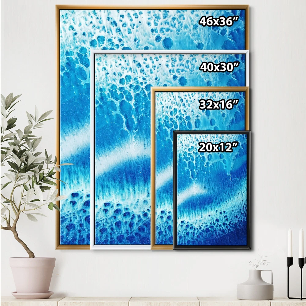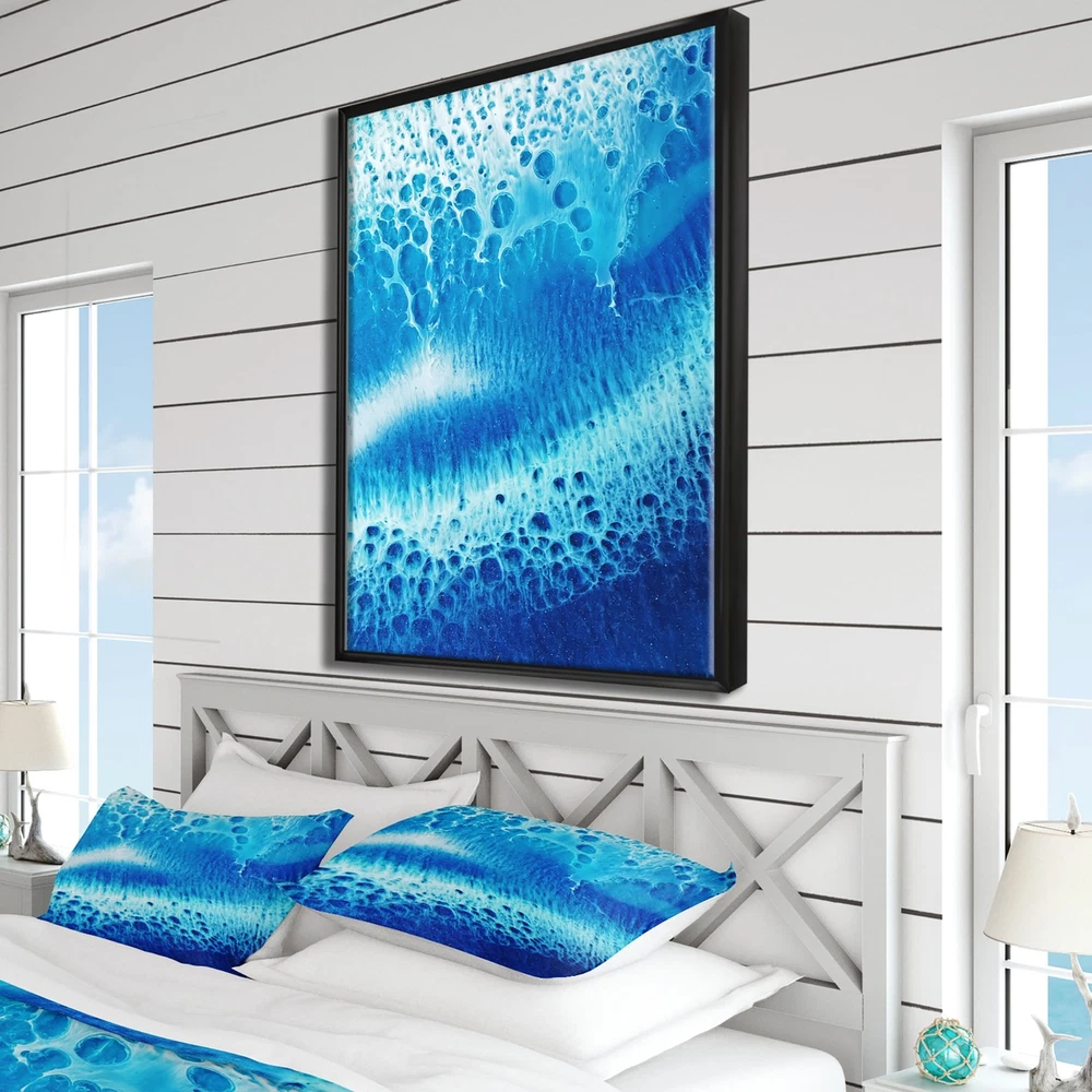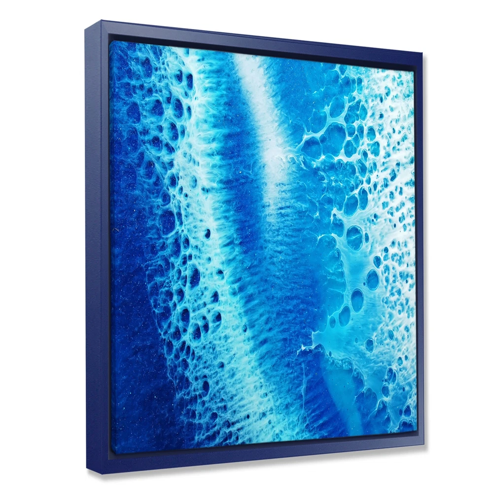 This beautiful Waves Epoxy ResIn Art I Framed Canvas Art is printed using the highest quality fade-resistant ink on canvas. Every one of our fine art giclee canvas prints is printed on premium quality canvas, using the finest quality inks which will not fade over time. Each giclee print is stretched tightly over a 1-inch wood sub frame ensuring the canvas is taught and does not buckle.The canvas print is inserted into a wood floating frame.The canvas art print is gallery-wrapped (the design continues on the sides) , giving it a real art gallery feel. All of our Framed canvas prints are carefully packaged with corner protection, fragile labeling and sturdy boxes to ensure safe delivery. Every framed canvas print arrives ready to hang on the wall, with the hanging kits included.Features:- Free Shipping Over $49.99* Details Designart "Waves Epoxy ResIn Art I" Modern & Contemporary Framed Canvas Wall Art Product Description: This beautiful Waves Epoxy ResIn Art I Framed Canvas Art is printed using the highest quality fade-resistant ink on canvas. Every one of our fine art giclee canvas prints is printed on premium quality canvas, using the finest quality inks which will not fade over time. Each giclee print is stretched tightly over a 1-inch wood sub frame ensuring the canvas is taught and does not buckle. The canvas print is inserted into a wood floating frame. The canvas art print is gallery-wrapped (the design continues on the sides) , giving it a real art gallery feel. All of our Framed canvas prints are carefully packaged with corner protection, fragile labeling and sturdy boxes to ensure safe delivery. Every framed canvas print arrives ready to hang on the wall, with the hanging kits included. Features: - Style Modern & Contemporary - Subject Abstract, Photography - Color Blue - Premium quality cotton canvas. - Arrives ready to hang on the wall - Easy to Hang