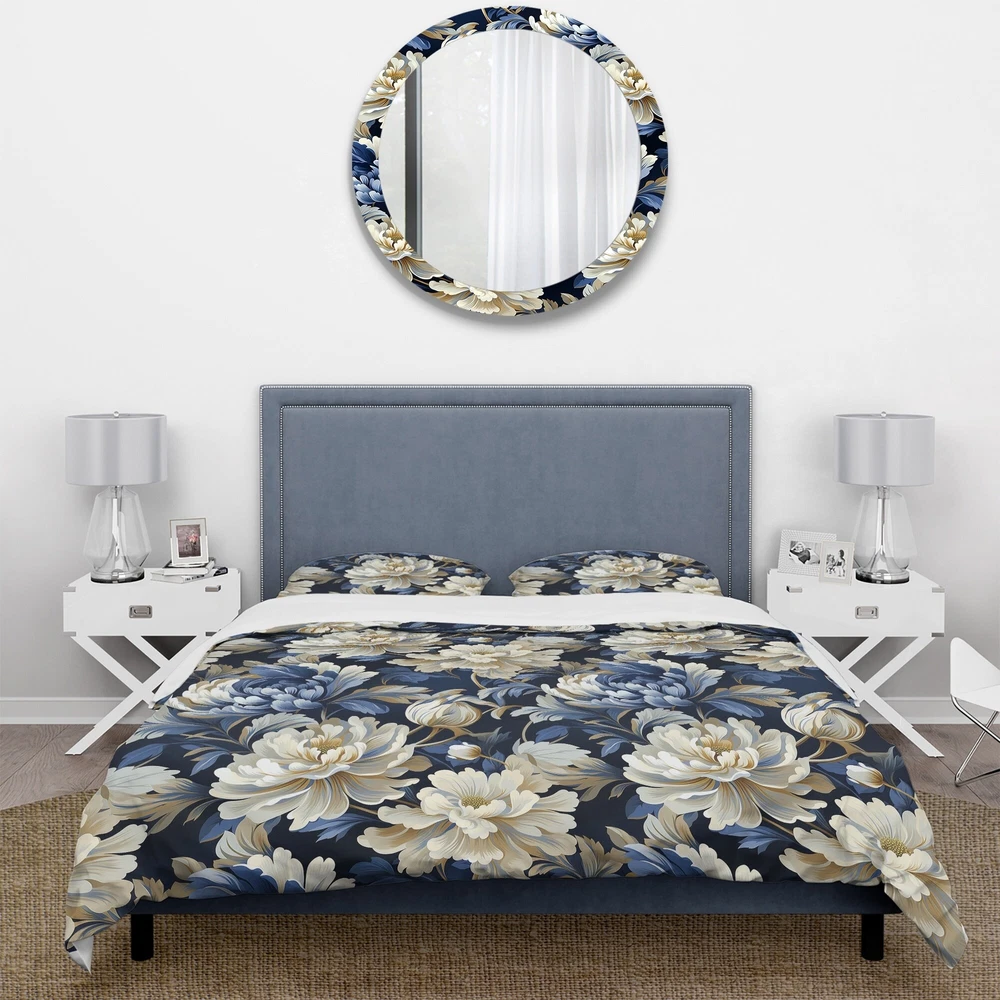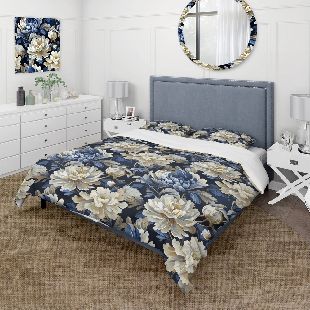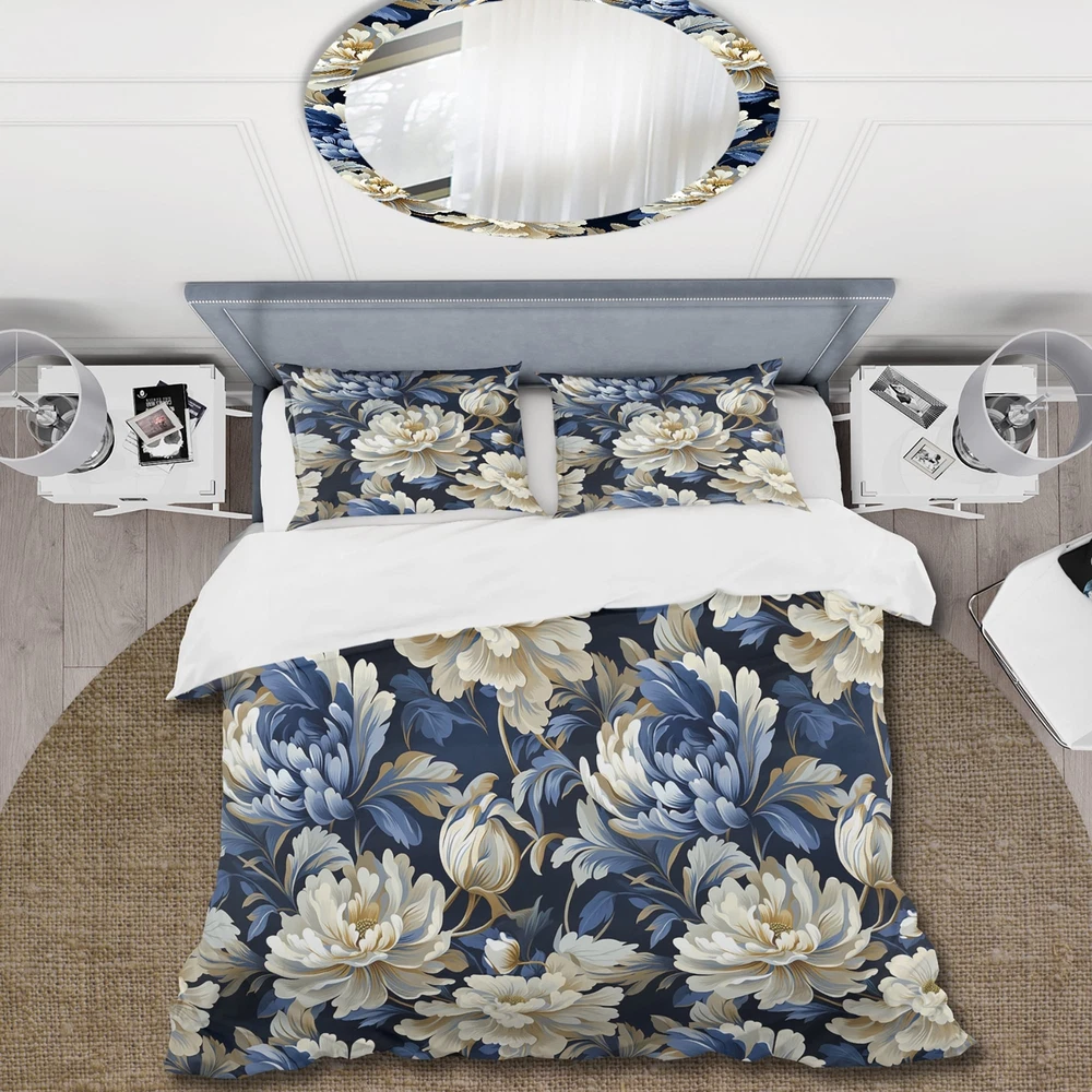 There is just nothing better than a beautiful, inviting comfortable bed after a long day. This Damask bed set is created using the richest colors stemming from high density Italian ink and the softest fabrics making it the perfect way to spruce up your bedroom, while keeping it ultra-comfortable. This luxurious White And Blue Tones Zen Damask Harmony bed design is made with 100% microfiber polyester, making it ultra-soft to ensure you sleep comfortably all night long. This Bohemian & Eclectic set includes 1 Bed Cover and 2 Shams and is available in twin, queen and king sizes.This Bedding Set is easily integrated into your already decorated space.What's Included? - Duvet Cover - Shams - Pillow Cases not included but can be buy separately - Comforter Insert NOT Free Shipping Over $49.99* Details Designart "White And Blue Tones Zen Damask Harmony" Damask bedding set with Product Description: There is just nothing better than a beautiful, inviting comfortable bed after a long day. This Damask bed set is created using the richest colors stemming from high density Italian ink and the softest fabrics making it the perfect way to spruce up your bedroom, while keeping it ultra-comfortable. This luxurious White And Blue Tones Zen Damask Harmony bed design is made with 100% microfiber polyester, making it ultra-soft to ensure you sleep comfortably all night long. This Bohemian & Eclectic set includes 1 Bed Cover and 2 Shams and is available in twin, queen and king sizes. This Bedding Set is easily integrated into your already decorated space. What's Included? - Duvet Cover - Shams - Pillow Cases not included but can be buy separately - Comforter Insert NOT INCLUDED Features - Printed using High Density Italian Ink making the colors extra vibrant. - Made from ultra-soft, lightweight 100% microfiber polyester. Wrinkle resistant fabric. Down-like comfort, odorless. - The Bohemian & Eclectic bed set includes one bed cover and two standard pillow shams to create a complete and stylish look. - The elegant and soft colors are both trendy and fun to brighten and update your bedroom. - Made in Canada - Decorative Wall Art and throw pillows to match this set are available but sold separately. - Actual comforter inserts and pillow inserts are not included. This set includes the two pillow shams and comforter cover only. King Dimensions: - 1 Duvet Cover104 inches wide x 88 inches long - 2 King Shams20 inches wide x 36 inches long Queen Dimensions: - 1 Duvet Cover88 inches wide x 88 inches long - 2 Standard Shams16 inches wide x 26 inches long Twin Dimensions: - 1 Duvet Cover68 inches wide x 88 inches long - 1 Standard Sham16 inches wide x 26 inches long Product Details - MaterialPolyester. - PatternDamask - ColorBlue - StyleBohemian & Eclectic - ReversibleNo Directions: Fabric Care InstructionsMachine wash on cold gentle cycle. Wash separately on first wash. Use only non- chlorine bleach when needed. Tumble dry low. Remove promptly.