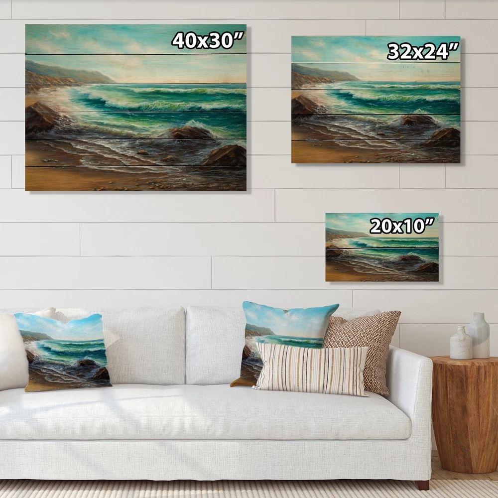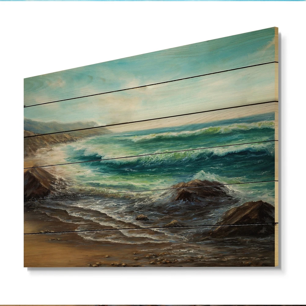 Alas, a modern take on wood wall art. Once typically a wall art piece found only in rustic or farmhouse style decor settings, this sea & Shore wood wall art will easily fit into even the most contemporary of designs.Using the highest quality 6 Color Canon UV Ink, this Nautical & Coastal wood wall art incorporates several aspects of fine design into one stunning piece. With its slightly visible wood grain appearing through the colors and sleekly finished edges, it is a wonderful choice for any room in your home or office, being it a traditional or modern space. As each piece of wood has natural grain differences from the next, each of these wood wall arts is a truly unique addition to your space.Each Wood wall art is 100% handmade in Canada on Natural pine wood, using the highest quality Free Shipping Over $49.99* Details Designart 'Wild Blue Ocean Waves III' Nautical & Coastal Wood Wall Art - Natural Product Description: Alas, a modern take on wood wall art. Once typically a wall art piece found only in rustic or farmhouse style decor settings, this sea & Shore wood wall art will easily fit into even the most contemporary of designs. Using the highest quality 6 Color Canon UV Ink, this Nautical & Coastal wood wall art incorporates several aspects of fine design into one stunning piece. With its slightly visible wood grain appearing through the colors and sleekly finished edges, it is a wonderful choice for any room in your home or office, being it a traditional or modern space. As each piece of wood has natural grain differences from the next, each of these wood wall arts is a truly unique addition to your space. Each Wood wall art is 100% handmade in Canada on Natural pine wood, using the highest quality ink which will not fade over time. Available in Differents sizes - OrientationHorizontal - Subjectsea & Shore TypeWood Wall Art, Fine Art, Wood Fine Art, Print on Plaque - Arrives ready to hang on the wall with hanging kit included - MaterialMade with 100% natural pine wood - StyleNautical & Coastal - Number of Pieces1 - ColorBlue