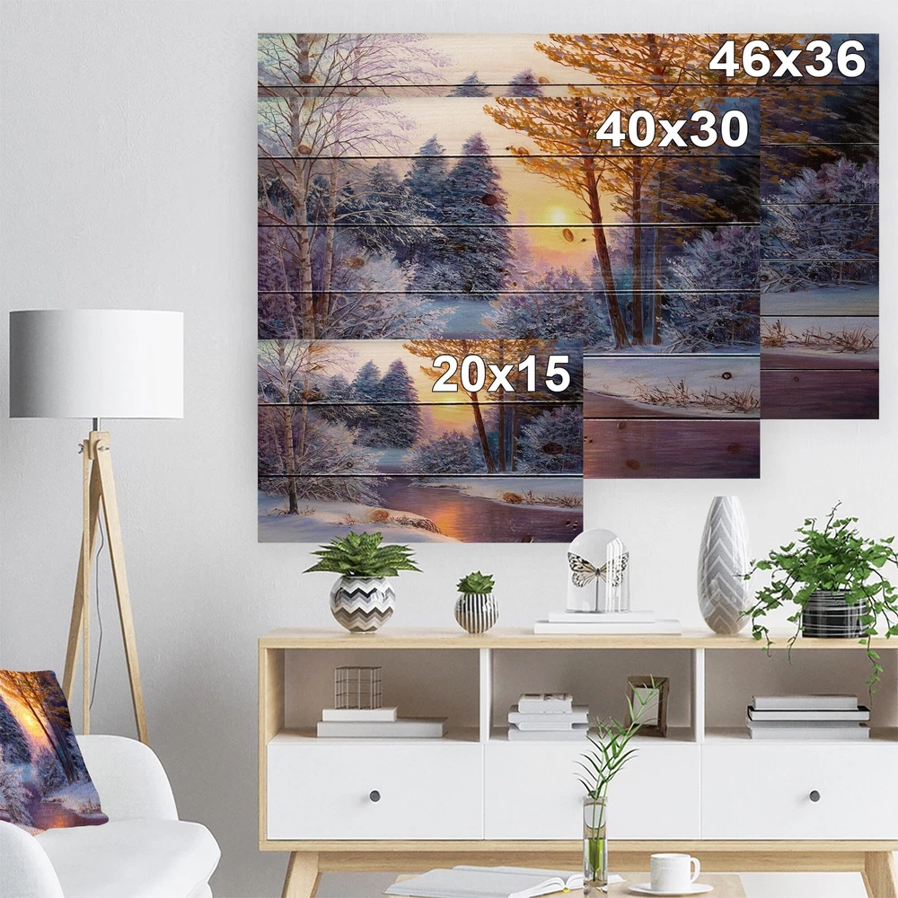Alas, a modern take on wood wall art. Once typically a wall art piece found only in rustic or farmhouse style decor settings, this Landscapes wood wall art will easily fit into even the most contemporary of designs.Using the highest quality 6 Color Canon UV Ink, this Nautical & Coastal wood wall art incorporates several aspects of fine design into one stunning piece. With its slightly visible wood grain appearing through the colors and sleekly finished edges, it is a wonderful choice for any room in your home or office, being it a traditional or modern space. As each piece of wood has natural grain differences from the next, each of these wood wall arts is a truly unique addition to your space.Each Wood wall art is 100% handmade in Canada on Natural pine wood, using the highest quality ink Free Shipping Over $49.99* Details Designart 'Winter Forest In River' Nautical & Coastal Wood Wall Art - Natural Product Description: Alas, a modern take on wood wall art. Once typically a wall art piece found only in rustic or farmhouse style decor settings, this Landscapes wood wall art will easily fit into even the most contemporary of designs. Using the highest quality 6 Color Canon UV Ink, this Nautical & Coastal wood wall art incorporates several aspects of fine design into one stunning piece. With its slightly visible wood grain appearing through the colors and sleekly finished edges, it is a wonderful choice for any room in your home or office, being it a traditional or modern space. As each piece of wood has natural grain differences from the next, each of these wood wall arts is a truly unique addition to your space. Each Wood wall art is 100% handmade in Canada on Natural pine wood, using the highest quality ink which will not fade over time. Available in Differents sizes - OrientationHorizontal - SubjectLandscapes TypeWood Wall Art, Fine Art, Wood Fine Art, Print on Plaque - Arrives ready to hang on the wall with hanging kit included - MaterialMade with 100% natural pine wood - StyleNautical & Coastal - Number of Pieces1 - ColorWhite