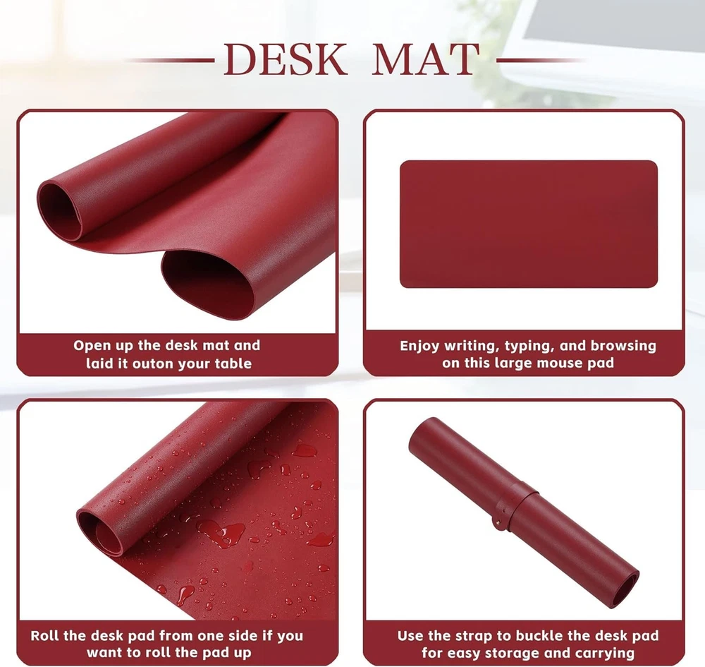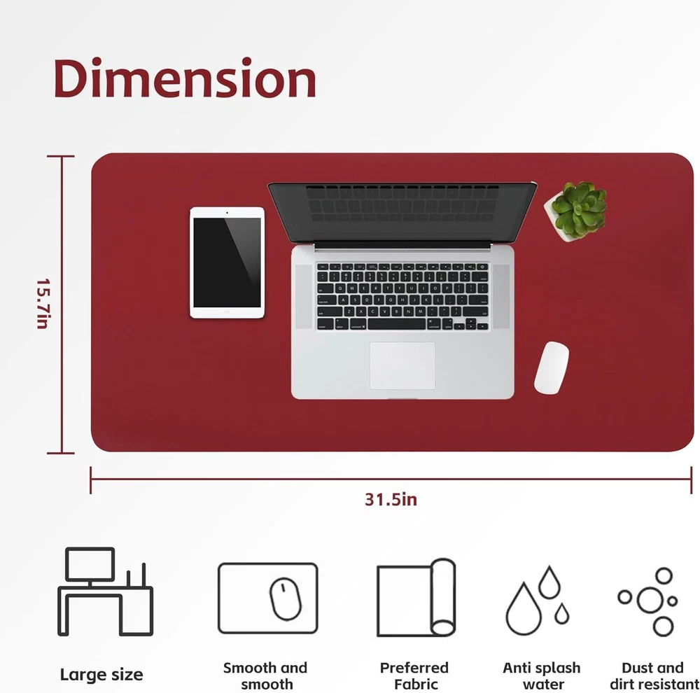-Brand New - Never Used - Questions: Feel free to ask any Questions - BOX: Never Opened - DESCRIPTION: • Premium Quality: Elevate your workspace with our Premium Leather Desk Pad, Mouse Pad, Computer Mat and Office Desk Mat. Crafted from durable PU leather, this desk pad offers comprehensive protection against scratches, stains, spills, heat, and scuffs, ensuring the longevity of your desk. * Extra-Large Size: Measuring at 31.5 x 15.7 inches, this desk pad provides ample space for your laptop, mouse, and keyboard. Its smooth and comfortable surface enhances productivity while serving as a mouse pad, desk mat, desk blotters, and writing pad. Say goodbye to clutter and hello to an organized and efficient workspace. * Non-Slip Base: The non-slip base ensures that the desk mouse pad stays in place, even during intense gaming sessions or busy workdays. Say goodbye to annoying slipping and sliding! * Easy to Clean: Our desk mouse pad is easy to clean, simply wipe it with a damp cloth to remove any dirt or spills. It is also water-resistant, providing added protection for your desk. * Stylish Design: With its sleek and modern design, this desk mouse pad will complement any office or home decor. It adds a touch of elegance to your workspace while also protecting your desk from scratches and spills. - OFFERS: Reasonable offers are considered, LOWBALLERS, Best price and Lowest askers will be ignored - all sales final/no refunds/ no exchanges/ no returns - Disclaimer: I do not own the brand's trademarks, logos, pictures, or products posted. I do not intend to infringe on copyright. I find such content available on the internet. Contents are considered fair use. - A91 Home&Office Leather Desk Pad - Waterproof, Non-Slip Office Desk Mat & Mouse Pad - Large 31.5" x 15.7" - Protect Your Desk & Enjoy Writing, Typing, and Browsing - Durable PU Leather(Red)