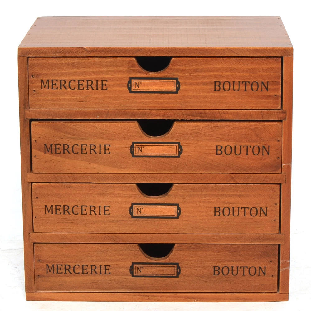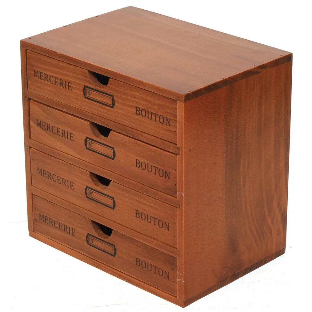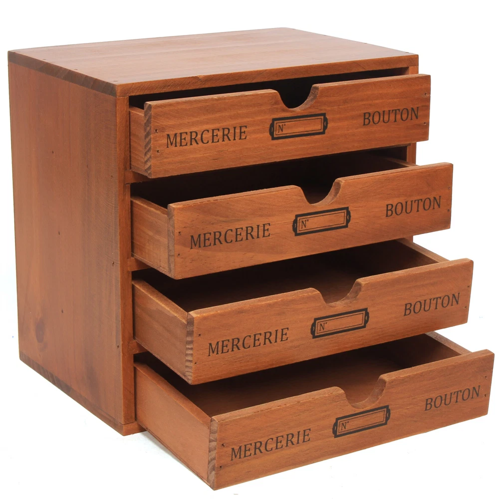 Desktop Jewelry Organizer Vintage Wooden Storage Box with 4 Layers Drawers Case
