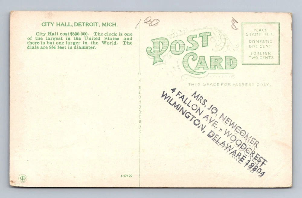 Original/Licensed Reprint: Original Material: Paper Theme: Cities & Towns Country/Region of Manufacture: Unknown Size: Standard (5.5 x 3.5 in) Unit of Sale: Single Unit Subject: Cities & Towns City: Detroit Type: Printed (Lithograph) Postage Condition: Unposted Country: USA Region: Michigan Era: Vintage