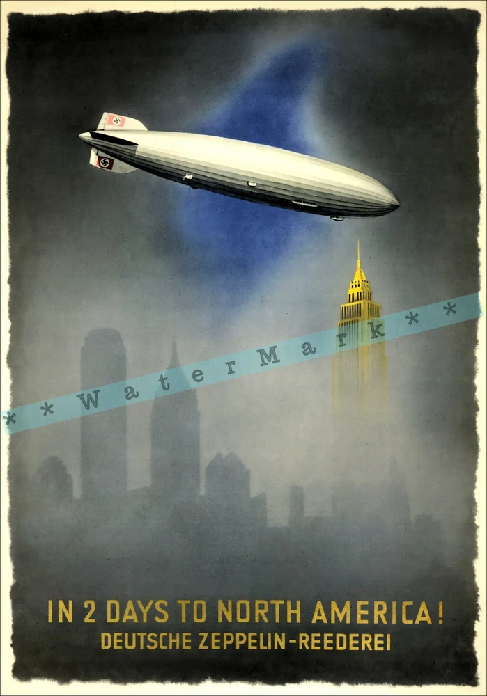 Deutsche Zeppelin Reederei 1936 Hamburg America Line In 2 Days To North America via Airship Vintage Poster Print Retro Style Restored Art ***We offer Free US Postage or Reduced Postage for Canada & Worldwide. **No charges for additional prints worldwide. ***These are not framed or stretched or mounted NOTE:**Delivery dates shown are only "Suggested" Order Early To Avoid Post Delay Dramas **Read Please: The print looks best with a nice mat (passe - partout or passepartout ) and frame. These prints are the exact proportion as the original and will not be stretched to fit the paper or canvas...this would cause a distorted print The image will be the exact aspect ratio as per the original poster, so there might be more white on the top and bottom, or side to side. Options available..use the drop-down menu * Watermark will not be on your image. *Cloth Canvas an artist canvas used also in museums and art galleries *Photo Gloss Paper is a high-quality Professional Photo paper *Matte Photo Paper is a g oo d solution if you do not want a Gloss, then this paper is good for that option. But be aware that colors will not be a bright as with the Luster for example, o ther papers are coated that helps colors. The Matte will mute the colors a bit. *Luster Photo Paper this photo paper is neither glossy or mat. Glossy paper has a smooth texture, luster paper is slightly textured. This option is a g reat choice for something in between Metallic, Photo Gloss and Matte *Metallic Pearlescent Photo Paper is a very high-quality paper with a Pearlescent sheen, a glossy finish, and unique metallic appearance, these prints have extra visual interest and depth. This paper uses a combination of film laminate layers that produce striking, dimensional, lasting images on an ultra-bright background. The effect is sometimes described as "chrome on paper." This is NOT a metal plaque, it is a photo paper This poster print will be shipped in a sturdy container. We will ship usually within 24 business hours of payment, except for weekends or US Holidays If there is a question, please do contact me All is done to send you the best quality poster image. Don't forget to check out the Sales. There is a great Buy 3 Get 1 Free Offer!! Shipped with no extra postage..Worldwide! There are a variety of reasons why the images on your monitors don't match each other. The simplest is that each monitor is different; even monitors with the same model won't have colors that match up perfectly We are located, print and ship only from the USA The art is not AI generated, these are restored prints from originals