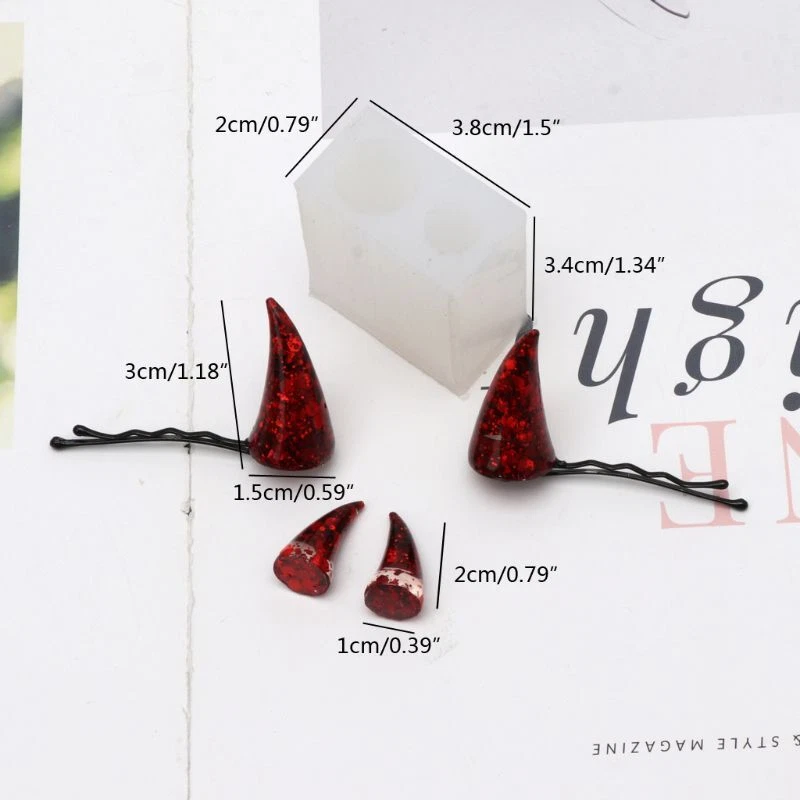 Devil Horns Hair Clips Resin Molds Epoxy Resin Jewelry Making Tools Feature: Feature: Molds are Food-grade Epoxy Silicone Non-stick,easy to separate, eco-friendly,low carbon, can be recycled Simple and useful, Healthfulness,natural antibackerial, High strength softness,corrosion and Adaptability Not easy to damage,No crack,Resistance to extreme temperature,-40°C——230°C,(-40°F——446°F) Non-toxic No smell , Heated evenly Silicone Color:Clear White Type:1# Mold 2# Twp Molds Mold Size: 3.8 x3.4 x2cm/1.5"x1.3"x0.8", Finished Large Horn:3x1.5cm/1.2"x0.6", Finished Small Horn:2x1cm/0.8"x0.4“。” More detailed,please see photo, Note: 1cm=10mm=0.39inch Please allow 0-3mm error due to manual measurement. pls make sure you do not mind before you bid. Due to the difference between different monitors, the picture may not reflect the actual color of the item. Thank you! Package includes: 1 Pc x Mold.