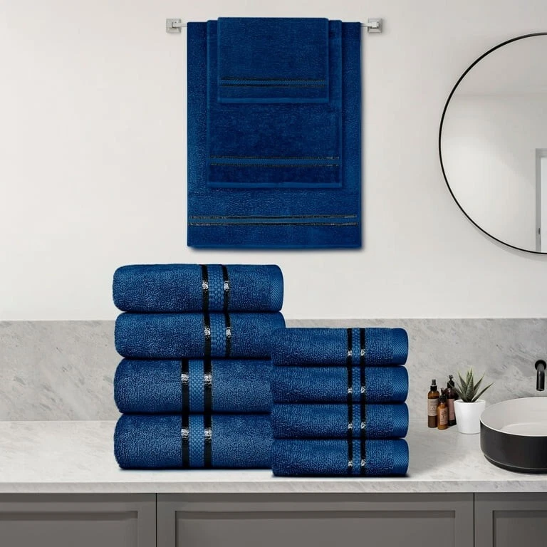 Welcome to the world of Dewall Maisons, where luxury and comfort blend seamlessly to enhance your daily living. Our brand is synonymous with elegance, quality, and functionality, offering a wide range of towel collections that cater to diverse needs and preferences. Premium Collection: The Essence of Everyday Luxury Our towels are meticulously crafted for those who appreciate the balance of plush comfort and practical performance. This collection includes: Towel Sets (18 and 8 pieces): Comprehensive sets comprising bath towels, hand towels, and washcloths, perfect for complete bathroom solutions. Bath Sheets: Extra-large towels offering enveloping warmth and absorbency. Bath Towels: Generously sized for a luxurious post-shower experience. Hand Towels: Versatile and essential, suitable for bathrooms and kitchens alike. Face Towels: Soft, gentle washcloths designed for delicate facial and hand care. Each product is made from 100% premium cotton, ensuring a soft, absorbent, and durable experience. Available in a variety of sophisticated colors, these towels add a touch of elegance to any bathroom decor while providing the ultimate in comfort and utility. SUPREME COTTON QUALITY: The Dewall Maisons 8-Piece Towel Set is crafted from 100% supreme cotton, ensuring a luxurious and soft touch. These towels offers the perfect balance of absorbency and plushness, making them ideal for everyday use. This set, including 2 bath towels, 2 hand towels, and 4 washcloths, is designed to provide comfort and luxury in your daily bathing routine. COMPLETE SET FOR ALL NEEDS: This 8-piece set is thoughtfully curated to meet all your bathroom needs. The bath towels are perfect for wrapping yourself in softness after a shower, the hand towels are great for daily hand-drying, and the washcloths are gentle on the face and body. The comprehensive set ensures you have a consistent, stylish look in your bathroom. ELEGANT COLOR OPTIONS: Dewall Maisons offers this towel set in various colors - Dark Grey, Black, White, Beige, Light Grey, and Navy Blue - to perfectly match your bathroom décor. Each color is chosen to add a touch of sophistication and elegance to your space, making these towels not just functional but also a decorative addition. DURABLE AND LONG-LASTING: Each towel in this set is made to last. The supreme-quality cotton material ensures that the towels remain soft and absorbent wash after wash, maintaining their color and texture. They are designed to withstand the rigors of regular use while retaining their luxurious feel. VERSATILE AND PRACTICAL: The Dewall Maisons Towel Set is not only luxurious but also practical. The towels are quick-drying and easy to maintain, making them a convenient choice for busy households. Whether used in the master bathroom, guest bathroom, or given as a gift, these towels add a touch of elegance and comfort to any setting. info: