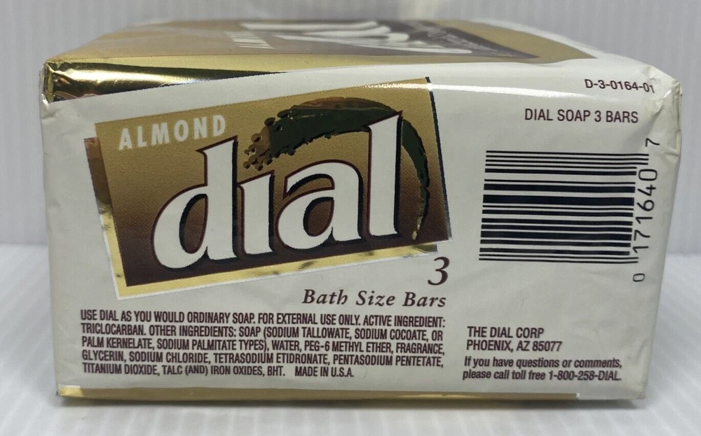 Features: Antibacterial Item Weight: 5 oz UPC: 0017000001647 Size: Regular GTIN: 0017000001647 Brand: Dial Body Area: Body Shape: Rectangular Type: Deodorant Soap Skin Type: Normal Skin gtin13: 0017000001647