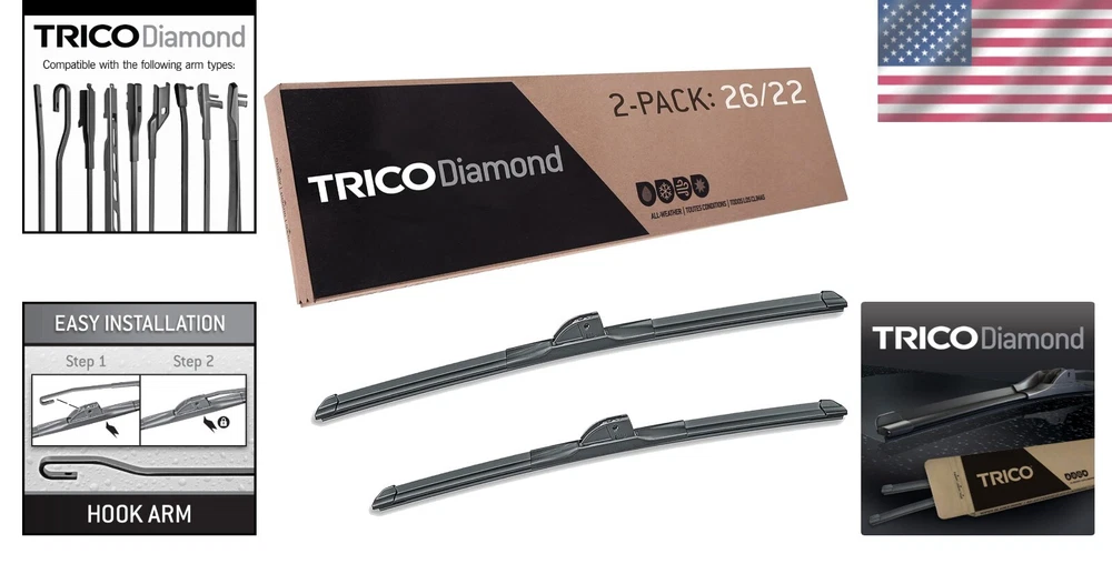 Diamond 25-2622 All-Weather High-Performance Wiper Blades 26 & 22 Inch Pack of 2 ‹ › ‹ › ‹ › ‹ › ‹ › ‹ › ‹ › ‹ › Diamond All-Weather High-Performance Wiper Blades - Pack of 2 (26 & 22 Inch) Features: POWERFUL PERFORMANCE: Exerts more pressure for superior edge-to-edge clean, ensuring maximum visibility. Wind resistant aerofoil capable of withstanding winds of up to 135 mph for enhanced safety. QUICK AND EASY INSTALLATION: Hassle-free installation in minutes, compatible with various arm types for seamless replacement. SUPER SMOOTH GLIDE: Crafted with high-glide treated rubber, these wiper blades produce a sleek, shiny clean without chatter or noise. VEHICLE APPLICATIONS: Fits a wide array of models including Acura, Ford, Honda, Toyota, and more. ADDITIONAL APPLICATIONS: Includes select Mercedes-Benz and Porsche models, ensuring a versatile fit for many vehicles. Benefits: Enhanced visibility due to superior wiping performance. Improved durability against harsh weather conditions. Effortless installation process saves time and reduces frustration. Sleek and noise-free operation elevates your driving experience. Reliable performance across various vehicle models. Why choose Diamond Wiper Blades? Experience the ultimate in clarity and performance with our Diamond All-Weather High-Performance Wiper Blades. Designed to deliver a powerful, edge-to-edge clean, these wipers ensure your visibility remains unobstructed in even the most challenging weather conditions. The innovative aerofoil design not only enhances their functionality but guarantees a smooth, silent operation that fulfills all your driving needs. Invest in your safety and comfort on the road – choose Diamond wipers for a clear view every time you drive! Shipping Free & Fast Shipping - We offer free shipping to most of the USA with a normal delivery time of 3-7 days. However, due to the current situation, additional delivery time (up to 3 weeks) may be required for some items. Alternative Carriers - We may use alternative carriers (e.g. USPS, FedEx, UPS, etc.) to ensure your package arrives safely and on time. Due to the use of multiple carriers, we are unable to provide a tracking number automatically. Handling Time - Orders are processed and shipped within 1-2 business days of receiving cleared payment. Shipping Restrictions - Shipping to Alaska, Hawaii, Puerto Rico, Guam, and other US territories may incur shipping charges or delivery restrictions. Please contact us before ordering, or your order can be refunded/cancelled. State Restrictions - There may be restrictions based on your state of purchase. For example, certain items may not be shipped to California due to state regulations. Contact for Tracking Updates - If you require tracking updates or have any concerns about the delivery of your order, please feel free to contact us, and we will be happy to assist you. Return 30-Day Hassle-Free Returns - We want you to be completely satisfied with your purchase. If you are not, you can return the item within 30 days of receiving it for a full refund or exchange. Easy Return Process - To start a return, simply contact us and we will provide you with a prepaid return shipping label and detailed instructions. Restocking Fee - There are no restocking fees for returns. However, the buyer is responsible for return shipping costs if the return is not due to a seller's error. Refund Processing Time - Refunds will be processed within 5 business days of receiving the returned item in its original condition. Payment We accept all major credit cards, PayPal, and Apple Pay for your convenience. Your payment information is secure and encrypted to ensure a safe and seamless transaction. Please complete your payment within 3 days of purchase to avoid any delays in shipping. Feedback Your feedback is extremely important to us. We strive to provide the best products and customer service possible. If you are satisfied with your purchase, please take a moment to leave us a positive review. If you have any concerns or issues with your order, please contact us before leaving negative feedback. We are committed to resolving any problems and ensuring your satisfaction. Contact Us If you have any questions or concerns, please feel free to reach out to our customer support team. You can contact us through the eBay messaging system. We are available Monday to Friday, 9:00 am to 5:00 pm EST, and we will do our best to respond to your inquiry within 24 hours. Buy it now and enjoy a pleasant shopping experience! UPC: Not Set Model: Not Set Position: Windshield Placement on Vehicle: Front Features: Easy Installation,High Performance,Wind resistant aerofoil,Quick Installation,Super Smooth Glide Items Included: 2 Wiper Blades Attachment Type: Pinch Tab Brand: Unbranded Type: Wiper Blade Number of Pieces: 2 Size: 26 in Compatible Wiper Arm: Pinch Tab Arm Manufacturer Part Number: Not Set OE/OEM Part Number: Not Set Country/Region of Manufacture: Not Set Manufacturer Warranty: Not Set Interchange Part Number: Not Set Superseded Part Number: Not Set Universal Fitment: Not Set Performance Part: Not Set Vintage Part: Not Set