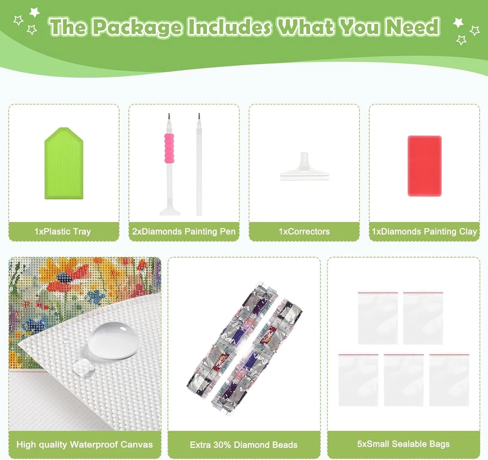 Free eBay listing template designed by dewiso.com NEWENMO Diamonds Painting Kits for Adults Beginner,DIY 5D Watercolor Flowers Diamond Art Paint with Round Diamonds, Full Drill Meadow Diamonds Painting Kit for Hobby Gift Home Wall Decor 12x16 in FREE AND FAST SHIPPING! About this item DIAMONDS PAINTING ART:Diamonds painting is a handicraft artwork. When you complete a diamonds painting kits by yourself or with your friends, it not only give your eyes to enjoy a feast , but also diamond paintings is a kind of affirmation for you to pursue the art path ENJOY DIY FUNNING: DIY diamonds painting is conducive to reducing worries, boosting self-confidence, enhancing bonding with others and practicing handicraft skills. When you and your friends or family members go to make diamonds painting kits together, you can enjoy the sense of accomplishment of completing the diamond art kit together and have a good memory SIMPLE DIAMOND ART STEPS: We have classified each color of diamonds into different bags, you can find the corresponding color of diamonds by the corresponding number of different bags, so that you can complete your diamonds painting kit more easily PREMIUM QUALITY CANVAS:Our diamonds painting printed canvases are made of high quality materials, not only are they clear, waterproof and easy to read symbols, but the pattern diamond dots kit itself has an hot melt adhesive background and plastic protective film, so the diamonds won't fall off when pressed onto the canvas WARM TIPS: We offer extra 30% diamonds beads for each color. Plenty of diamonds allow you to complete your diamond art painting creations to your heart's content Product We offer a 30-Day Return Policy on items which you are not completely satisfied with. You have the option for a full-refund or an exchange of the item. No returns are available on items shipped outside of the US . Shipping We offer Free Shipping to the US and ship within 2 business days of payment, usually sooner. We use UPS express shipping. That's why your products are usually delivered within 3 days . Contact We try our very best to make sure every customer is completely satisfied. If there's a problem , message us! We're happy to help. 24/7 live chat available.