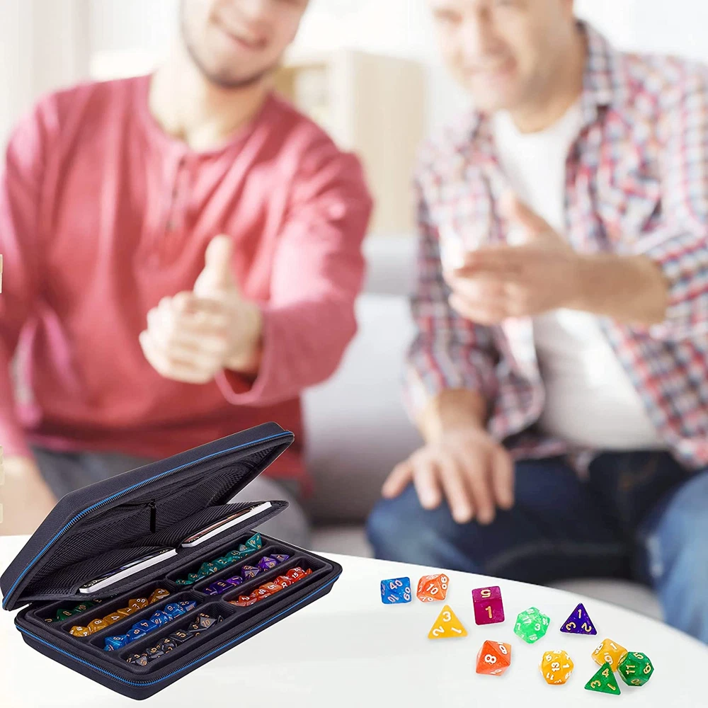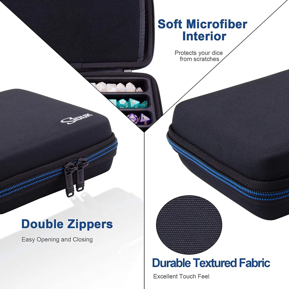 Store New Arrivals Add to Favorite View Feedback Contact Dice Case DND Dice Box Dice Storage Case Dice Organizer Holder with Handle Removable Slotted Tray Holds 8 Sets DND Dice for Dungeons & Dragons and Other RPG Table Games Description Item model number SA-21-160 Part Number SA-21-160 Style Modern Item Package Quantity 1 Color Blue Pattern Solid Product Dimensions 11 x 6 x 2.2 inches Material Ethylene Vinyl Acetate (EVA) Batteries Required? No Item Weight 12.3 ounces Batteries Included? No Storage and Rolling: The pre-slotted EVA dice case can hold up to 8 sets DND dice, detachable design allows the empty main compartment area to be used as a dice rolling tray. Multifunction Mesh Pocket: The dice storage case with a large mesh pocket can hold your Character Sheet in place and two little mesh pockets compatible with small accessories for Dungeons & Dragons and Other RPG Table Games. Portable Handle: SIQUK dnd dice case designed with a comfortable handle that you can carry the dice case to any scene easily. Premium Quality: SIQUK dice storage case made of hard EVA material with a layer of 900D Oxford cloth on the surface, durable and scratch resistant; exquisite fabric with excellent touch feel, fashion design and fine workmanship bring you a pleasant product experience. Warm Notice: Dice case only, the dices are not included. Product Description ABOUT US We offer the best prices around on high quality products. Our E-store includes media such as books, movies, music and games while offering electronics, toys, sporting apparel, clothing, tools, general home, garden items and more. SHIPPING We are always working hard to ensure your package arrives as soon as possible. Please understand that some factors like weather, high postal traffic, and the performance of shipping companies are outside of our control. We offer free shipping to the lower 48 states and ship within 2 business days of payment, usually sooner. We do not accept P.O. Boxes. Please provide a physical address. RETURNS We offer a 30-Day Return Policy on items which you are not completely satisfied with. You have the option for a full-refund or an exchange of the item. No returns are available on items shipped outside of the USA. PAYMENT We accept PayPal. CONTACT US This page content is yet to come Please ad us to your favorite seller and visit again later Thank You CUSTOMER SATISFACTION We try our very best to make sure every customer is completely satisfied. If there's a problem, message us! We're happy to help.