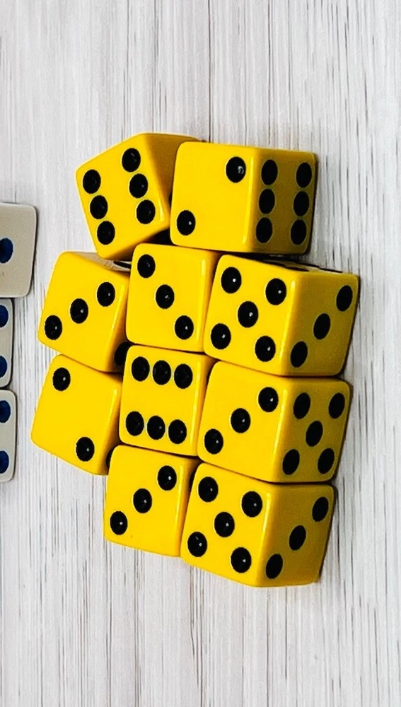 This is a lot of dice. 30 dice total. 10 yellow blk, 10 blue white and 10 white blue 30 total. They are Standard size and weight dice. Replacement dice for board games or role-playing games craps CeeLo multipurpose. Exact items in the photos are the exact items you receive. These items are in great condition. Please visit our store a few more items like these.