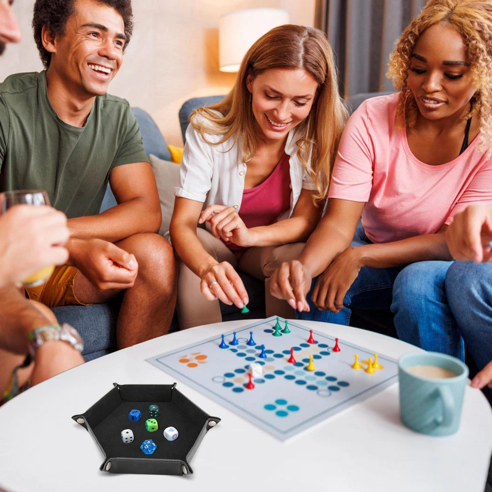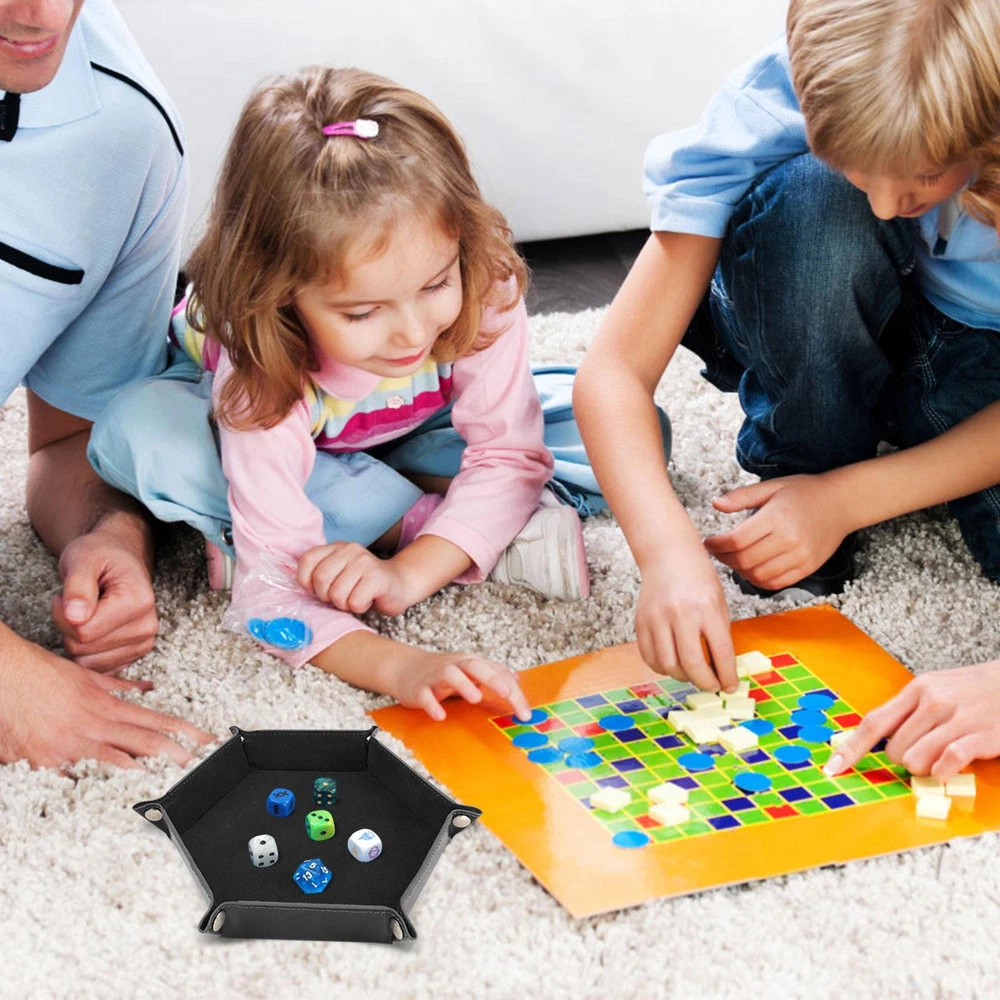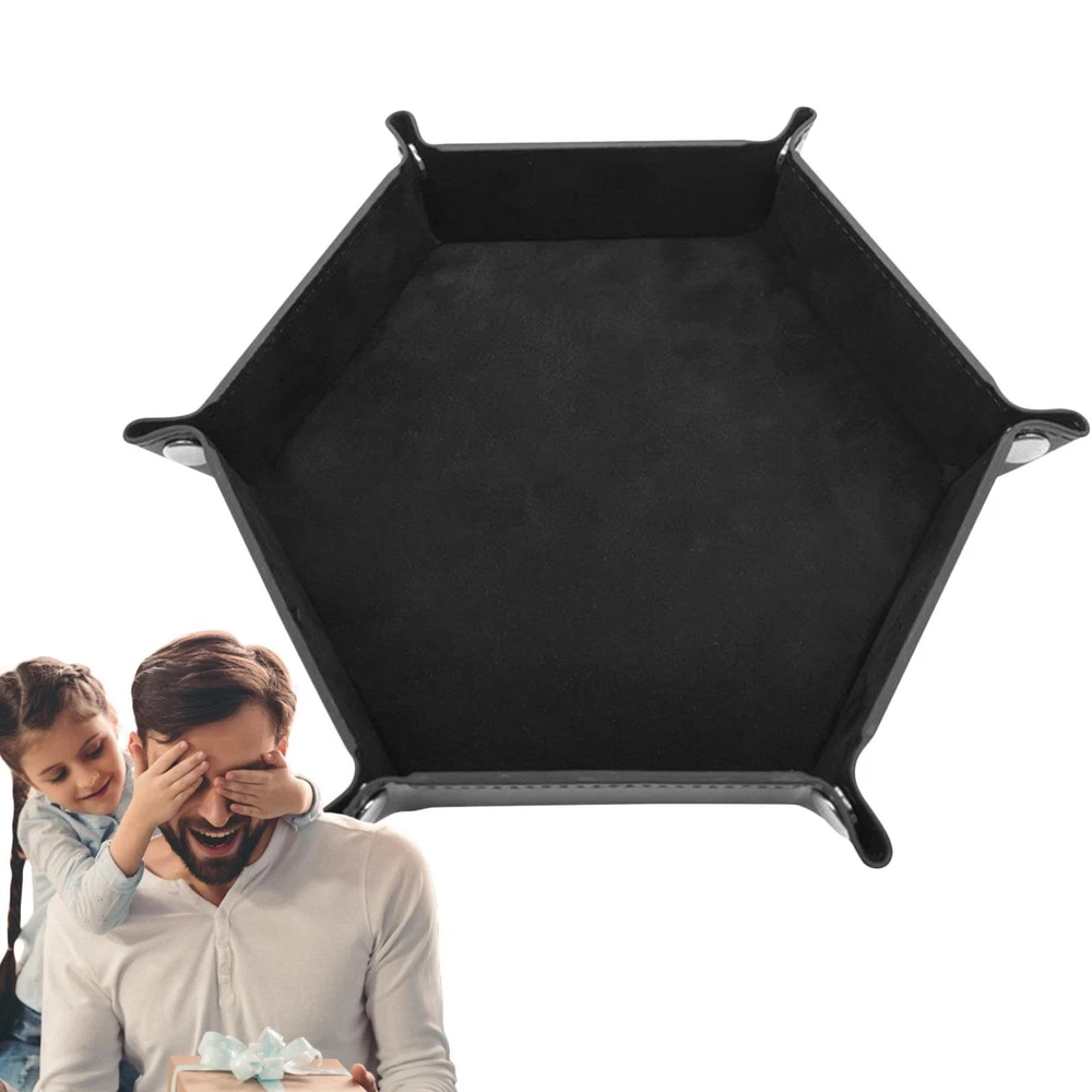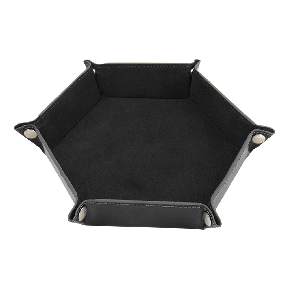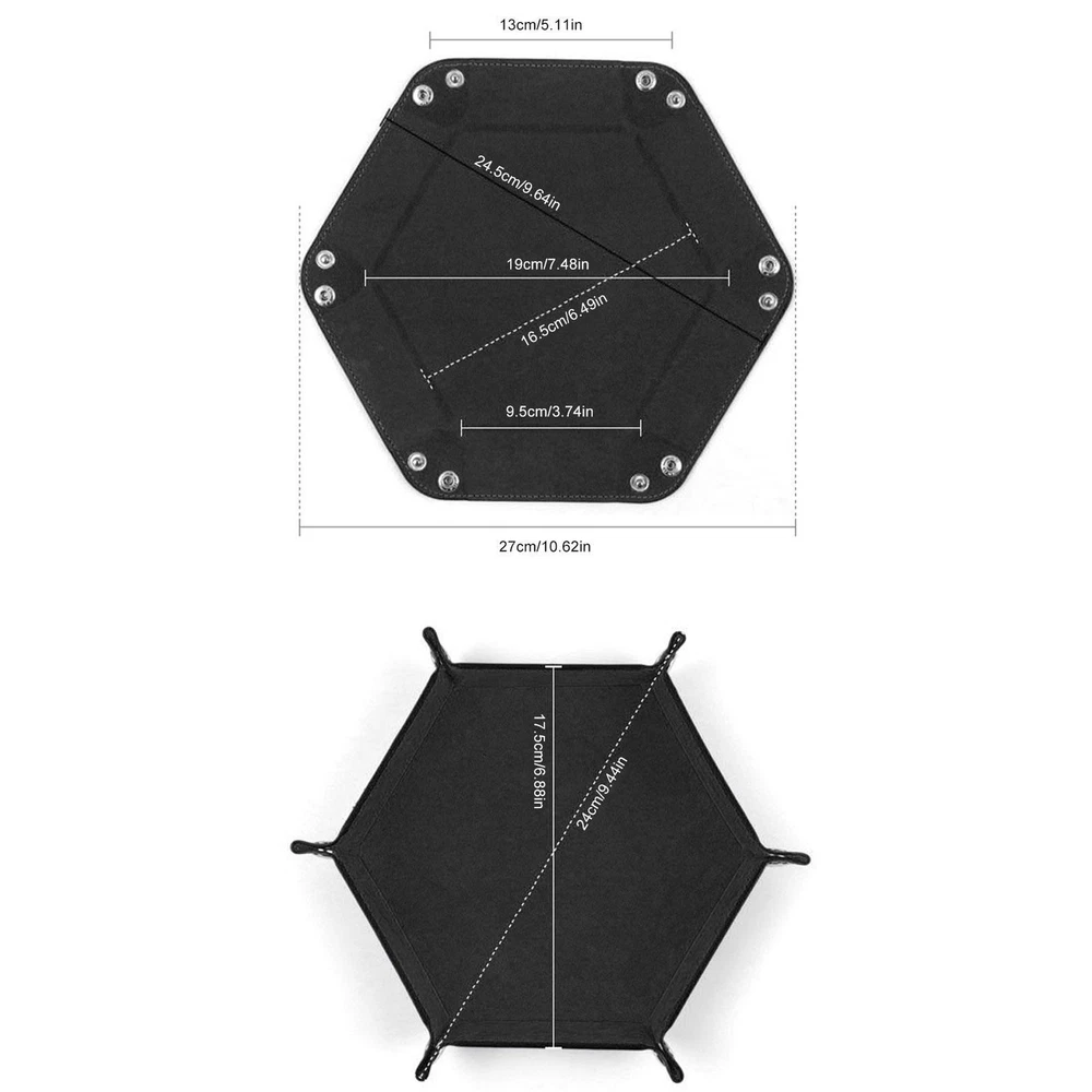 Bullet Points: This dice holder tray is perfect for storing and carrying your coins for any dice game. The inside is covered with soft flannel to protect your coins from scratches and damage. The tray is also easy to fold and unfold, making it convenient to use and store. Have fun game time with your family and friends on Christmas or any occasion with this dice holder tray. Specification: Name: Dice Rolling Tray Material: PU Color: Black Expanded size: about 24.5*24.5cm/9.6*9.6in Closed size: about 17.5*17.5c*4cm/6.9*6.9*1.6in Weight: 82g Packing List: 1* Dice Rolling Tray