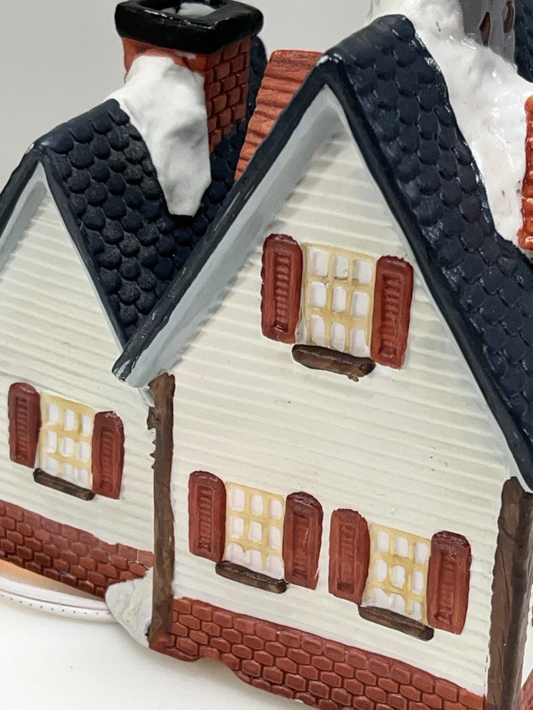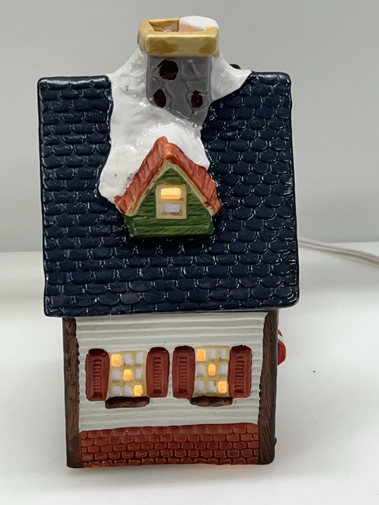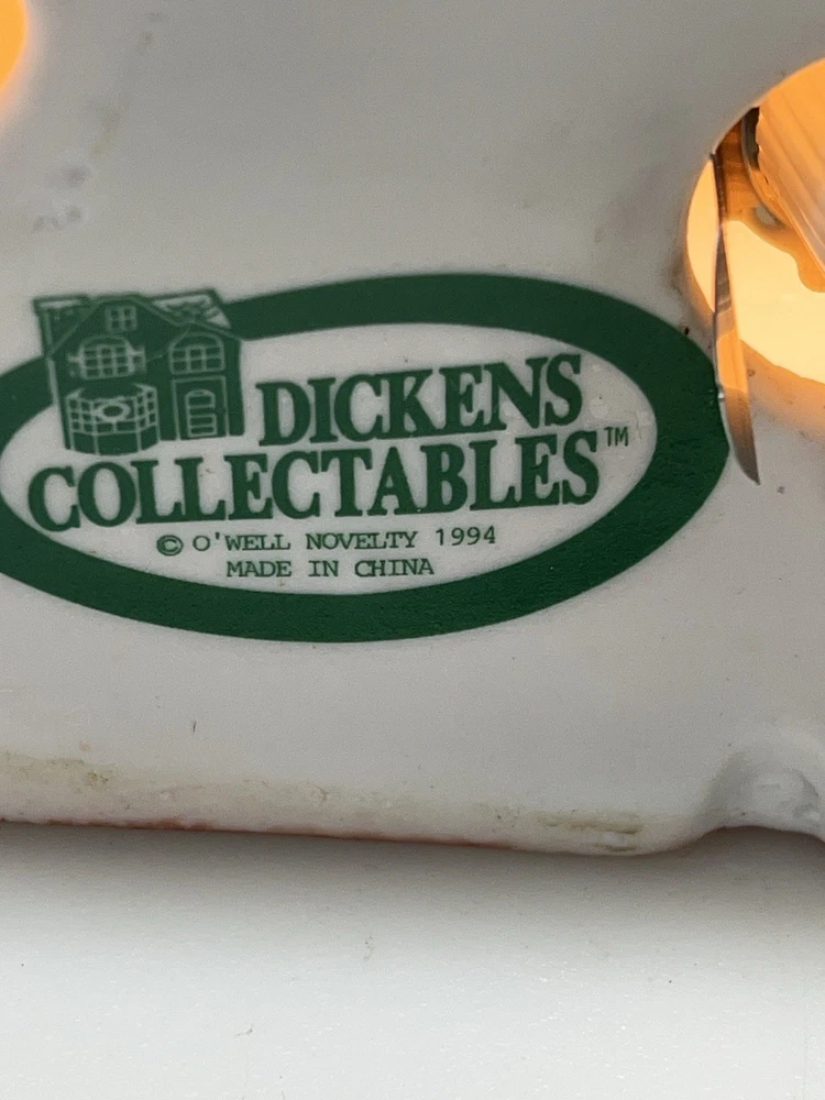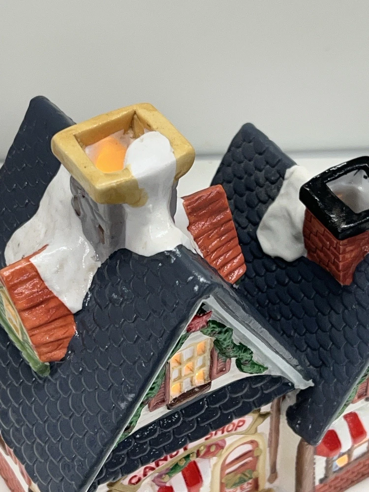 This charming Dickens Collectables Towne Series Candy Shop Village House O’Well from 1994 is a must-have for any collector of Christmas villages. The asymmetrical, hand-painted porcelain house features a whimsical candy shoppe design with multicolor accents and a illuminated interior. It comes boxed and retired, making it a rare find for those looking to add to their collection. Perfect for any room, this Victorian-style house is suitable for seasonal village display and would make a great addition to any holiday decor. The house measures 6-1/2" in height, 6" in length, and 4" in width, and was manufactured in China in the late 20th century. Don't miss out on the chance to own this delightful piece from the Dickens Collectables brand. Perfect condition! Comes with all original packaging including light & cord