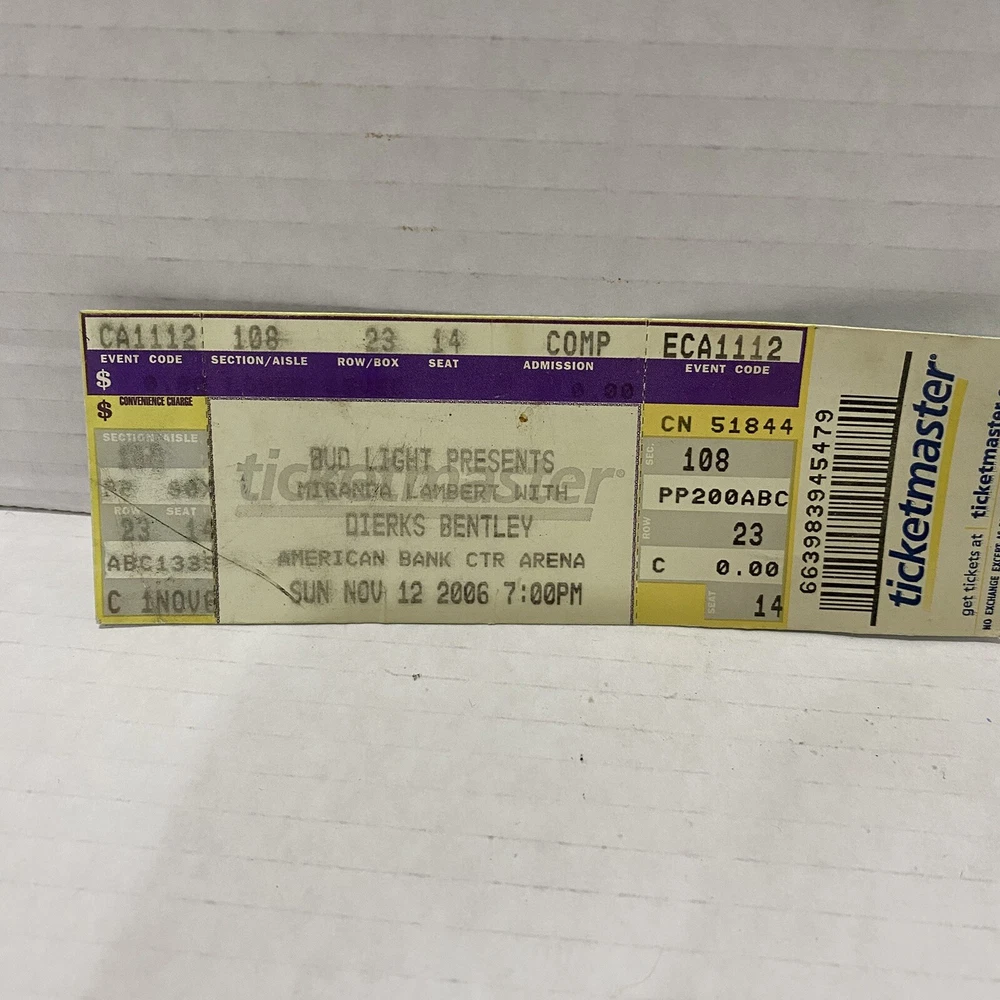 Dierks Bentley & Miranda Lambert Concert Ticket 11/12/2006 CC Texas
