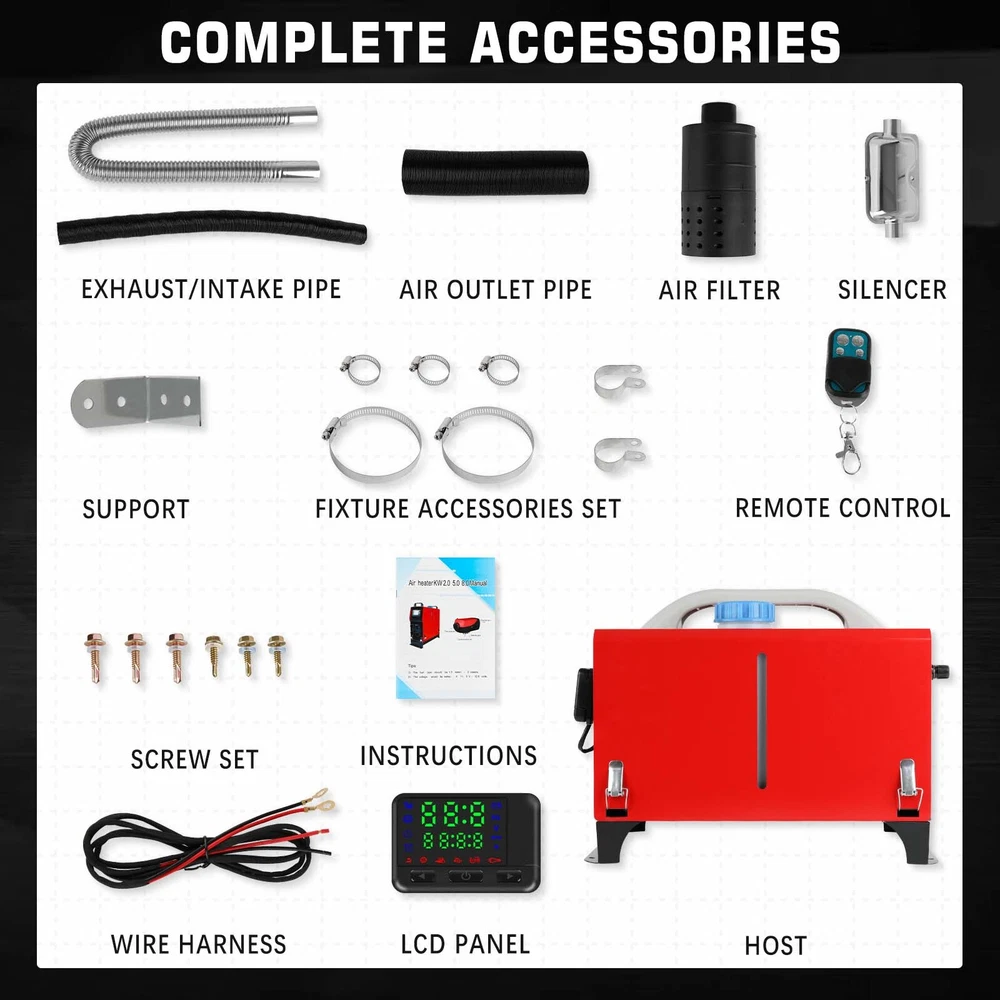 Product Description 100% brand new Universal Fitment (Please make sure to measure vehicle's fenders before purchasing) Material: Polyurethane (PU) Color: Black Front: approx.2 Pcs : 890cm(length), 350mm(Height) Rear: approx. 2 Pcs : 890cm(length), 350mm(Height) Professional installation in highly recommended (No instruction included) ? Package Includes As the picture shown Please attention:You will need to buy 24 jdm plate screws & washers as it does not come with hardware How to select and install 4x 3.5"/90mm Universal Flexible Car Fender Flares Extra Wide Body Wheel Arches Product Description 100% brand new Universal Fitment (Please make sure to measure vehicle's fenders before purchasing) Material: Polyurethane (PU) Color: Black Front: approx.2 Pcs : 890cm(length), 350mm(Height) Rear: approx. 2 Pcs : 890cm(length), 350mm(Height) Professional installation in highly recommended (No instruction included) ? Package Includes As the picture shown Please attention: You will need to buy 24 jdm plate screws & washers as it does not come with hardware How to select and install 1. Firstly, determine the diameter of the wheel eyebrow of the original car, then select the appropriate wheel eyebrow size; 2. After receiving the goods, put the wheel eyebrow in the original car, and there are 6 screws on the wheel eyebrow to determine the hole position; 3. Punch holes in the original vehicle and the wheel eyebrow and fix with screws. 4.If you want to change the color, you can do it by yourself. ? Note: pls confirm the item if it matches your car before you purchase. Item Specifics Brand : Unbranded Placement on Vehicle : Left, Right, Front, Rear Color : Black Manufacturer Part Number : Does Not Apply Condition : New Front Size : 890cm(length), 350mm(Height) Rear Size : 890cm(length), 350mm(Height) Material : Polyurethane (PU) Fitment Type : Universal Fitment UPC : Does not apply Warranty : 90 Day Payment We accept PayPal only. All major credit cards are accepted through secure payment processor PayPal. Payment must be received within 7 business days of auction closing. If you have bought multiple items from me, you can send me one payment for all the items instead of paying for them individually. When you click the Pay Now button, eBay will automatically determine if there are other items you have won or purchased from me and will combine them for your review. Shipping All customer's order will be shipped within 1 business days. (Excludes Weekends) All Friday ,Saturday and Sunday orders will be shipped on next Monday. The USA buyer will receive the item about 3-10 working days. Returns We understand that sometimes you need to make a return or an exchange. For returns, simply send your order back within 30 days and you get your money back. All we ask is you send it back in the same condition it was received - new and un-used. In order to process a return or exchange, please send us a message through eBay and we will be happy to assist you immediately. Your satisfaction is our priority. If you need any assistance, or just have questions, please do not hesitate to contact us. We are dedicated to providing you with all of the information you need to make a confident purchase, and we continue to support you after your purchase. Contact Us Our office hours are 8:00 a.m to 5:00 p.m (GMT +8) of Monday to Friday. And our Office is closed on weekends and public holidays. We apologize for the late reply during the holidays. We greatly appreciate your positive feedback.If you have any questions about the goods you have received,please contact us. We will give you the best service and a satisfactory answer. Diesel Air Heater 8KW 12V All In One LCD Thermostat Boat Motorhome Truck Trailer Specifications Heater Power: 8KW; Fuel Type: Diesel; Rated Voltage: 12V; Car Air Conditioning Type: Heating; Complete Combustion Rate: 100%; Adjustable Temp. Range: 64℉-104℉/18℃-40℃; Tank Capacity: 5L/1.3 gal; Remote Control Distance: 98 ft/30 m; Fuel Consumption(L/h): 0.18-0.48 (L/H)/ 0.048-0.127 (Gal/H); Working Temperature: -104℉~+122℉/-40 °C~+50 °C Heater Dimension(L x W x H): 13.8 x 5.9 x 16.7 in/35 x 15 x 41 cm Exhaust Pipe Size(L x W): 60 x 2.5 cm/23.6 x 0.98 in Outlet Pipe Size (L x W): 70 x 7.6 cm/27.6 x 2.99 in Inlet Pipe Size (L x W): 45 x 2.5 cm/17.7 x 0.98 in Features & Details All-in-one Diesel Air Heater: Heater power: 8 KW; Fuel type: Diesel; Rated voltage: 12V. Working temperature of heater:-104℉~+122℉/-40°C~+50°C. Working temperature of oil pump: -104℉~+104℉/-40°C~+40°C. Don't let cold winters leave you frozen and stop you from traveling, or camping in all four seasons. Get ready to stay warm with our diesel air heater. Feel Warmer in No Time: Feel warmth with every breath! The inhaled cool air is heated and becomes hotter via the aluminum combustion chamber. The diesel heater heats fast and increases the temperature of the car within 10 minutes; it can also pre-heat the engine and clear the window's frost in no time! Make your winter adventures hassle-free. Low Energy Consumption: Fuel consumption: 0.18-0.48 (L/H)/ 0.048-0.127 (Gal/H). The diesel heater features a fuel pump that precisely controls the fuel inlet for 100% combustion. The efficient air heater takes around one gallon for one night to keep cozy during cold weather. The fuel pump vibration is low, effectively reducing the noise and letting you enjoy a quiet and warm space. Clear LCD & Convenient Remote Control: Starting up the bunk heater is so easy. You can start up the bunk heater or adjust the temperature 64℉-104℉/18℃-40℃ by remote control or LCD panel. 98 ft/30 m long control distance and timing system allow you to preheat the engine and the cab in advance so you can enjoy the warmth of home when you open the vehicle's door in winter. Diesel Vehicles & Indoor Use: As a warming companion for any diesel vehicle, the bunk heater is used widely to heat the interior of cars, RVs, caravans, trucks, ships, etc. Thanks to
