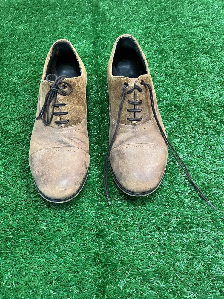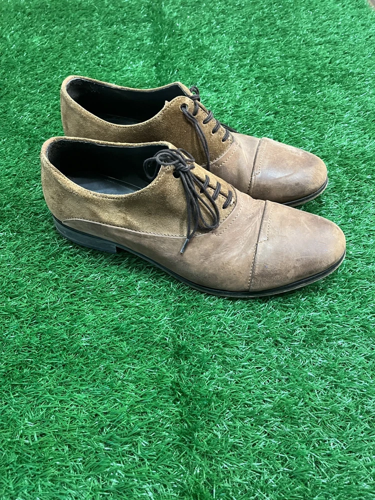 DIESEL BROWN COLOR BLOCK WHITE BROWN PERFORATED LEATHER TIP OXFORDS SHOES 43