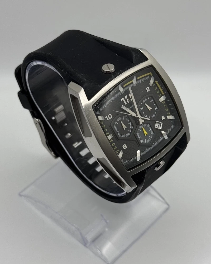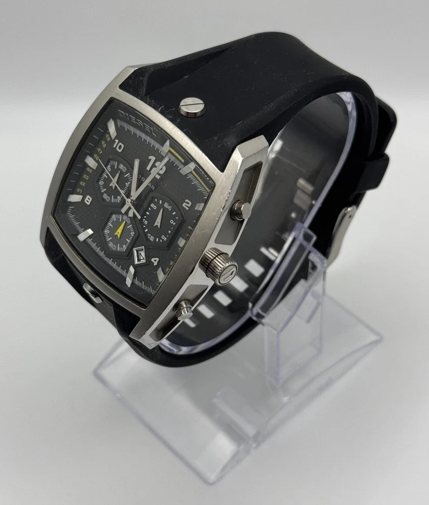 Case Material: Stainless Steel Seller Warranty: No With Papers: No Department: Men Band Material: Rubber Brand: Diesel Movement: Quartz Band Color: Black Style: Casual, Classic, Dress/Formal Dial Color: Black Dial Pattern: Honeycomb Customized: No Display: Analog Case Color: Silver With Original Box/Packaging: No Bezel Color: Silver Band/Strap: Two-Piece Strap With Manual/Booklet: No Type: Wristwatch Handmade: No Seller Notes: “Items Are Used {Pre Owned} Unless Other Wise Stated In Description.Read For Full Details.” Model: Diesel Honeycomb Reference Number: DZ4165 With Service Records: No