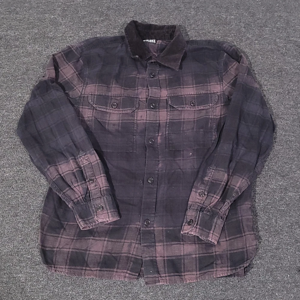 This is a Diesel Long Sleeve Flannel Shirt! This stylish shirt is excellent for outdoor activities. Condition: Preowned condition. There are light signs of wash and small stain under the left front pocket as shown in the pictures. Please refer to the photos for more details. Size: Men's Large Pit to Pit Measurement: 22 in Shirt Length: 28 in Color: Black Ships next business day. Same day shipping if purchased before 7am EST. 60 days, no hassle, free returns! If you have any questions please feel free to contact me. Thank you for your interest!