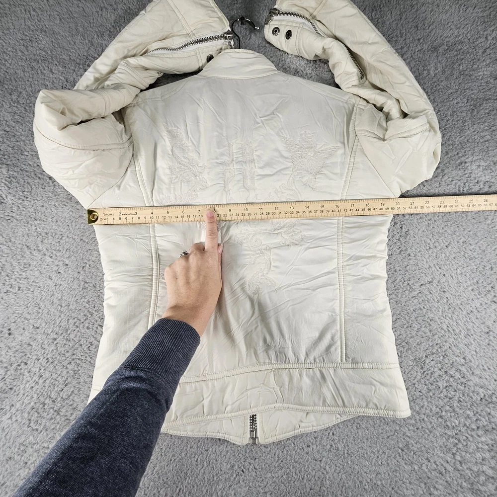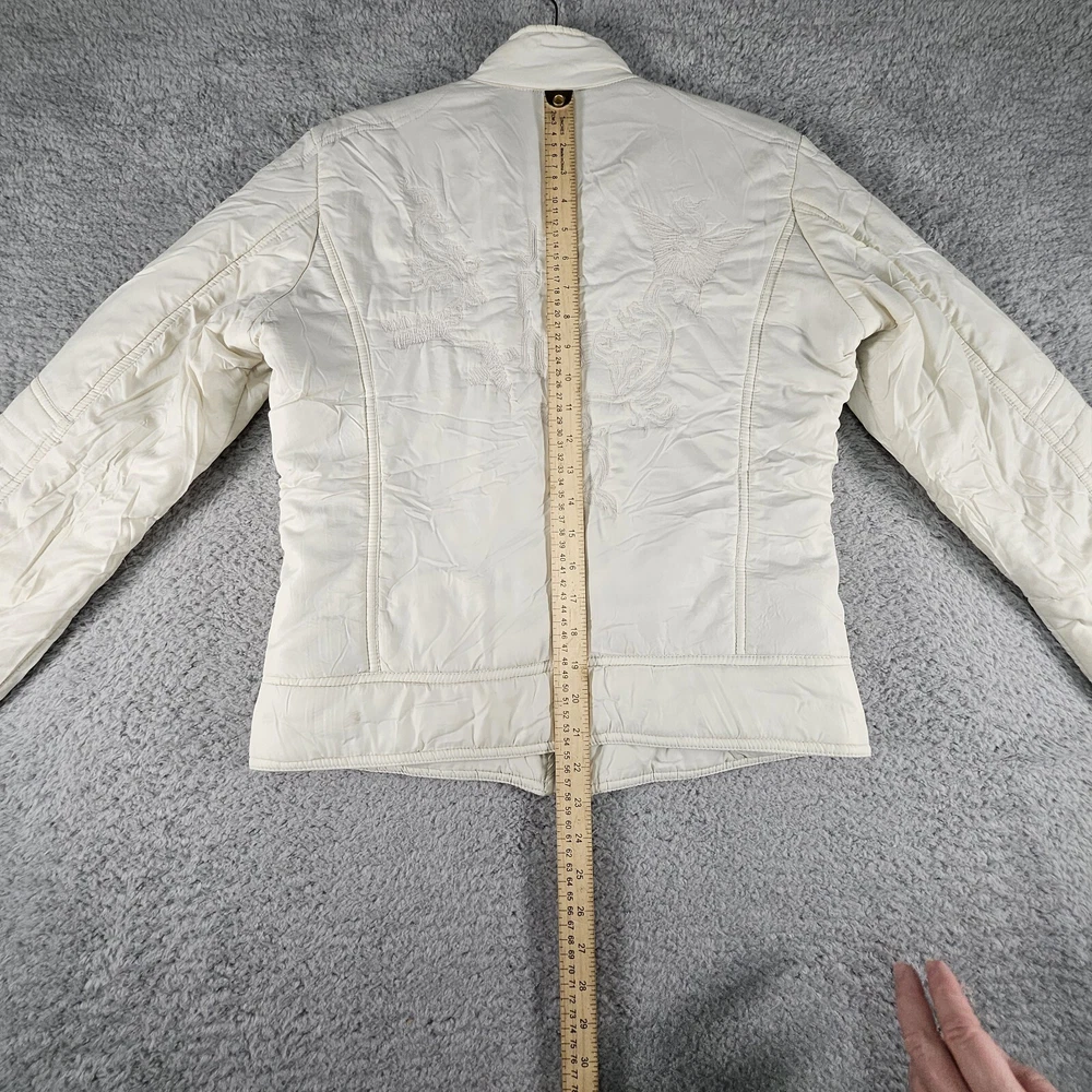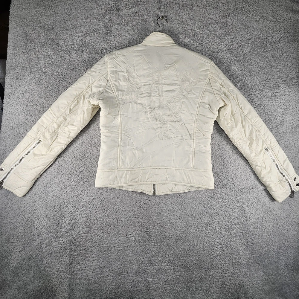 Diesel Rising Sun Moto Jacket Womens M White Pockets Mock Neck Embroidered