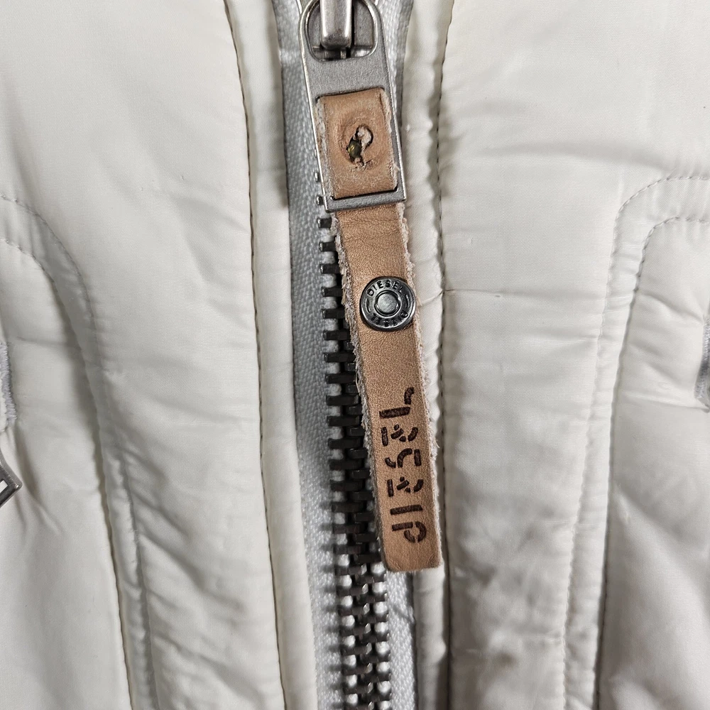 Diesel Rising Sun Moto Jacket Womens M White Pockets Mock Neck Embroidered Good pre-owned condition, see photos for details and measurements. 100% Money Back Guaranteed From a smoke free and pet free home Fast shipping in the USA Thank you for supporting my small business