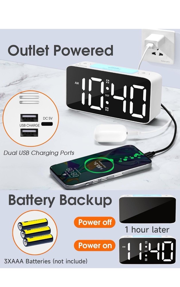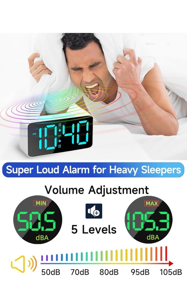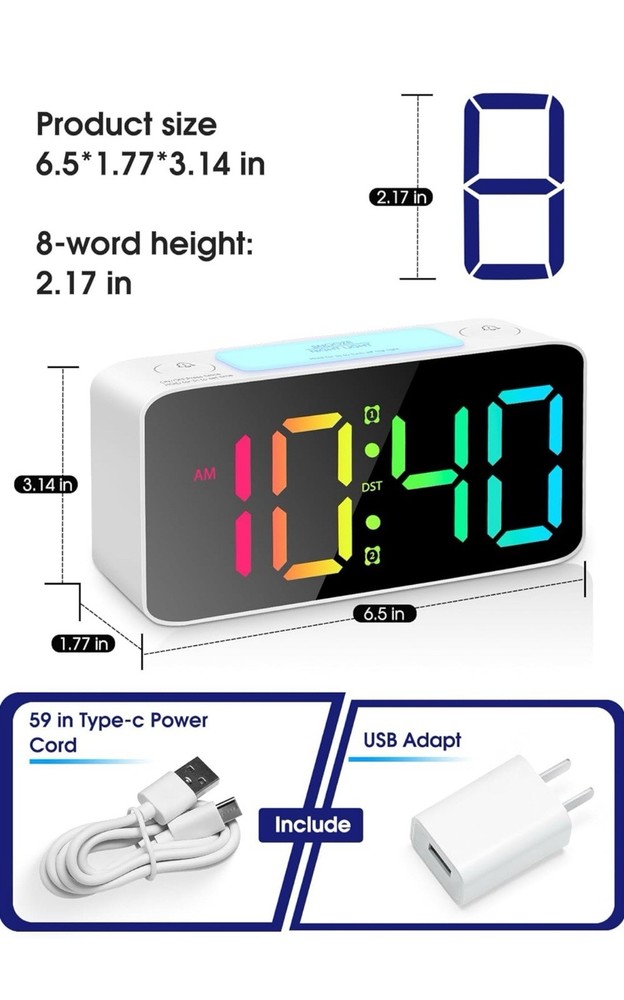 $ 30.07JALL 10.5'' Digital Large Alarm Clock with 8-in-1 RGB Colors, Date, Month,