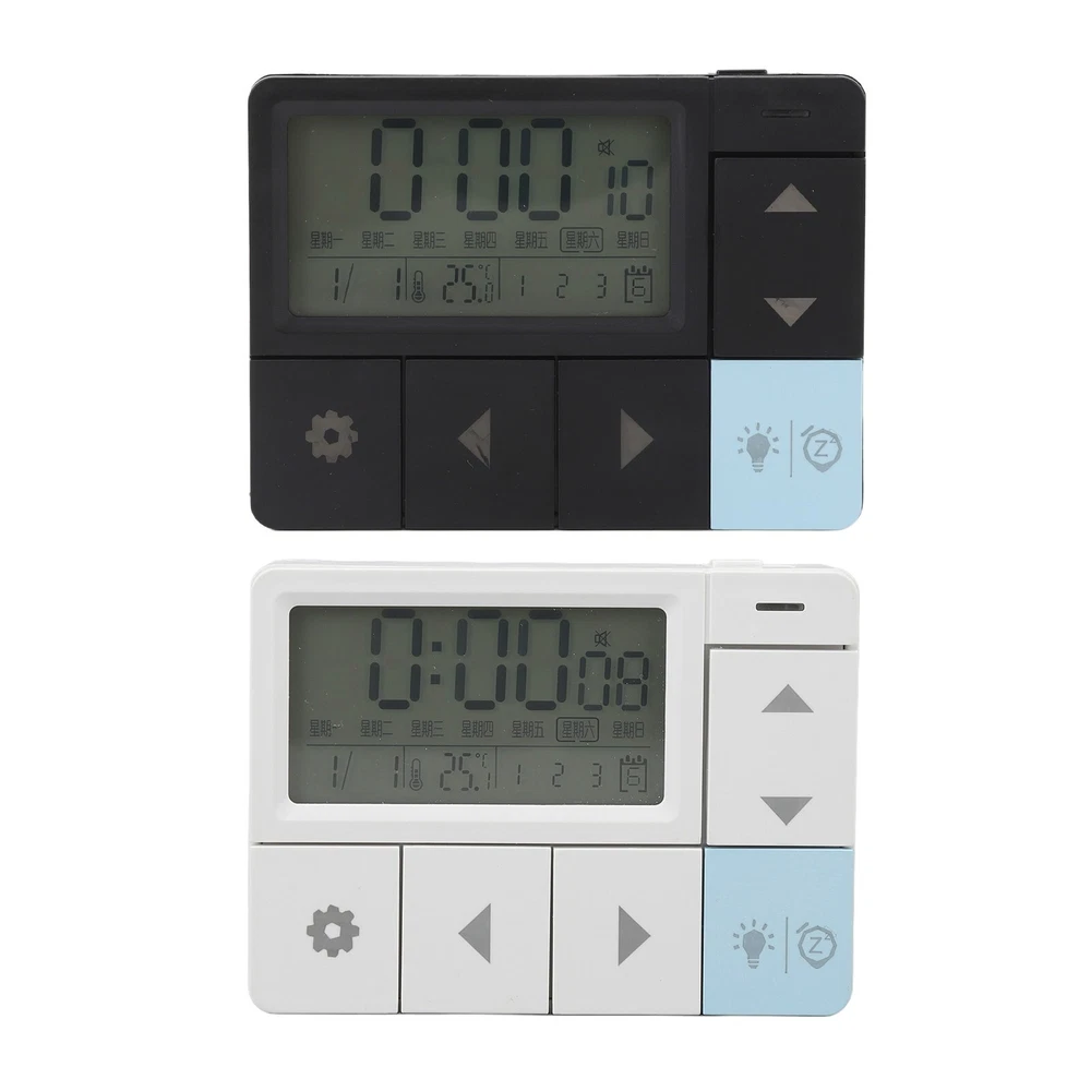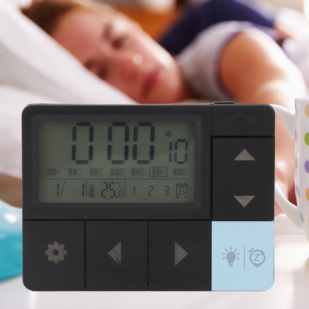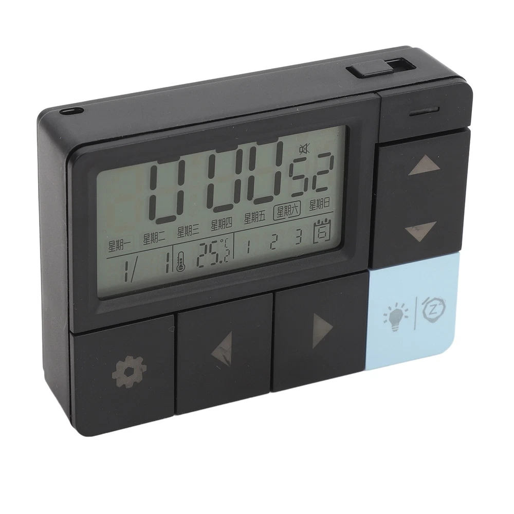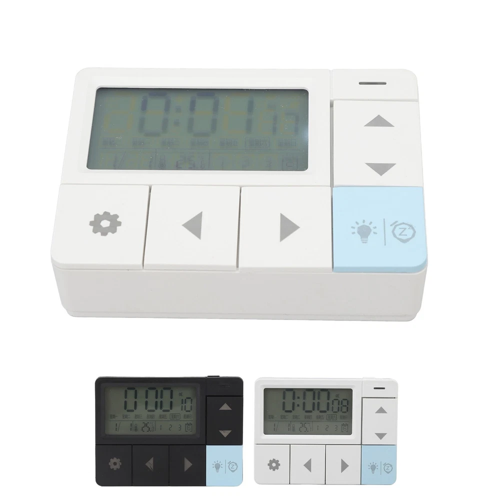 This clock is a total game-changer! It shows everything I need at a quick glance—time, date, even the temperature. Setting three different alarms is perfect for my schedule, and the snooze button is my morning lifesaver. Looks sleek and keeps me organized!