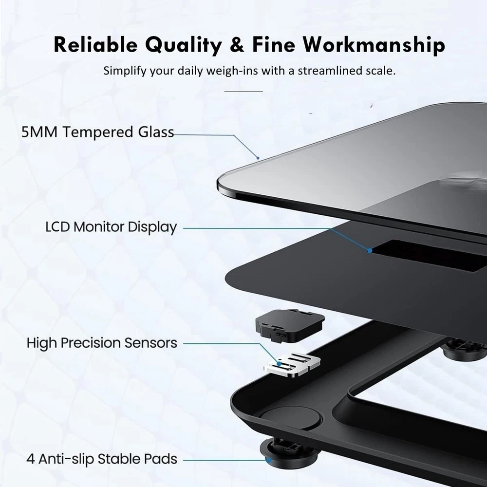 Digital Bathroom Scale For Body Weight Bath Scale For Accurate Weight Watching ✅ Digital Bathroom Scale for Body Weight, Bath Scale for Accurate Weight Watching with Large LCD Display, Most Accurate for The Elderly Safe Home Use, 330 lbs Product Description: The Digital Bathroom Scale is designed for easy, accurate weight measurement at home, making it ideal for elderly users and anyone looking to monitor their health. Featuring a large, easy-to-read LCD display, this scale provides clear weight readings up to 330 lbs. Its sleek, modern design fits seamlessly into any bathroom while offering reliability and precision with every use. This scale is built to last, offering a safe and user-friendly experience for the whole family. Features: High Capacity: Supports up to 330 lbs, ensuring accurate weight readings for a wide range of users. Large LCD Display: The extra-large, backlit LCD display makes it easy to read measurements, even for individuals with visual impairments or in low light settings. User-Friendly: Designed for simplicity, with a large platform and easy-to-understand display, making it a great option for seniors and those new to digital scales. Slip-Resistant Surface: Features a textured, anti-slip surface to ensure safety and stability when stepping onto the scale, reducing the risk of accidents. Precise Measurements: Equipped with advanced sensors for precise readings, providing accurate weight tracking for improved health management. Sleek, Modern Design: The stylish and minimalistic design complements any bathroom décor, while its slim profile allows for easy storage. Easy to Use: Simply step on the scale to turn it on, and it will automatically calibrate and show your weight, eliminating the need for buttons or manual adjustments. Durable and Long-Lasting: Made with high-quality materials to withstand everyday use, ensuring consistent and reliable performance over time. Display Type LCD Color Cool Black Batteries 2 AAA batteries required. (included) Package Dimensions 12.56 x 10.51 x 1.81 inches; 2.54 Pounds Shipping Fast shipping is very important for us. Our standard USA shipping service is FREE. Your order will be shipped within 1-2 business days upon full payment received. Your order will be delivered within 1-3 business days after the handling time. We only ship to the confirmed address. We reserve the right to cancel any order for any reason at any time. We are not responsible for undeliverable addresses. Returns and payment We offer a 30 days return policy from checkout winning date. FeedBack Your feedback very important to us, after you get your package and you are satisfied with our service please leave us positive feedback If you have any problem with your order / any questions please before leave any type of feedback For any questions, using eBay contact system Please visit our eBay store to check out other items for sale! Thank you for shopping at our store.