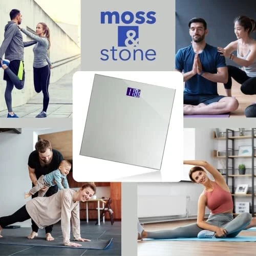 A clear step towards a healthy lifestyleStaying fit and healthy is a numbers game—that's why this professional scale for body weight uses four high precision sensors to instantly deliver trustworthy results with a 0.2 lb accuracy resolution. Reading your results is simple thanks to the sizeable, sharp LCD display and seamless unit conversion with a single button.Built for precision and performanceThe ultra chic tempered glass platform is not only durable but also has an auto on/off feature for superior convenience and maximum battery life. Low battery and overload indication deliver vital safeguards during use.Specification Weight Capacity: 400 lb (180 kg) Graduation: 0.1kg/0.2lb Units: Kg / Lb Dimensions:12"x12"x0.7" Platform: 6mm tempered glass Auto-Multifunction: Low battery/ Overload indication; Auto on/Off/ Zero LCD Display-3.25" Note: 1. For best accuracy, please lay the digital bathroom scale on hard and flat surface, and stand on the central area. Avoid carpet or soft surface. 2. To avoid inaccurate weight results, please re-calibrate the scale after physically moving or shifting it or when replacing the batteries. 3. To calibrate, apply weight on the scale, then step off and wait 10-15 seconds for the LCD screen to display "0.0". Then, step back on the scale to weigh with accurate results. 4. Body weight naturally fluctuates throughout the day. People are lighter when they wake up, heavier in the middle of the day, and lighten again toward the end of the day. 5. This body weight scale was designed for measuring weights of at least 11 lb. For lighter objects, we suggest an Moss and Stone's Kitchen Scale. Batteries Not Included. High Accuracy Digital Scale: The digital scale bathroom has four highly precise sensors that provide accurate and stable readings. Measure range from 11-400lb, 5-180kg. Graduation increments of 0.2lb /0.1kg, runs on 2 aaa batteries (not included) Large LCD Display & Easy To Read: Our weighing scale comes with a backlit 3.25-inch LCD, a modern-style, smooth, sleek surface that’s dependable and easy to clean. Large numbers and a bright backlit display are easy to read; it's just a perfect weight scale! East To Use: Our digital bathroom scale is immediate readings as soon as you step on the body scale. It looks great and easily fits anywhere in your shower, bedroom, or office; it must be part of your bathroom accessories! Multifunction Digital Weight Scale: The bathroom scale is auto-power-off, auto-zero, temperature indication, auto-calibration, low battery, and overload indication; it measures lb, kg, and st. Customer Support: scales, digital weight and body fat are covered under our 1-year warranty for our bathroom scales!
