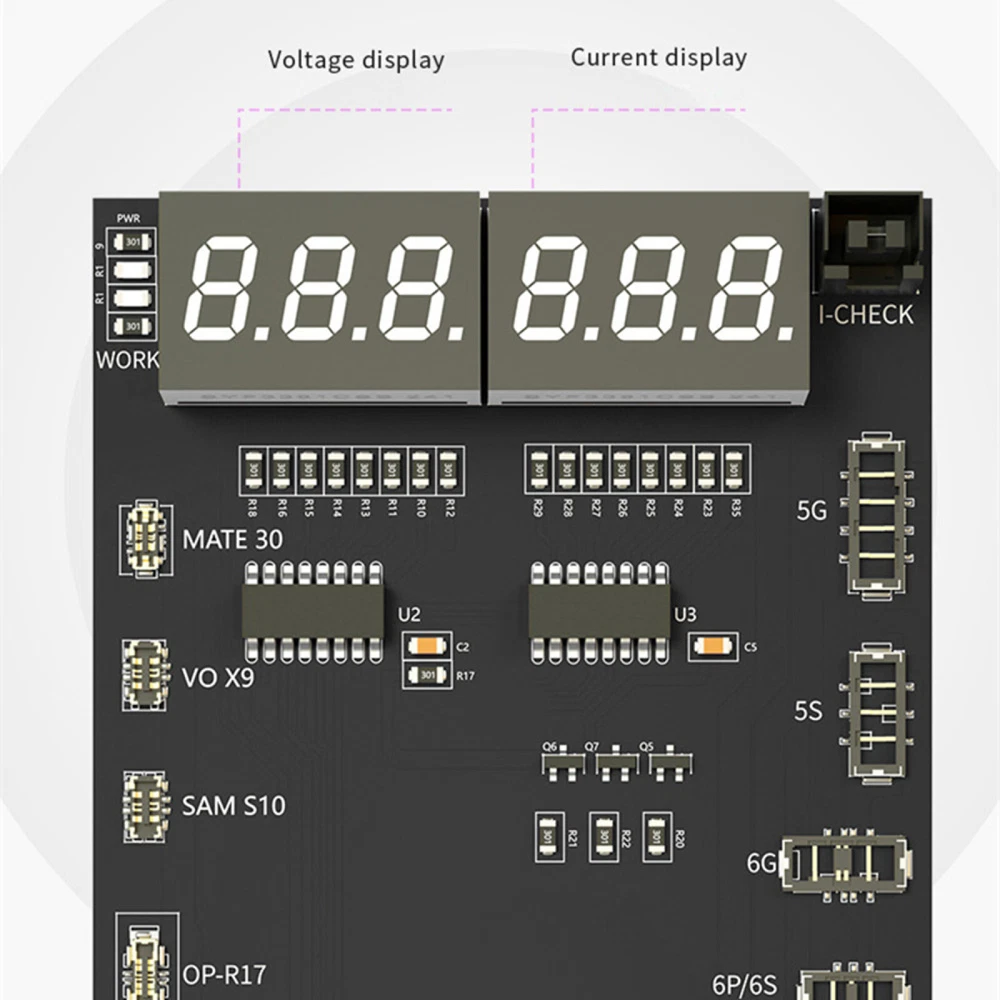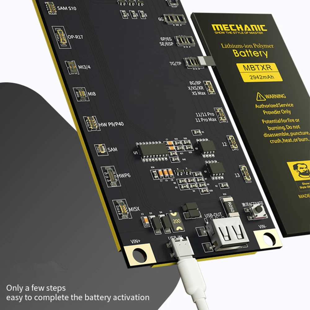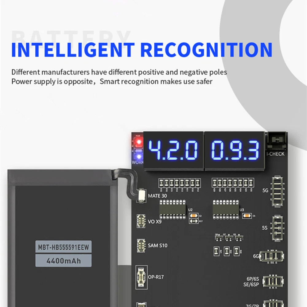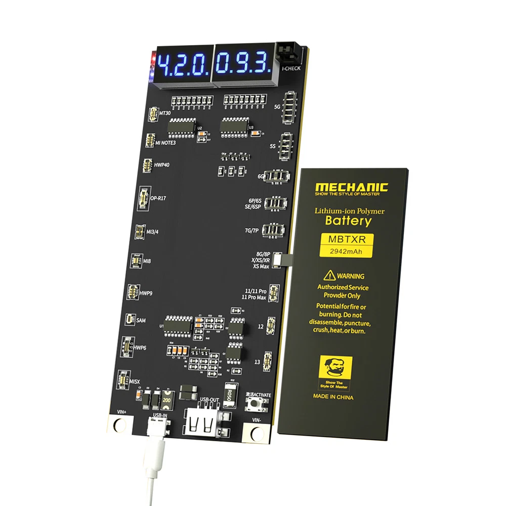 NEW-00023 Digital Battery Activation Detection Board For iPhone 5 6 7 8 X XS XR 11 12 13 PRODUCT DESCRIPTION Features: 1. Battery One-button activation. 2. Current/voltage real-time monitoring. 3. Can be externally connected pointer table interface. 4. Intelligent recognition battery. 5. Charging/output multiple interfaces. 6. 4.2v regulated output. 7. Latest support for iPhone 13 series. 8. With Type-C/USB/Alligator clip three interfaces, use according to demand Specifications: Name: Battery activation detection board Model: BA19 Size: 140*60*10mm Voltage: 4.2V-4.5V Screen Display: LED digital display Support Model: for 5G/5S/6/6P/7/7P/8/8P/X/XS/XS Max/XR/11/11 Pro 11Pro Max/12/12mini/12 Pro/12 Pro Max/13/13mini/13 Pro/13 Pro Max/for Android models up to 400+ Package include: 1X Battery Activation Detection Board Shipping Contact Us Our products have been sent to the US warehouse. All items will be shipped via WINIT CORPORATION. In 2-5 working days, you will receive your items. Thank you and have a nice day. If you have any question about us or items, please contact us, we will reply it as soon as possible. Shipping Our products have been sent to the US warehouse. All items will be shipped via WINIT CORPORATION. In 2-5 working days, you will receive your items. Thank you and have a nice day. Contact Us If you have any question about us or items, please contact us, we will reply it as soon as possible. PaymentShippingReturn policyAbout usContact us Copyright © - Tongtool All rights reserved | Design:Tongtool