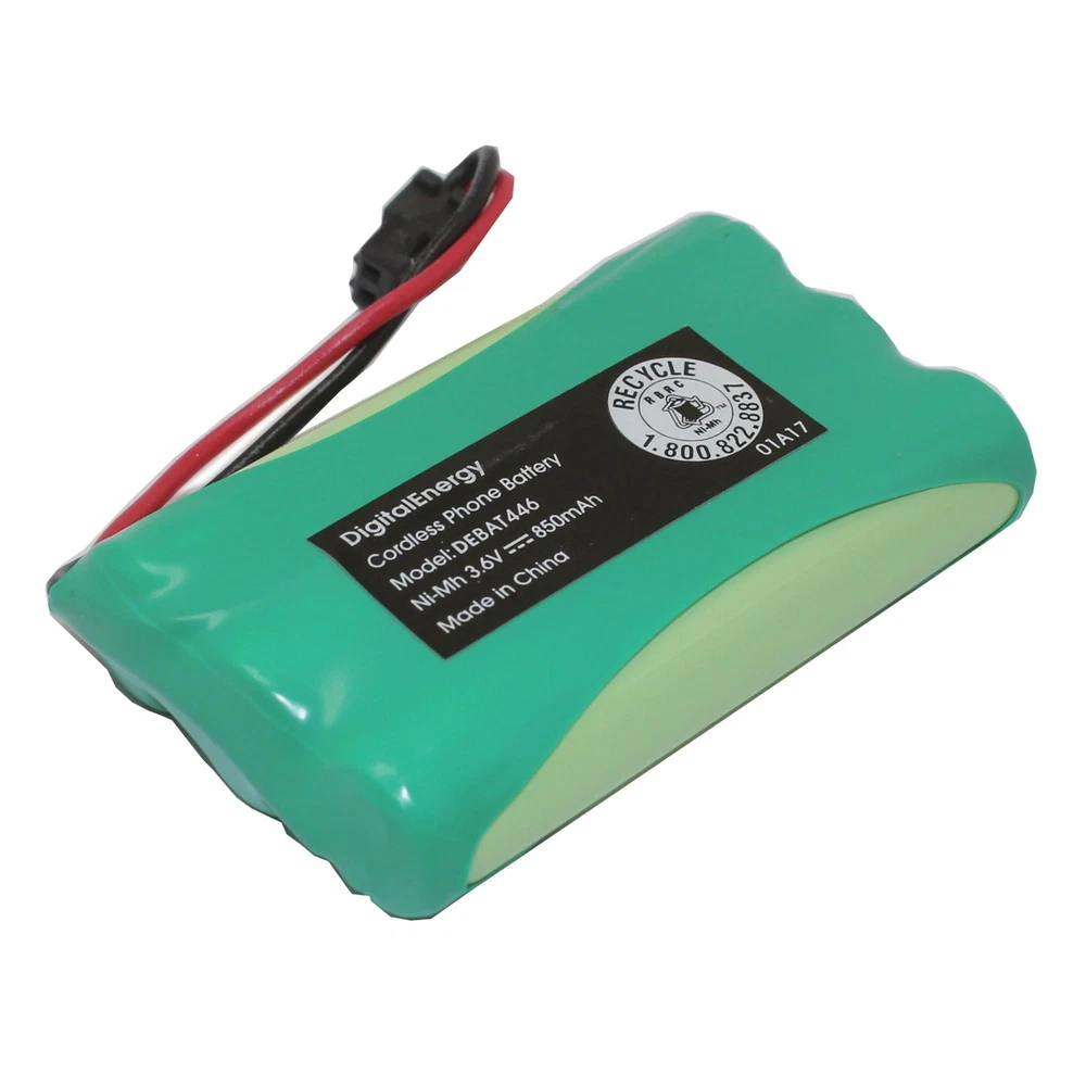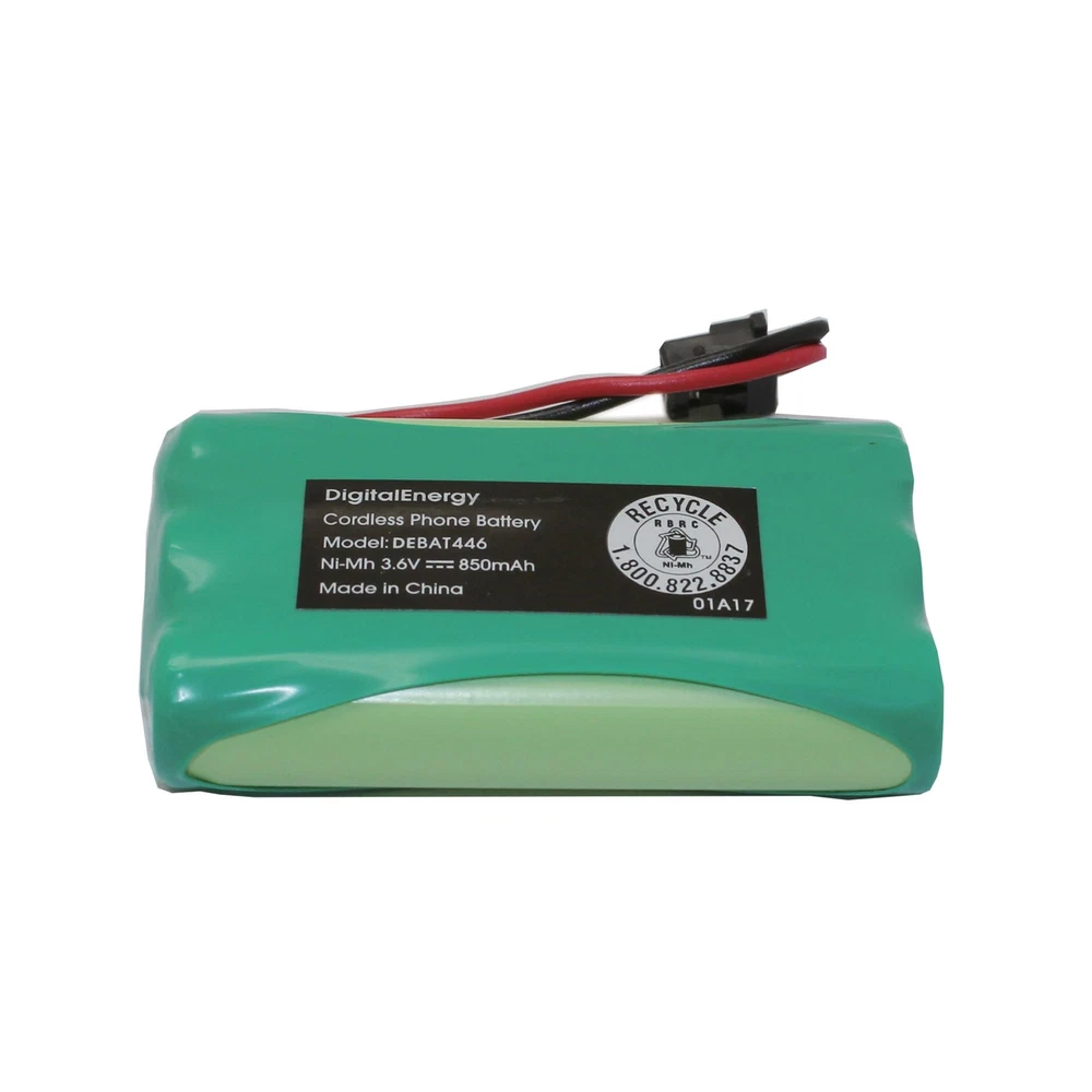 Digital Energy® Cordless Phone Battery, 3.6 Volts, 850 mAh Capacity, DEBAT446 This rechargeable battery is a great way to make sure your cordless phone is powered up and ready to go. The mercury-free chemistry offers additional peace of mind. Nickel-metal hydride (NiMH) chemistry offers high performance and can be recharged for use over and over again. Compatible with select cordless phones. Mercury free construction offers peace of mind. Backed by the manufacturer's 1-year limited warranty. Features This rechargeable battery is a great way to make sure your cordless phone is powered up and ready to go. The mercury-free chemistry offers additional peace of mind. Nickel-metal hydride (NiMH) chemistry offers high performance and can be recharged for use over and over again. Compatible with select cordless phones. Mercury free construction offers peace of mind. Backed by the manufacturer's 1-year limited warranty. Fast and Free Shipping You're already purchasing the item. Why pay additional for shipping, especially slow shipping? We get your order shipped out within 1-business day and delivered to your doorstep as quickly as possible. Competitive Pricing With our dynamic pricing model, our prices are always competitive. Our prices are some of the lowest that you will find on the internet. Rest assured that you're getting a good deal when purchasing with us. 30-day Money Back Guarantee We are committed to making sure that you leave this transaction satisfied. If you're unhappy with the product for any reason, you may return it back for your money-back or a replacement within 30 days. No questions asked!
