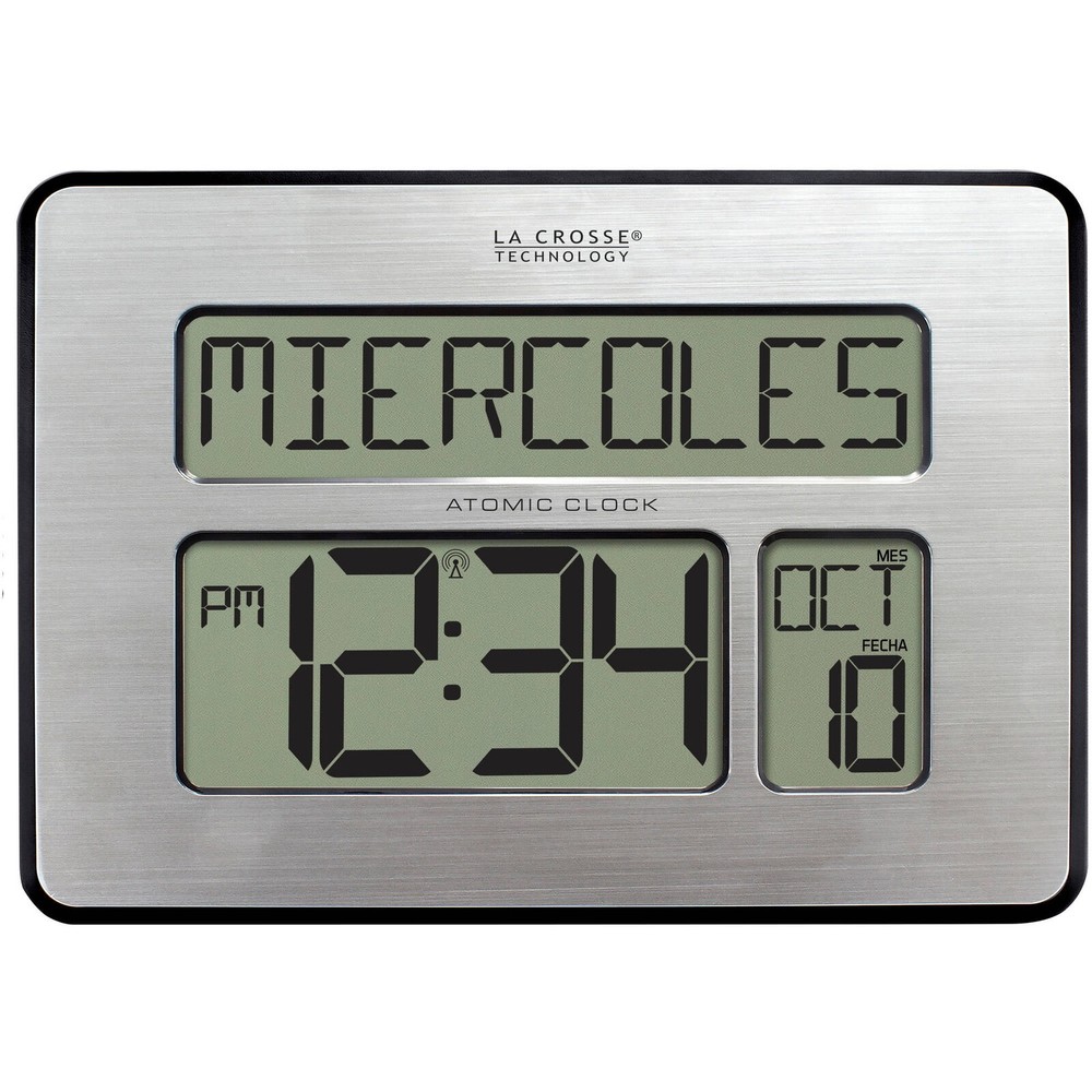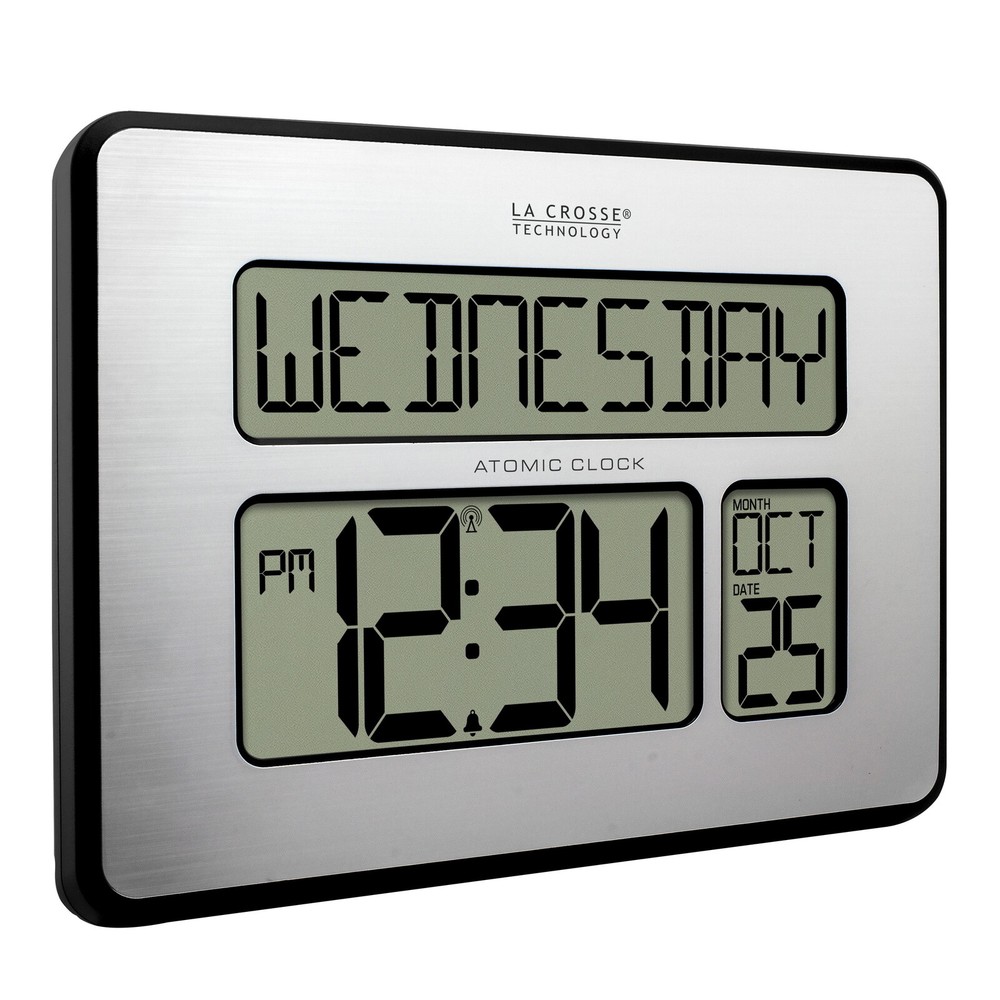 Stay on track of the time with the La Crosse Technology 513-1419-INT Full Calendar Atomic Clock (with Extra Large Digits).The numbers are nearly 2.5" tall, which makes it easy to read. This digital wall clock shows the time, the day of the week and the date. It is self-setting for accuracy. Made of durable plastic, it has a lightweight design. The La Crosse technology clock also boasts a changeable calendar view. This digital wall clock can be programmed to one of the seven US time zone settings. The low-power indicator lets you know when the batteries need changing. Keep the date and time handy with this clock. Extra-Large, easy to read digits to assist those suffering from memory loss and/or labor with abbreviated words Time digits measure close to 2.5" tall Day of the week is 1" tall Atomic self-setting time and date (manual set option) Automatic daylight saving time reset (optional ON/OFF) 12 hr. or 24 hr. time mode Adjustable display mode - Full Weekday; Weekday & Date - Date; Seconds; Indoor temperature (F/C) Keeps your time accurately set according to one of 7 US time zone settings Low power indicator icon lets you know when batteries will need changing Alarm with 10 minute snooze Wall hang or Table Standing Requires 2 AA batteries (sold separately) Lockable Bow Case 5 Archery Storage Compact Hard Protective For Compound Bows US 44.41 USD Free shipping 56-inch Retractable Fishing Net W/ Telescopic Pole Durable Landing Net Outdoor 39.78 USD Free shipping Green Tea Extract Vegetarian Capsules 500 mg, 60 Count 7.71 USD Free shipping Saucer Chair Folding Cozy Chair Accent Moon Chair for Bedroom Living Room Black 40.83 USD Free shipping S-365/N743 16X6.50-8 B Lawn & Garden Tire Heavy duty 1 PACK 38.44 USD Free shipping NEW Galvanized Steel Bushel Utility Basket Reusable Basket Tub 1 Bushel (35 L) 45.62 USD Free shipping Home Workstation Computer Desk w/ 3 Storage Shelves Writing Laptop Study Table 50.9 USD Free shipping NEW Ready To Eat Pickled Sausage 32 oz Jar Bold Spicy Snack Perfect For Sharing 15.98 USD Free shipping NEW 8-Piece Anchor Kit 15-inch Auger Style w/ Rope For Tents Canopies Car Ports 36.19 USD Free shipping Electric Fireplace Heater 17" Adjustable Brightness Heating Overheating Safe US 168.92 USD Free shipping 2 Pack Wheeled Laundry Hamper Flip Top Lid Durable Airflow Easy Transport New 39.48 USD Free shipping 15 Piece Kitchen Knife Set Triple Rivet Block Natural Wood Stainless Steel New 48.23 USD Free shipping