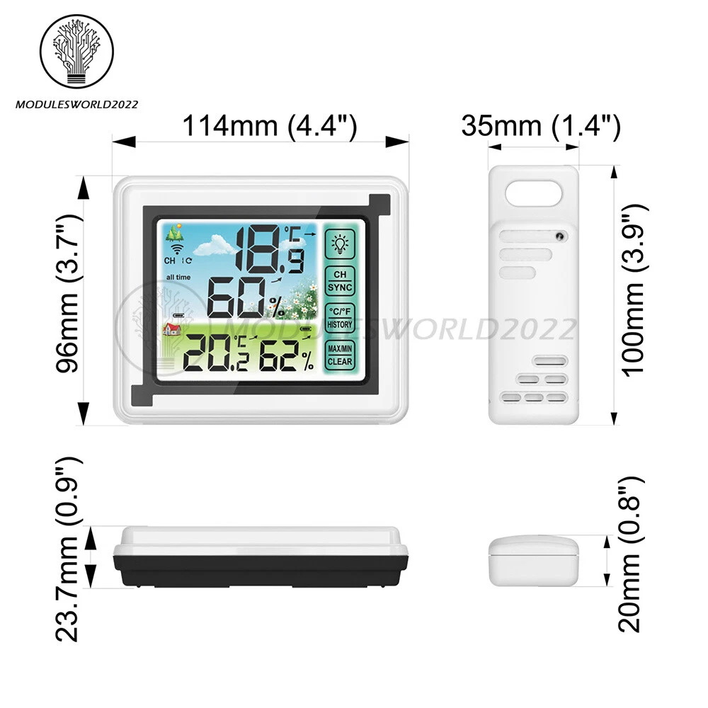 Store Categories Store Categories Other Product View Details Product function: 1. Measuring indoor and outdoor temperature and humidity, Celsius and Fahrenheit conversion, maximum and minimum humidity memory function, can view historical temperature and humidity data 2. At most 3 outdoor units can be connected (one outdoor unit is equipped for conventional packaging) 3. Two high magnetic magnets on the back shell of the host can be adsorbed on metal objects 4. The back of the host is equipped with a bracket, which can stand in a horizontal position 5. High sensitivity touch key control, easy to operate 6. Comfort indication, temperature and humidity trend indication 7. HTN large screen HD color LCD display without viewing angle 8. With backlight, the backlight will be automatically turned off after 10 seconds without operation 9. Outdoor unit can be hung by hanging hole or stand on horizontal plane Purchase description: One indoor unit of this product can be equipped with three outdoor transmitters at most. The conventional packaging has two kinds of packaging, one for one and one for three. You can choose the corresponding packaging configuration to place an order according to your needs. Thank you!!! Product parameters: Indoor temperature range: - 4 ° F - 158 ° F (- 20 ° C - 70 ° C) Outdoor temperature range: - 40 ° F - 158 ° F (- 40 ° C-70 ° C) Humidity range: 20% - 95% Comfort display: dry, comfortable and wet Temperature display unit: ° C/° F Optional (default is ° C) Temperature resolution: 0.1 ° C/° F Humidity resolution: 1% Refresh rate: 10 seconds. Error: temperature plus or minus 1 ℃ humidity plus or minus 5% Wireless reception range: 60m/197ft RF radio frequency: 433 MHz Power supply: No. 7 battery (Battery not include) Packing list: host * 1, transmitter * 1, English manual * 1, explosion-proof screw set * 1, regular leather box * 1 Shipping Policy Payment Method Returns Policy Shipping Policy Payment Method Returns Policy Home Payment Shipping About us Contact us Copyright©2018 datacaciques Home Payment Shipping About us Contact us Store Categories Store Categories Other Product View Details Product function: 1. Measuring indoor and outdoor temperature and humidity, Celsius and Fahrenheit conversion, maximum and minimum humidity memory function, can view historical temperature and humidity data 2. At most 3 outdoor units can be connected (one outdoor unit is equipped for conventional packaging) 3. Two high magnetic magnets on the back shell of the host can be adsorbed on metal objects 4. The back of the host is equipped with a bracket, which can stand in a horizontal position 5. High sensitivity touch key control, easy to operate 6. Comfort indication, temperature and humidity trend indication 7. HTN large screen HD color LCD display without viewing angle 8. With backlight, the backlight will be automatically turned off after 10 seconds without operation 9. Outdoor unit can be hung by hanging hole or stand on horizontal plane Purchase description: One indoor unit of this product can be equipped with three outdoor transmitters at most. The conventional packaging has two kinds of packaging, one for one and one for three. You can choose the corresponding packaging configuration to place an order according to your needs. Thank you!!! Product parameters: Indoor temperature range: - 4 ° F - 158 ° F (- 20 ° C - 70 ° C) Outdoor temperature range: - 40 ° F - 158 ° F (- 40 ° C-70 ° C) Humidity range: 20% - 95% Comfort display: dry, comfortable and wet Temperature display unit: ° C/° F Optional (default is ° C) Temperature resolution: 0.1 ° C/° F Humidity resolution: 1% Refresh rate: 10 seconds. Error: temperature plus or minus 1 ℃ humidity plus or minus 5% Wireless reception range: 60m/197ft RF radio frequency: 433 MHz Power supply: No. 7 battery (Battery not include) Packing list: host * 1, transmitter * 1, English manual * 1, explosion-proof screw set * 1, regular leather box * 1 Shipping Policy Payment Method Returns Policy Shipping Policy We will arrange shipping for you within 24 Hours after payment cleared except the holidays. -We ship items to Worldwide. Thank you! -we will ship out the order in 1-2 business days after payment cleared .Since it is international shipping ,delivery time is about 15--28 business days to arrive to most countries. Payment Method We accept PayPal payment ONLY, and must be received within 5 days from the date of purchase. 2. It is easy and safe for you to pay by credit cards, debit cards, bank transfers and PayPal account balances. 3.Buyers are responsible for import duties,custom fees and taxes, if any, please check your country. Returns Policy 1.We believe our items are so outstanding. We are convinced you will be happy with your Purchase. 2. If you do not satisfy with our items. Please simply return to us within 30 Days in original condition. Just pay for the returned postage. Then we can issue full refund or resend the item to you after the returned item arrived at our warehouse. 3. Please include your eBay ID and item number with any email requests.