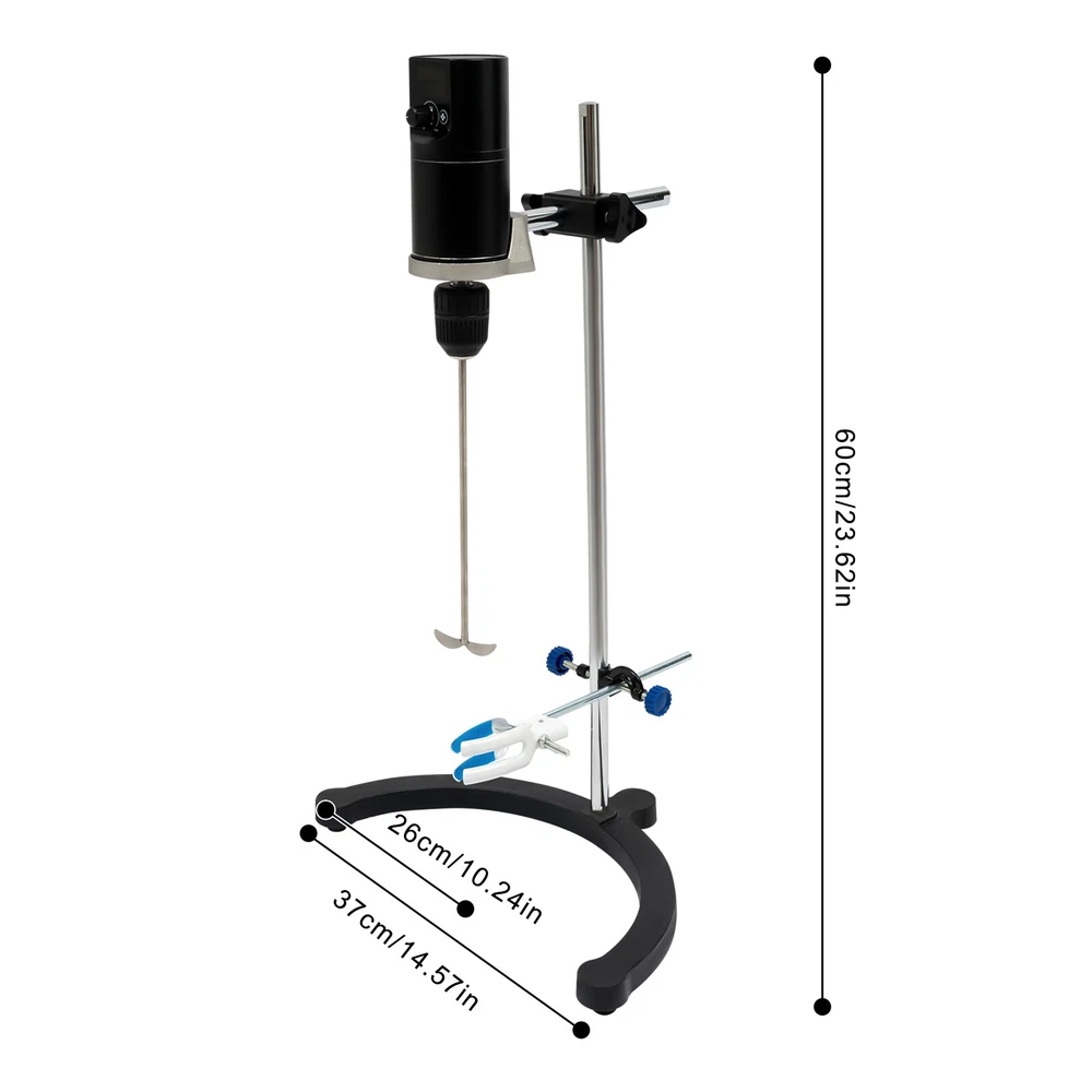 Description A professional and powerful stirrer is ideal for the laboratory. We recommend this electric overhead stirrer because of its high-quality materials and powerful DC permanent magnet motor. With a mixing capacity of 10.57 gal and a high-speed range of 100-2000rpm, this stirrer is ideal for large-scale, high-intensity experiments. In addition, the product's exquisite design and simple shape blend with the laboratory environment, showing an excellent combination of professionalism and aesthetics. All in all, this stirrer is one of the indispensable tools in the laboratory, and its high quality, high efficiency, and exquisite craftsmanship will bring great convenience to your experimental work. Key Features Durable and Sturdy : Iron, steel, aluminum, 304 stainless steel, copper, die-casting, chrome-plating, and painting processes make this stirrer resistant to high temperature, abrasion, and corrosion, which can ensure long-term use. Superior Mixing Ability : The DC permanent magnetic motor (output power: 100W) is powerful and low noise, with a speed of up to 2,000 rpm, and can mix liquids with viscosities up to 30,000 map.s, allowing excellent mixing ability and greatly improving the stirring efficiency. User-friendly : The digital tube screen ensures clear readings. In addition, this product comes with a 3.94 ft power cord, which reduces usage limitations and improves electrical safety. Adjustable Design : The height of the motor can be adjusted between 11.81-23.62in, and the beaker clamp also can be adjusted for your convenience, making your stirring work more flexible. In addition, you can also adjust the speed and setup time by knob according to different liquid mixing needs, providing you with more convenience. Safety Protection : In the event of an overload, the stirrer automatically stops operation to ensure your safe use. The precision closed housing also prevents liquids from entering the machine and damaging the circuit. Excellent Performance : With a maximum mixing volume of 10.57 gal, this product can easily meet your mixing needs. It is very suitable for most kinds of laboratory experiments, such as chemical reactions and biological experiments. Easy to Operate : The intelligent chip of the overhead stirrer can effectively achieve accurate control. The sensitive buttons and knob allow you to easily adjust the speed (100-2000rpm) and time (0-999min). We also provide a manual for your reference. Easy Clean-up : With its simple construction and smooth surface, you can simply wipe off surface dust with a damp rag. Good Customer Service : We stand behind all our guests and look forward to assisting you with your purchase. It is our pleasure to answer your confusion and questions. The end of the story between us is not "we sell and you buy". Details Horseshoe Base : The base with non-slip pads improves stability during operation. Beaker Clamp : The beaker clamp with rubber pads can fix the beaker firmly and avoid slipping. Motor Fixing Clip: It fixes the motor and prevents it from rotating during mixing. Stirring Blade : Made of 304 stainless steel, it is suitable for many kinds of liquids and not easy to corrode. Standard Stirring Rod Connector : It allows you to easily replace different stirring r ods (0.03-0.39in). Application It is suitable for stirring and mixing in the fields of scientific research, industry, agriculture, the medical sector, research institutes, laboratories of major universities and colleges, and home yeast fermentation. Specifications Color: Black, Silver Model: ES-40M Material: Iron, Steel, Aluminium, 304 Stainless Steel, Rubber, Copper Process: Die-casting, Chrome-plating, Painting Style: Modern Assembly Required: Yes Mounting Type: Free Standing, Tabletop Power Source: Corded Electric Plug Type: US Standard Display Type: Digital Tube Screen Motor Type: DC Permanent Magnet Motor Time Range: 0-999min Maximum Mixing Volume: 40L/10.57gal Recommended Mixing Volume: 10L/2.64gal Motor Input Power: 120W Motor Output Power: 100W Voltage: 100-240V Frequency: 50/60HZ Speed Range: 100-2000rpm Speed Display Resolution: ±10rpm Speed Increase/Decrease: 10rpm Maximum Torque: 40N·cm Maximum Viscosity: 30000mPa.s Drill Clamping Diameter Range: 0.8-10mm/0.03-0.39in Protection Level: IP42 Permissible Ambient Temperature: 5-40°C/41-104°F Permissible Ambient Humidity: 80% Moter Adjustment Range: 30-60cm/11.81-23.62in Power Cord Length: 1.5m/4.92ft Overall Product Size(L*H): 37*60cm/14.57*23.62in Package Size: 45*34.5*16cm/17.72*13.58*6.3in Gross Weight: 5.5kg/12.13lbs Net Weight: 5.25kg/11.57lbs Package Included 1* Electric Overhead Stirrer 1* Adapter 1* English Manual Other Accessories for Assembly Notes Please note that this product does not include a beaker. Please connect the power supply when using it. Please turn off the switch when moving or cleaning the product. The product should be kept clean and dry, and solutions are strictly prohibited from entering the machine. When the power supply suddenly goes out during use, please check if there is any detachment of the power cord plug. If you find that the mixing is not concentric or unstable, please adjust the support clamp to make the mixing rod concentric. When you find the stirrer is not stirring, check to see if the beaker is smooth and in the right position. Please allow the slight color difference caused by the shooting light and the 1-3 cm error due to manual measurement, and make sure you do not mind before ordering. Payment Delivery details Terms of sales About us Contact us Payment We accept ebay payment 。 Fees such as import duties, taxes are not included in the item price or shipping costs. These charges are the buyer's responsibility. Delivery details Shipping: 2-9 working days to: USA Terms of sales We maintain high standards of excellence and strive for hundred percent customer satisfaction. Feedback is very important to us. We hope that you contact us immediately before you give neutral or ne