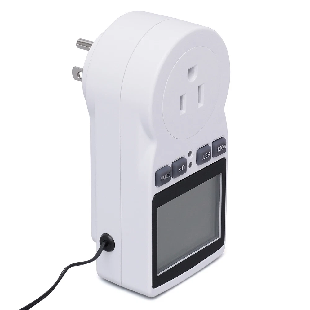 Specification Material: ABS Color: White Rated Voltage: AC100-250v, 50/60Hz Rated Load: 15A 1800W Temperature Range: -40-120oC Temperature Error: ±1% Temperature Display Resolution: 0.1oC Timing Error: Max. 10 Minutes Package Size: 14.5*8.3*6.6cm/5.71*3.27*2.6inch Product Size: 7.8*6*14cm/3.07*2.36*5.51inch Gross Weight: 0.2kg/0.441lbs Net Weight: 0.15kg/0.331lbs Package Included 1*Outlet Plug Temperature Controller 1*English Manual Digital Plug in Thermostat Timer Switch Socket Temperature Controller Switch USA Description Description This Outlet Plug Temperature Controller Is Made of High-quality Flame Retardant Abs Material, Giving You More Peace of Mind. the Large Ultra-clear Led Screen Allows You to Feel the Temperature Change More Intuitively. It Has Various Functions Such As Detecting Temperature, Setting Temperature, and Timing, Which Is Ideal for Intelligent Temperature Control in Places Such As Carbon Crystal Heating, Aquaculture, Greenhouse Sheds, and Home Living. Key Features Necessary Supplies : This Plug Temperature Controller Can Detect Temperature, Set Temperature, and Have Other Functions. It Is Necessary for Intelligent Temperature Control in Places Such As Carbon Crystal Heating, Aquaculture, Greenhouse, and Home Living. One Screen with Three Displays : It Has a Screen with Three Displays, Showing the Real-time Measured Temperature, the Start Temperature, and the Stop Temperature. the Numbers Are Visible, so You Can Read Them Easily. Temperature Correction Function : When You Long-press the Mode Button to Power on, It Will Enter the Real-time Temperature Correction After 2 Seconds, Which Is Very Convenient and Worry-free. Screen Lock Protection : When You Press the Mode Key and the Setting Key at the Same Time for More than 3 Seconds, It Will Be Able to Screen Lock. This Way, Even If You Accidentally Press Other Keys, There Will Be No Trouble. Memory Function : When the Power Is off, It Will Automatically save All the Current Settings to Avoid the Trouble of Data Loss Due to some Accidental Power Loss. Easy to Use : It Comes with a Large Led Display and Four Buttons. and We Are Equipped with Detailed Instructions for Use, so You Can Easily Operate. Great Durability : It Is Made of High-quality Flame Retardant Abs Material, so It Is Not Only Good Quality but Also More Durable. Compact and Lightweight : the 5.51*3.07*2.36inch in Size and 0.331lbs in Weight Can Be Easily Carried and Used by You. Details Led Display: It Uses a Large Led Display, Which Can Display Data More Clearly and Minimize Damage to Your Eyes. Flame-retardant Shell: It Uses a Flame-retardant Abs Shell, so Even If the Temperature Is High Due to Long-term Use, It Will Not Cause Combustion. Two Temperature Displays : It Supports Both Celsius and Fahrenheit Displays. You Can Choose According to Your Needs. Application It Is Suitable for Intelligent Temperature Control in Places Such As Carbon Crystal Heating, Aquaculture, Greenhouse Sheds, and Home Living. Specification Material: Abs Color: White Rated Voltage: Ac100-250v, 50/60hz Rated Load: 15a 1800w Temperature Range: -40-120oc Temperature Error: ±1% Temperature Display Resolution: 0.1oc Timing Error: Max. 10 Minutes Package Size: 14.5*8.3*6.6cm/5.71*3.27*2.6inch Product Size: 7.8*6*14cm/3.07*2.36*5.51inch Gross Weight: 0.2kg/0.441lbs Net Weight: 0.15kg/0.331lbs Package Included 1*Outlet Plug Temperature Controller 1*English Manual Notes 1. Please Note That the Total Resistive Load of the Electrical Power Connected to This Product Must Not Exceed the Power, Otherwise the Product May Be Damaged. Serious Cases May Cause a Fire. 2. This Product Has No Waterproof Function, Only Used in Dry Indoor Conditions. 3. Do Not Let Children Touch It and Keep It Away from the Fire Source. Do Not Insert Foreign Objects Other than the Plug into the Jack. 4. Please Insert the Plug Completely into the Jack. 5. Do Not Disassemble the Product Without Permission. Please Call a Professional When You Need to Repair It. 6. Please Read the User Manual Carefully Before Use and Pay Special Attention to the Safety Precautions Included. 7. Please Allow a Slight Color Difference Due to Shooting Light, and 1-3cm Error Due to Manual Measurement, Please Make Sure You Don't Mind Before Ordering. Payment Delivery details Terms of sales About us Contact us Payment We accept ebay payment 。 Fees such as import duties, taxes are not included in the item price or shipping costs. These charges are the buyer's responsibility. Delivery details Shipping: 2-9 working days to: USA Terms of sales We maintain high standards of excellence and strive for hundred percent customer satisfaction. Feedback is very important to us. We hope that you contact us immediately before you give neutral or negative feedback, so that we can address your concerns. It is impossible to address issues if we do not know about them! About us Your satis faction is our ultimate goal. We work hard to earn your trust and future business. Our certified technicians have tested each item before shipping. The unit comes with 1 year limited warranty on all manufacturing defects. a) If you receive a defective item, you may return it or ask for a discount. Please contact us within 14 days after you receive the package. b) What you returned must be intact and in its original packaging as re? u. Customer is responsible for shipping costs of the returned item. c) We will cover the cost of shipping back t with the shipping rate indicated in the registration page. We will send you a new unit or refund the full payment you paid. Thank you. Contact us Business Hour Business Hour: Monday To Friday: 8:30 AM to 5:00 PM (Beijing China time) Due to time zones, our reply to your questions may not be immediately. But within above working time, we will reply your email within 24 hours. If it's non-workdays, please kindly be patient and wait till Monday. Please contact us with ebay message. Please feel free to contact us if you have any questions.