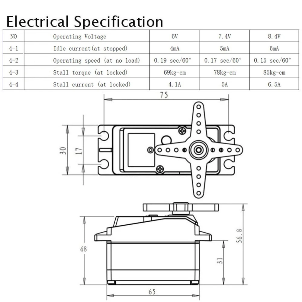 You may also like 20x Soft Golf Shoe Spikes Replacement Cleat Fast Twist Q-Lok For Footjoy Champ 12.99 USD For Insta360 X3 Camera Accessories Aluminum Alloy Protective Cage Housing Frame 58.99 USD 2Pcs Replacement Full Range Speaker for JBL Charge 3 4ohm 10W Bluetooth Speaker 17.99 USD Lot of 50Pack Rubber 1/32 RC Car Model Tires Diorama Display DIY New Black Tire 10.99 USD 3.99 USD Electric Start Drill Bit Engine Starter Adapter for String Trimmer Leaf Blower g 9.99 USD 36X Phone Camera Telephoto Lens Zoom Fisheye Wide Angle Lens For iPhone 25.99 USD SAFE & SECURE SHOPPING 100% SATISFACTION GUARANTEED FAST SHIPPING Digital Servo 80kg Metal Gear Servo High Torque Waterproof for 1/5 RC Car r Product Description Features: Extremely capable and high quality waterproof servo with 80Kg of torque suitable for 1/5 scale RC cars that require large servos. Also suitable for DIY projects like Robots. High performance digital standard servo. High precision Stainless Steel gears. CNC aluminium middle shell with o'ring sealed top and lower cases. Dual ball bearings. Important Note: This servo is 180° capable but needs the required signal to do it. When installed in a normal RC car it will typically do the normal 60° that the receiver commands so it's suitable to RC cars but also robot arms for example that require the 180° of actuation and that can provide the suitable signal (PWM 500~2500μsec). Specifications: Dead Band: 3μsec Operating Voltage: 6V~8.4Volts Operating Speed (6V): 0.19sec / 60° at no load Operating Speed (7.4V): 0.17sec / 60° at no load Operating Speed (8.4V): 0.15sec / 60° at no load Stall Torque (6V): 70kg/cm Stall Torque (7.4V): 80kg/cm Stall Torque (8.4V): 85kg/cm Operating Angle: 180° Motor Type: High speed motor Gear Type: Copper & Aluminum Working Frequency: 50-330Hz Size(excluded cable): 65*30*56.8mm Package includes: 1* 80KG Digital Servo 1* 18T Servo Arm About Us Payment Shipping Returns Contact Us About Us Welcome to our store! Our aim is to offer our clients items with high quality and fast delivery, also our price will be reasonable. We supply many products including video game, health & beauty, phone accessories, computers accessories, camera & camcorder,car accessories, games, toys & hobbies, jewelry, antique & craftwork. Excellent customer service and a reliable credit standing is our tenet. Payment We accept all verified payments from ebay. Orders will be shipped after receiving cleared payment. Payment due within 7 days after auction ends and for buy it now listings. Shipping We ship most of our orders within 24 hours, and may up to 48 hours. If you want faster shipping way. Please contact us before making payment. Sometimes due to problems with our transportation company system, your shipping information may be delayed to update. We recommend that you try again after 3-4 days. If you still haven't checked the shipping information, you can contact us by ebay message. Returns Always believe we can figure things out with communication, if it comes to return, the pacakge must be intact and the same as you receive. If you have any questions, please feel free to email our service specialists 24 Hours a Day, 7 Days a Week. We will reply you ASAP. Return/refund is accepted within 30 days after the buyer receives the item. NO exchange will be accepted after 30 days from the date when the item is received. Please contact us first before returning your product!!! Contact Us If you have any questions, our Customer Service staffs welcome you to email us. We strive to answer all questions and resolve any problems as quickly as possible. You can contact us 7*24, we will reply at the first time, and we will surely solve your problems. Note: 1.We try our best to reply to your emails as soon as possible, however, due to high volume of daily incoming emails and time zone difference, we may not be able to reply your emails immediately. Please allow 1 business days for us to response. If you do not receive any reply from us, please check your email ensuring your mailbox has not reached full size. 2.Due to some ISP SPAM filter settings, you may not be able to receive our replies; if you have problems receiving our emails, you may need to use a different email account to contact us. 3.Please give us the opportunity to resolve any problem. We understand the concerns and frustrations you might have, and will try our best to resolve the issues. Please email us before leaving any negative feedback or open any dispute on PayPal. 4.We care about our valued customers, and will always try to help you. So if you have any problems, please e-mail us immediately. Copyright © 2022 Tongtool 1 Lb Adapter Camping Propane Small Gas Tank Adapter Input Lindal Output Stove d 10.99 USD New DSLR Camera Strap Adjustable Shoulder Neck Strap For Nikon For Sony Camera 3.99 USD 3.99 USD 4Pcs Carbon Fiber Propeller Folding Prop Blade for FIMI X8 SE 2020 Drone N 20.99 USD 3.99 USD Spool Line+Cap+Spool Spring For Black & Decker Spare String Trimmer Strimmer N 10.99 USD Type-C/USB Battery Activation Detection Board Battery Charge For iPhone 5G-13 20.18 USD 1.4m Audio Spring Coiled Cable For ATH-M40x & ATH-M50X Head-mounted Headphone 13.99 USD 1:72 Scale WWI Germany Albatross Reconnaissance Aircraft Plane Alloy Model 26.99 USD 2x 18cm Satellite Extension Cable for Spektrum AR6100E AR6200 AR12120 Receiver a 3.99 USD 3.99 USD New Microphone Mic in Jack Flex Cable For SONY A7M3 ILCE-7M3 A7III Repair Part 16.88 USD 60Pcs 12 Sizes Watch Winding Stem Extender Watch Stem Extender Repair Part 16.99 USD 265Pcs Waterproof Watch O Ring Gasket Washer Set Repair Tool For Watchmakers 35.99 USD Aluminum Alloy Rear+Body Lens Cover Cap For Leica M39 L39 Screw Mount Camera B 7.99 USD 3.99 USD For DJI Mini 3 Pro RC Drone Gimbal Camera Lens Guard Cover Cap Protective Case 5.69 USD 3.99 USD For Garmin Varia/Edge 1040/1030 Mountain Bike Mount Stand Tail Light Bracket 10.79 USD Replacement Bump Feed Spool Head Double-Line Trimmer He