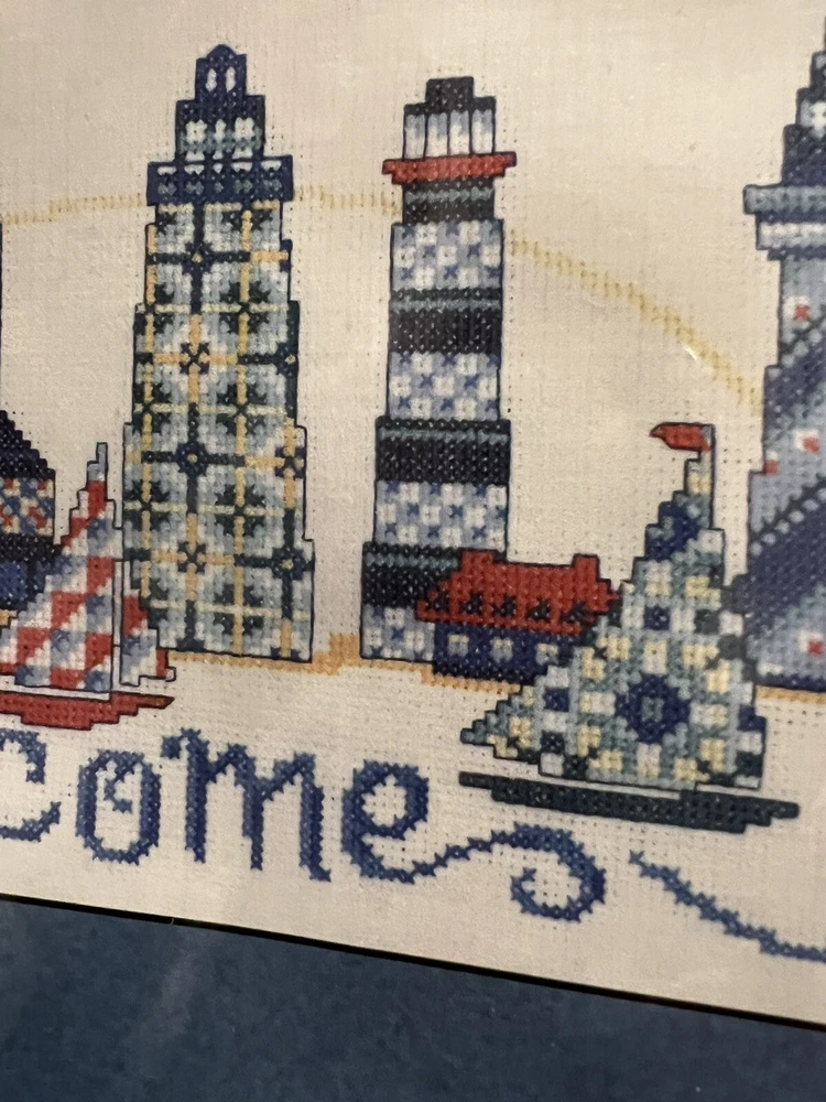 Add a beautiful touch to your home decor with this Dimensions Cross Stitch Kit. The kit features a framed picture of a lighthouse welcome sign, designed by Ursula Michael Beach. The cross stitch project is perfect for those who enjoy landscapes and seascapes themes, and the frame style adds a classic touch to the piece. This hand embroidery kit is made in the United States and is ideal for those who love to work on crafts. The kit includes all the necessary materials to create a stunning cross stitch piece, and it is perfect for beginners and experts alike. Add this beautiful piece to your collection and enjoy the satisfaction of creating a beautiful and unique piece of art.
