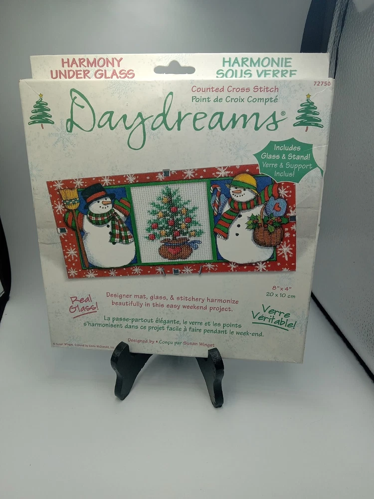 Wear on packaging...Add some holiday cheer to your home with this Dimensions Daydreams Counted Cross Stitch Kit 72750 featuring a festive snowman design. The kit includes everything you need to create a beautiful framed picture, including a pattern, needle, fabric/cloth, thread/floss, and frame. This kit is perfect for cross stitch enthusiasts or anyone looking for a fun and unique holiday project. The kit is made by Dimensions and features a sampler style with a holiday/Christmas theme. It is bundled with all the necessary items to get started, making it easy for beginners to give it a try. The kit is designed for use with framed pictures and comes with a frame included. This kit is a great way to add some personalized decor to your home or to give as a gift to a fellow cross stitch lover.