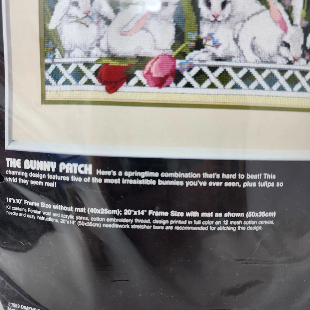 Dimensions THE BUNNY PATCH Needlepoint Kit 16" x 10" Persian Wool Yarn #2367 Brand: Dimensions Type: kit Size: frame size without mat is 16"x10" Color: multi Condition: new International customers: please note item cost and shipping does not include any import tax, VAT, customs fees or any other costs associated with the import of this item.' mb4
