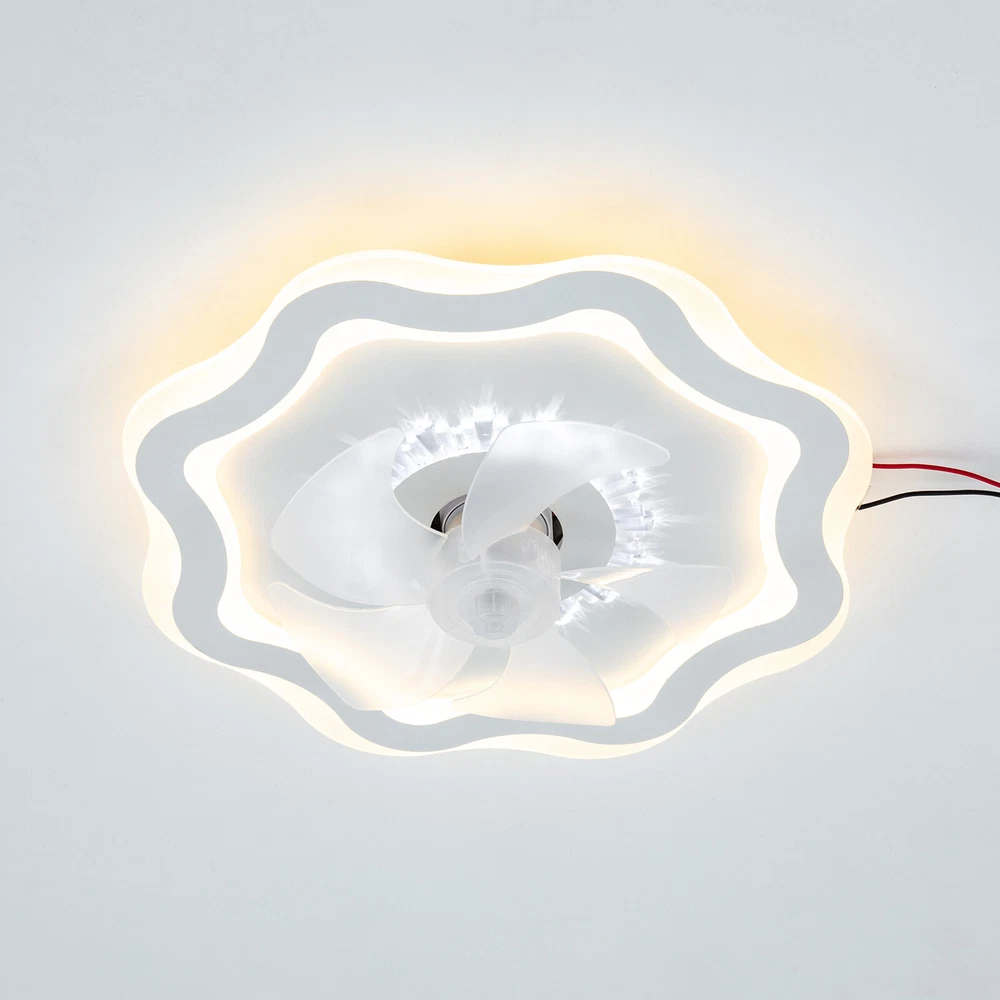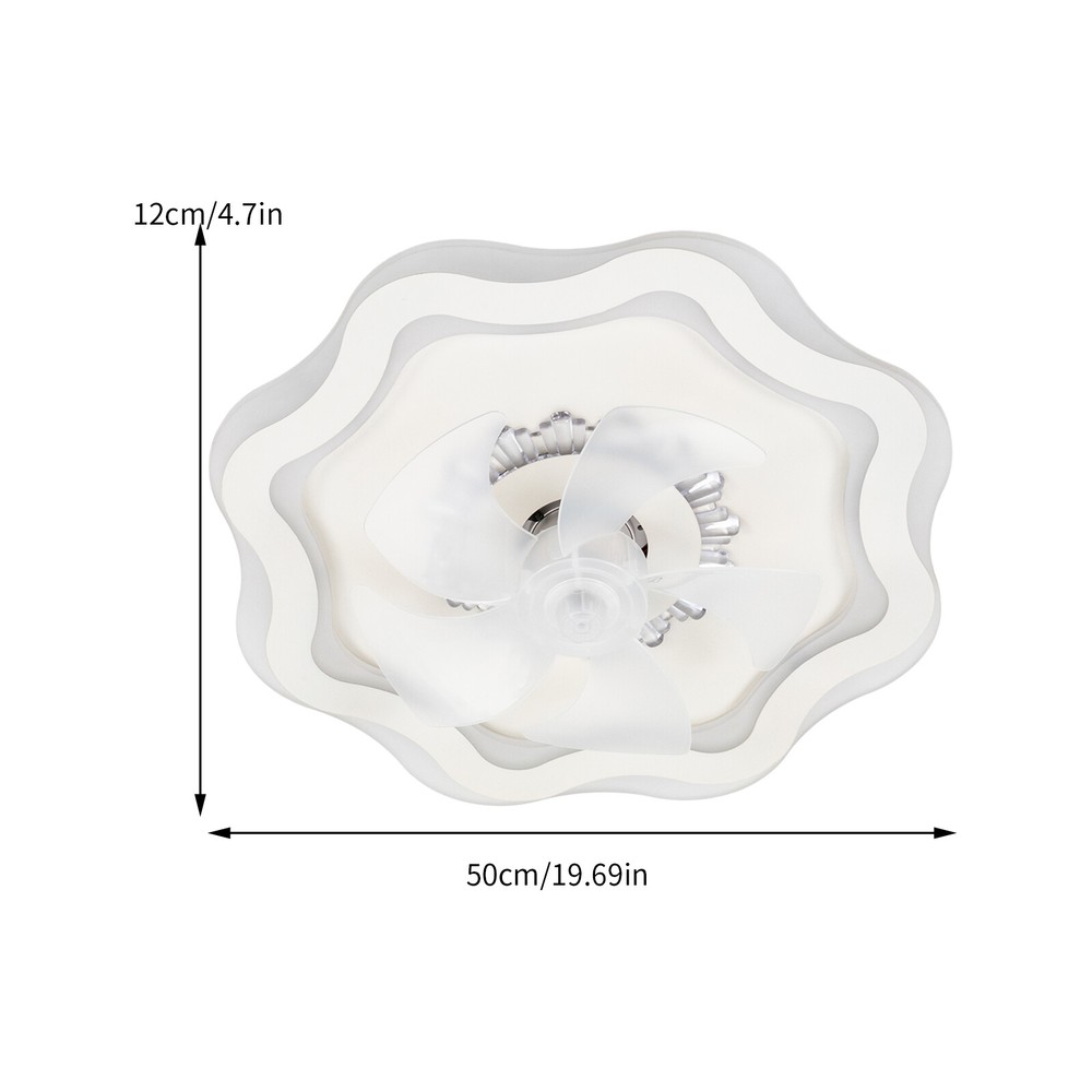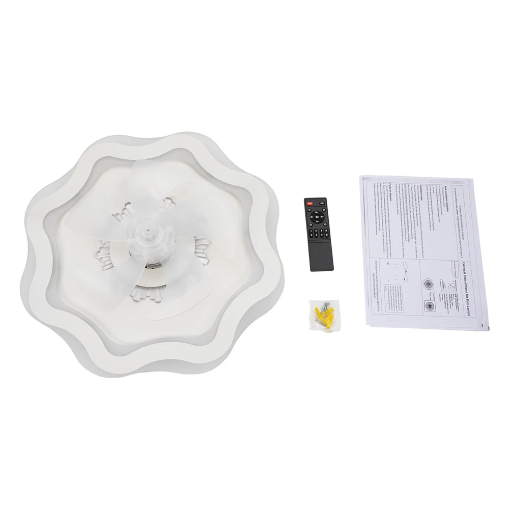 Description If you want to have both a fan and a ceiling light in your room without buying two devices, you can take a look at this high-performance fan ceiling light. Light color, fan speed, and time-setting can be easily adjusted by remote control, providing you with a smarter and more convenient life. A beautiful flower-shaped lampshade embellished with crystal-like decorations in the center will add charm to your home. 💖welcome to aaertu💖 Description Description If you want to have both a fan and a ceiling light in your room without buying two devices, you can take a look at this high-performance fan ceiling light. Light color, fan speed, and time-setting can be easily adjusted by remote control, providing you with a smarter and more convenient life. A beautiful flower-shaped lampshade embellished with crystal-like decorations in the center will add charm to your home. Key Features Long Service Life : It uses premium iron and acrylic materials and adopts high-temperature baking paint and injection molding processes, making this product rust-proof, corrosion-resistant, impact-resistant, and long-lasting. Smart Control: You can set the timing function(2 H) to have a comfortable sleeping environment and the 6-speed wind speed to experience the refreshing breeze or strong coolness through the convenient remote control, together with its memory function that remembers your last setting, simplifying your daily routine and enhancing your overall living experience. Adjustable Lighting: The 3 adjustable lighting colors(warm, neutral, and white) with color temperatures of 3000 K-4500 K, and the infinitely dimmable brightness(10-100% ) can fully meet your usage needs in different scenarios. The night mode will bring you a peaceful bedtime environment while protecting your eyesight. Reversible Function : In addition to enjoying a cool environment in summer, you can also reverse the direction of the fan in winter, blowing hot air into the room from the top and increasing the room temperature. Stylish Appearance: The crystal-shaped decoration in the center and the flower-shaped lampshade make it not only fashionable but also suitable for various modern decoration styles. Low Noise : The pure copper core motor makes it run more powerfully and steadily at low noise about 25dB, equivalent to the sound of a human whisper, providing you with a quiet environment. You can keep it working during work, sleep, or meditation. Healthy and Energy-saving : It helps reduce the frequency and time of air conditioning use, saving energy, and reducing expenses. When used together with air conditioning, it can avoid direct blowing and reduce the risk of air conditioning diseases. Easy Clean-up: The simple structure and smooth surface let you easily wipe it clean with a towel when dust accumulates. Protective Packaging: The foam can effectively reduce the normal impact and ensure that this item is fully delivered to you to the greatest extent. Details Solid Base: The enlarged ceiling base with a sturdy cross-hanging plate will bring stronger load-bearing capacity and stability. Its heat-dissipation holes also prolong the service life of the product and improve the safety of use. Translucent Fan Blades: They neither block the lighting nor affect the aesthetics of the product. Installation Steps Fix the cross-hanging plate with screws to the XXXX junction box (or mark and make holes in the ceiling, and fix the cross-hanging plate to the ceiling with 4 expansion screws). Connect the fanlight to the power cord on the ceiling with wire nuts, FireWire (Black Wire, L)-Zero Wire (White Wire, N)-Ground Wire (Yellow Wire, G), and make a one-to-one corresponding connection. NOTE: The Ground Wire hidden in the lamp base is an optional connection, not necessary. Fix the fan lamp base to the hanging plate that was previously installed on the ceiling in step 1. When powered on, use the remote control (2x AAA batteries need to be additionally purchased) to check whether the light or fan of the device works normally. Application With an applicable area of 86.11-161.46 ft² and floor height of about 7.22-11.48 ft, it is very suitable for living rooms, kitchens, bedrooms, study rooms, offices, entrances, attics, cafes, dining rooms, children's rooms, game rooms, nursing rooms, kindergartens, libraries, etc. Specification Color: White Style: Modern Shape: Flower-shaped Assembly Required: Yes Indoor/Outdoor: ‎Indoor Material: Iron, Acrylic Process: High-temperature Baking Paint, Injection Molding Light Fixture Form: Ceiling Light Control Method: ‎Remote Control, Wall Switch Battery: 2* AAA Batteries(Not Included) Light Source: LED (Included) Light Color: White, Neutral, Warm Light Color Temperature Range: 3000K-4500K Brightness: 10-100% Lumen: 2400-3600 lm Noise: About 25dB Timing: 2 Hours Voltage: 110 V Power: 24-36 W Efficiency: 4 A Level Number of Fan Blades: 5 Remote Control Distance: 5-8 m/16.4-26.25 ft Suitable Floor Height: About 2.2-3.5m/7.22-11.48 ft Applicable Area: 8-15 m²/86.11-161.46 ft² Product Size(D*H): 50*12 cm/19.69*4.7 in Package Size: 53*53*18 cm/20.87*20.87*7.09 in Gross Weight: 3.5 kg/7.72 lbs Package Included 1* Fan Ceiling Light 1* Remote Controller 1* English Instruction 1 Bag* Screws Notes Please check the dimensions of the product before ordering to ensure it fits your home. 2 AAA batteries for the remote controller are not included, you need to buy them yourself. When unpacking, be careful not to pull with the wires as a bad connection may result. For a safe and secure installation, please ensure that the electrical box is firmly mounted and properly attached to a structural part of the building. Please make sure that all wires are connected and all screws are tightened into the ceiling. Please do not turn on the power until fully assembled. Please conduct a power test before installation. We recommend installation by professionals. Wall switch(not included) can not use the memory function. Please u