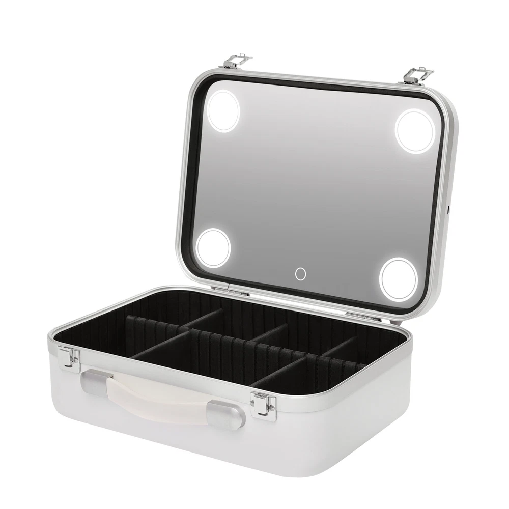 Application This product is suitable for storing cosmetics and skin care products, as well as jewelry, such as necklaces and earrings. Specifications Material: Aluminum, Sponge Color: White Battery Capacity: 2000mAh Led Light: Warm Yellow Light 6500k, Natural Light 4600k, Cool White Light 3500k Product Size: 34*24*12cm/13.4*9.4*4.7inch Net Weight: 1.6kg/3.52lbs Gross Weight: 1.8kg/3.97lbs Package Size: 38.6*30.5*16.20cm/15.2*12.01*6.38inch Package Included 1*Cosmetic Box 1*Data Cable 1*Brush Plate Notes Please allow the slight color difference caused by the shooting light and 1-3cm error due to manual measurement, and make sure you do not mind before you order. Dimmable LED Light Mirror Women Cosmetic Bag Travel Makeup Case Organizer Large Makeup Case w/Dimmable LED Bulbs and Tilt Mirror Lighted Cosmetics Organizer Case Specifications Material: Aluminum, Sponge Color: White Battery Capacity: 2000mAh Led Light: Warm Yellow Light 6500k, Natural Light 4600k, Cool White Light 3500k Product Size: 34*24*12cm/13.4*9.4*4.7inch Net Weight: 1.6kg/3.52lbs Gross Weight: 1.8kg/3.97lbs Package Size: 38.6*30.5*16.20cm/15.2*12.01*6.38inch Package Included 1*Cosmetic Box 1*Data Cable 1*Brush Plate Application This product is suitable for storing cosmetics and skin care products, as well as jewelry, such as necklaces and earrings. Notes Please allow the slight color difference caused by the shooting light and 1-3cm error due to manual measurement, and make sure you do not mind before you order. Description People’s pursuit of beauty is endless, and a good product often enhances people’s feelings. This cosmetic box is made of aluminum, which is durable and easy to carry. In addition, the compartmented storage space and the buckle allow items to be placed more securely. Warm color and unique design bring people a good mood for the day. With it, you can enjoy the make-up process to your heart's content. Key Features Premium Material: The product is made of aluminum, which is strong and durable, can be used for a long time, and has a good guarantee of quality. Thoughtful Design: The product comes with a mirror and dimmable LED lights by touching the switch. Long press to adjust the light brightness and short touch to adjust the light color temperature. Meet the needs of different scenes and provide a better makeup process. Easy to use: The built-in 2000 mAh high-capacity battery has a long life span. The included type-c charging cable is compatible with many charging devices. Dual use of battery and plug-in power makes it easy to move around. Safe to Use: The display at the switch button is red when charging and turns green when fully charged. The built-in charge protection system can automatically limit the current after a full charge to avoid overcharging. Fully Featured: The product can not only make up but also meet people’s needs to reapply at any time. It can store cosmetics and skin care products. The equipped lamp can also provide emergency lighting to realize the multi-purpose use of one object. Large Capacity: The cosmetic box has a large storage space, which can accommodate cosmetics and some skincare products at the same time to avoid disorderly items. Real Experience: The cosmetic box has a built-in high-definition large mirror, equipped with a three-color LED light source to restore the real makeup, pay more attention to details, and bring people a more natural and real experience. Ideal Gift: A practical and beautiful cosmetic box is something that every girl who pursues beauty will love. It is a wonderful gift for girlfriends, family members and colleagues. Professional Service: Adhering to the purpose of making everyone beautiful, we will always listen to customers’ opinions and lay a solid foundation for providing good service. Details Support Feet: The bottom of this item has support feet that not only make it stand more stable but also prevent item wear and tear caused by direct contact with the floor. Lock Buckle: The buckle keeps the same color as the cosmetic case not only looks fantastic but also keeps the case locked up to prevent cosmetics from falling out. Telescopic Handle: The handle adopts an artificial design to reduce the burden of the opponent and reduce fatigue, and it’s also convenient to carry. Partition: It can freely adjust the position of the partition according to the volume and shape of its own cosmetics, and keep the internal cosmetics in order at all times. Movable Brush Plate: The removable brush board is equipped to place cosmetic brushes and other items separately to ensure neatness and protect the mirror at the same time. Payment Delivery details Terms of sales About us Contact us Payment We accept ebay payment 。 Fees such as import duties, taxes are not included in the item price or shipping costs. These charges are the buyer's responsibility. Delivery details Shipping: 2-9 working days to: USA Terms of sales We maintain high standards of excellence and strive for hundred percent customer satisfaction. Feedback is very important to us. We hope that you contact us immediately before you give neutral or negative feedback, so that we can address your concerns. It is impossible to address issues if we do not know about them! About us Your satis faction is our ultimate goal. We work hard to earn your trust and future business. Our certified technicians have tested each item before shipping. The unit comes with 1 year limited warranty on all manufacturing defects. a) If you receive a defective item, you may return it or ask for a discount. Please contact us within 14 days after you receive the package. b) What you returned must be intact and in its original packaging as re? u. Customer is responsible for shipping costs of the returned item. c) We will cover the cost of shipping back t with the shipping rate indicated in the registration page. We will send you a new unit or refund the full payment you paid. Thank you. Contact us Business Hour Business Hour: