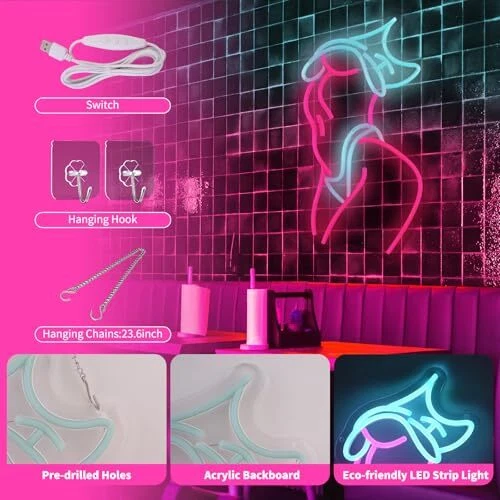 Menu 1. We require immediate payment. 2. We currently accept payment via eBay managed payments only. 3. Once payment is cleared, we will dispatch your shipment within 1-3 business days. Please refer to the "Shipping" tab for more information regarding shipping speed to your destination. Lady Neon Signs, Lady Back Neon Light Up Sign Dimmable, Girl Women Body Neon Sign for Wall Decor, Pink LED Light Sign for Bedroom Bar Man Cave Game Room Party Decor, USB Powered Product description Lady Neon Signs Size: The bar lady neon light size: 15.7x11.4 inch(40x29cm). T is a white protective film on the back of the acrylic sheet, please tear it off! LED Neon Signs: Lady back body neon signs for bedroom wall decor are bright. Neon light up sign energizes the mood, and will increase the atmosp of your bedroom and living room. USB operated neon wall sign can be powered with power bank, laptop and portable for different occasions. Quality Materials: Girls neon lamp signs are handmade by high -quality backplanes and soft silicone tubes. This kind of neon lights of wall decor are bright, durable, non-heating, energy-saving, stronger and lighter . Easy Installation: Two nail holes on the acrylic back panel for easy hanging. The sturdy back panel can be leaned against or nailed to the wall, and you'll easily get a mood-boosting bad girl neon LED signs! Various Occasions: Pink blue white neon LED signs comes with mounting kit sets for easy wall mounting. Light up wall decor is very suitable for office, home bar, store decoration as home decoration, man cave, wall art, entertainment place, add romantic color. Easy Cleaning: If you want to dust or clean your lady neon sign for wall decor, always be sure to unplug it first. Then use soft, dry cloth to clean dust. T are any product issues, you can contact us via email. PLEASE MESSAGE US IF YOU HAVE ANY OTHER QUESTIONS, AND MANY THANKS FOR READING ALL OF THIS. Copyright ©#. All Rights Reserved.